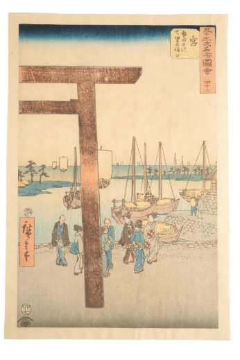 UTAGAWA HIROSHIGE I (1797-1858) Miya, from the series of The Fifty-Three Stations of the Tokaido Road 1855, woodblock print on paper, 35.5cm x 24.25cm.