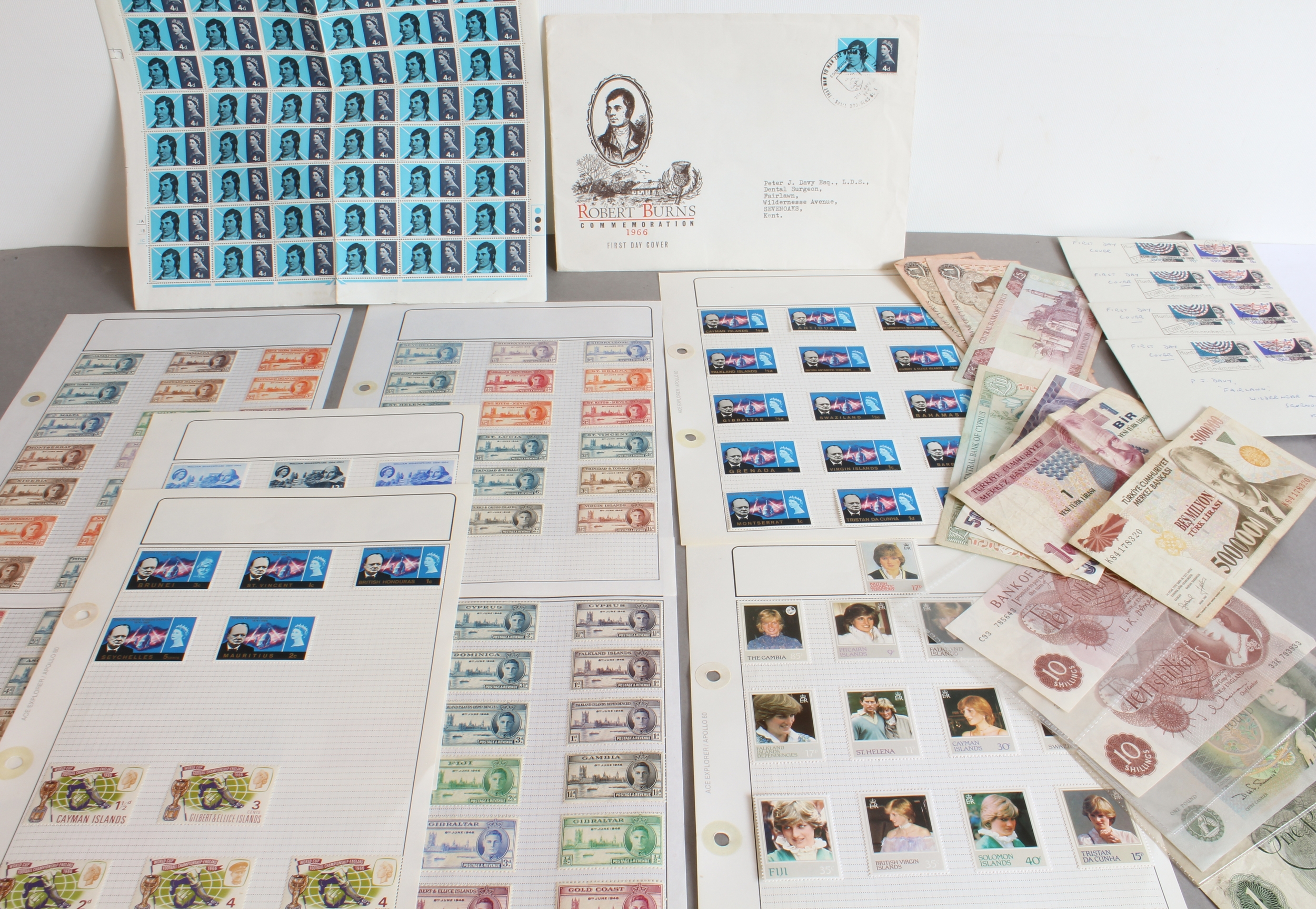 1. a sheet of 60 stamps Robert Burns 4d stamps and a 1966 'Robert Burns' first day cover;