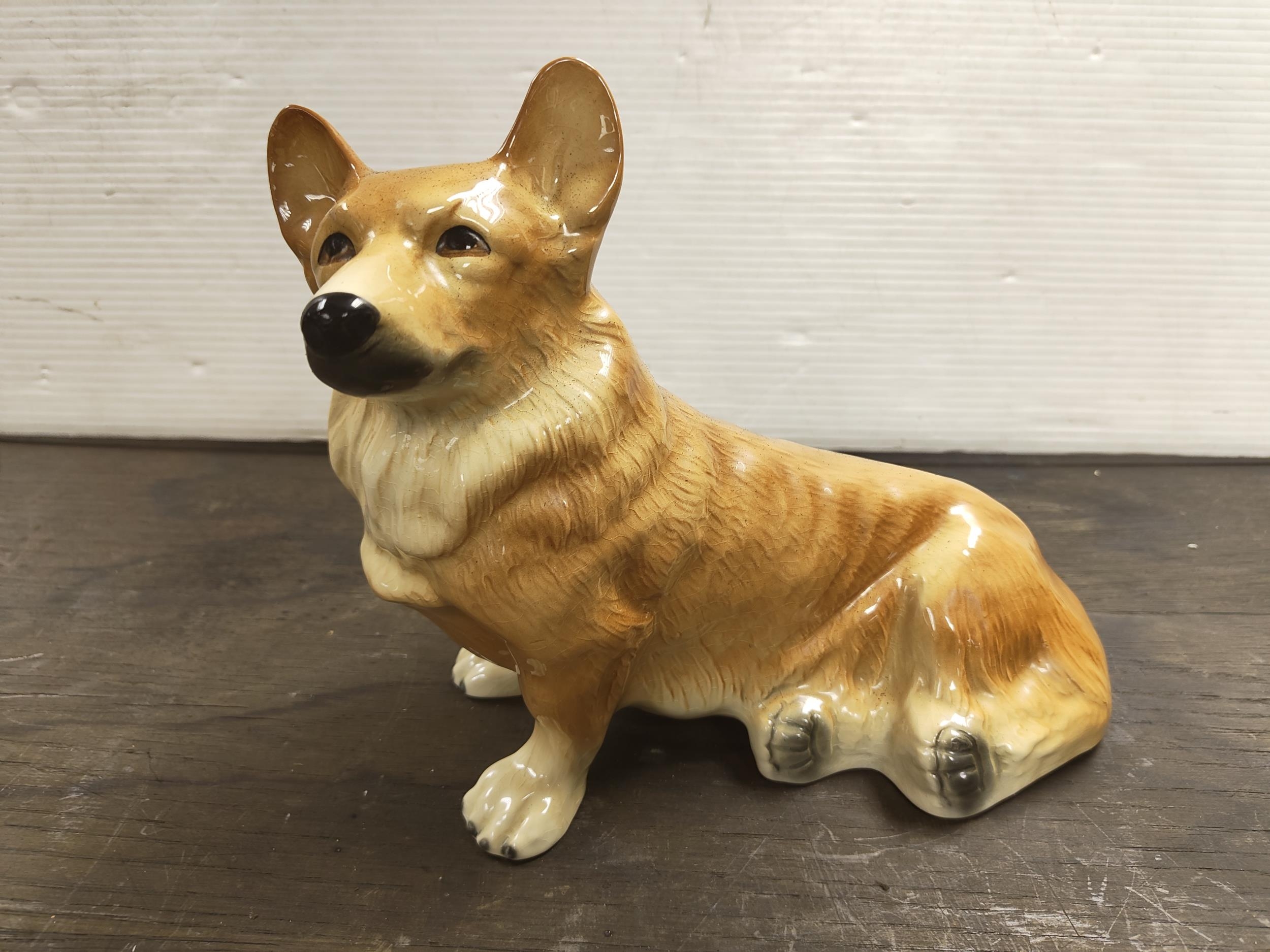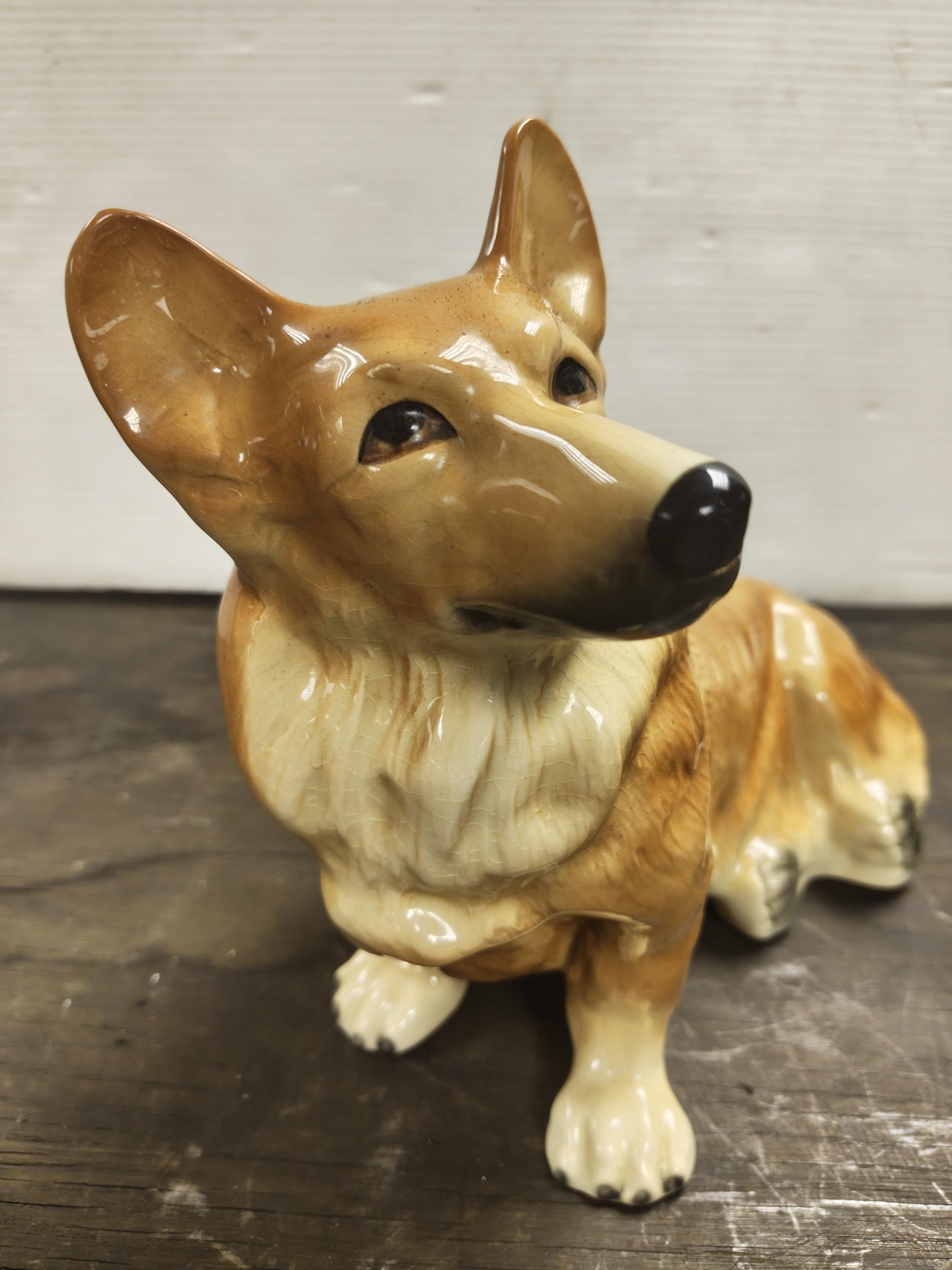 A large Kingston Pottery figure, modelled as a Corgi. Measuring approx 22cm in height