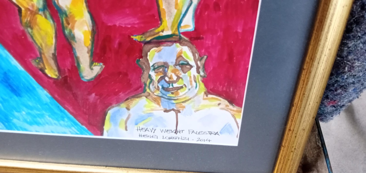 Original work by Henri Lorenzi ' Heavy weight Palestea' Gouache on paper signed 2014 measuring 60 x 56cm approx