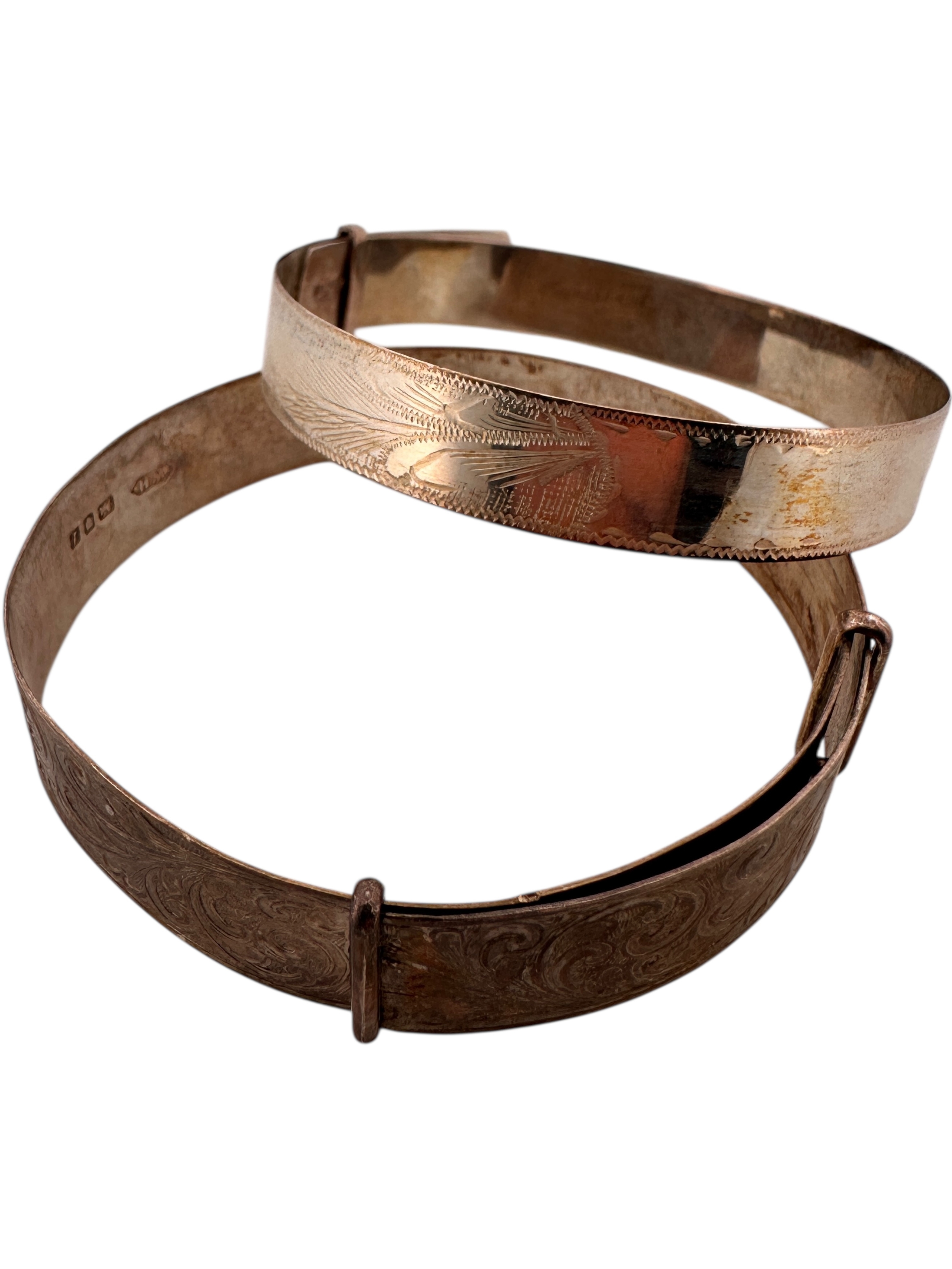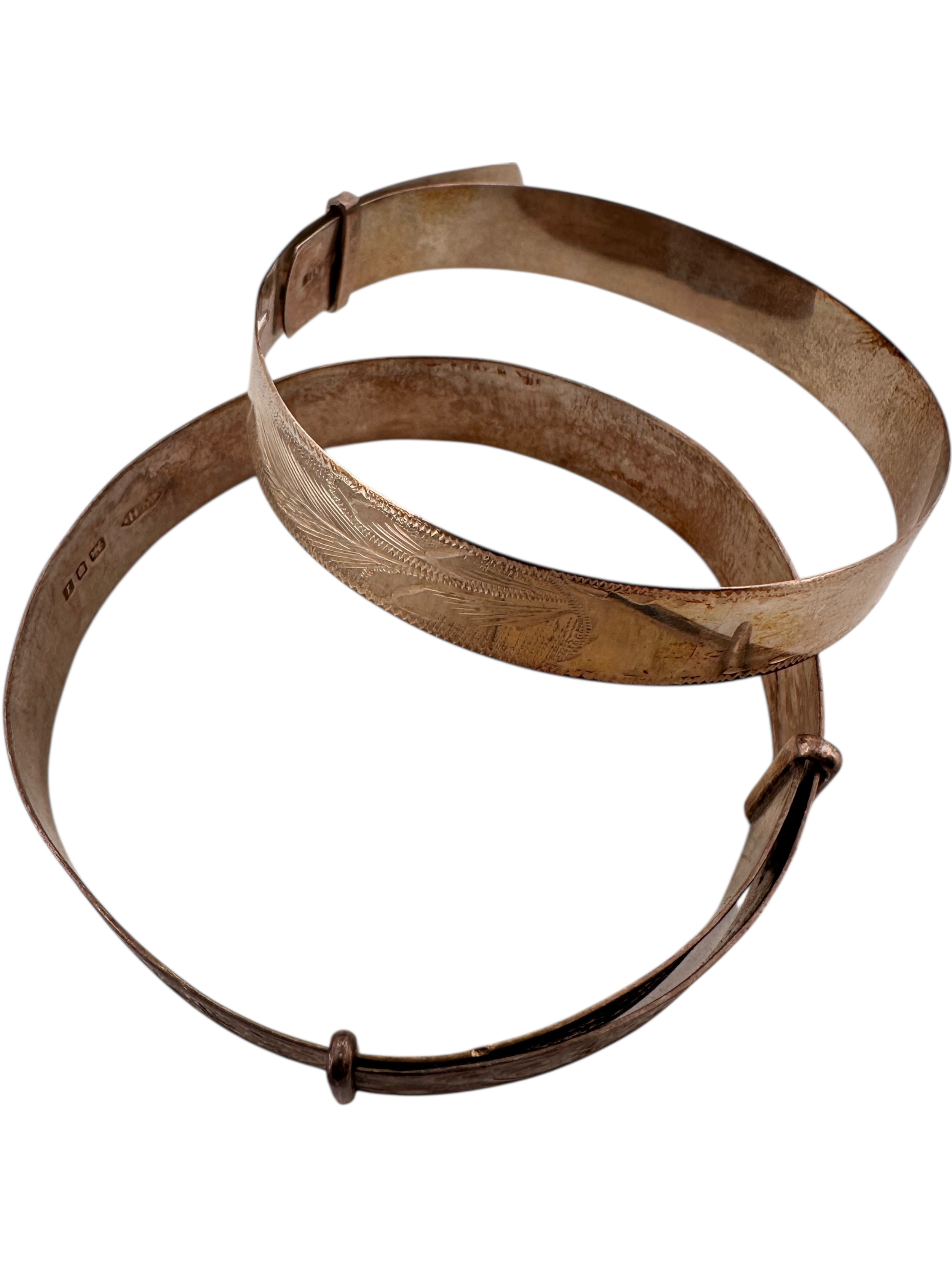 Two Engraved Silver Bangles. 20g