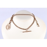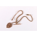9ct rose gold curb link watch guard with 9ct gold fob pendant 29.7g gross