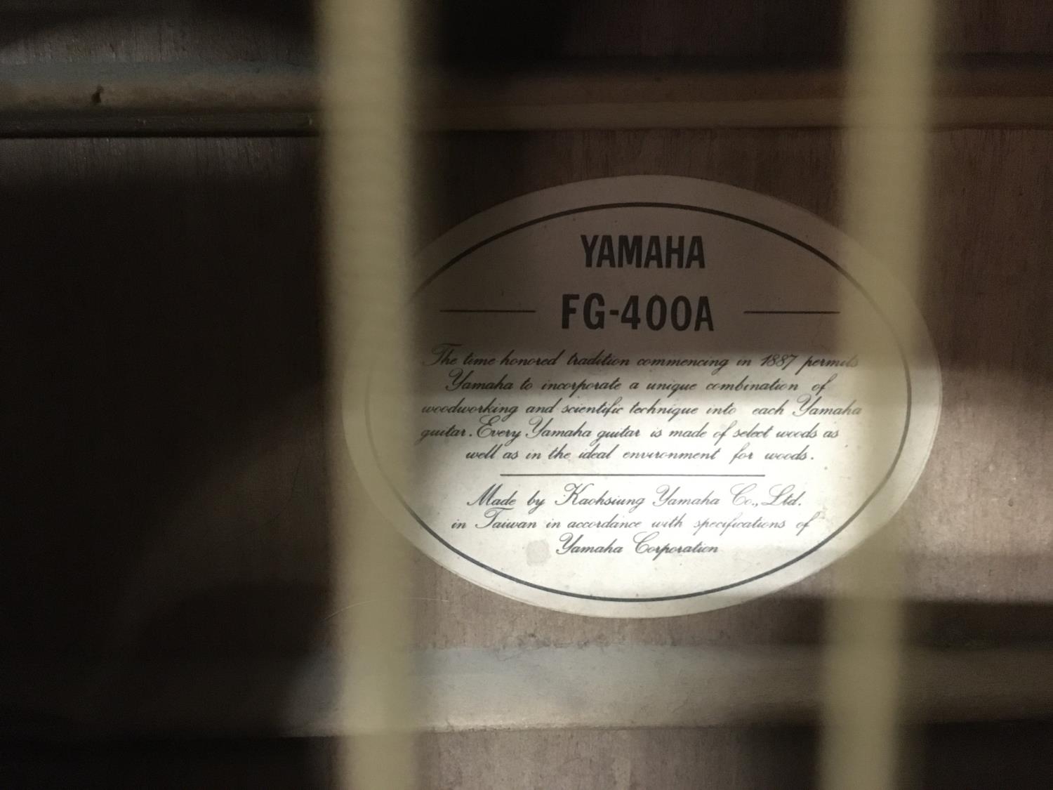A Yamaha FG400A acoustic guitar and hard carry case.
