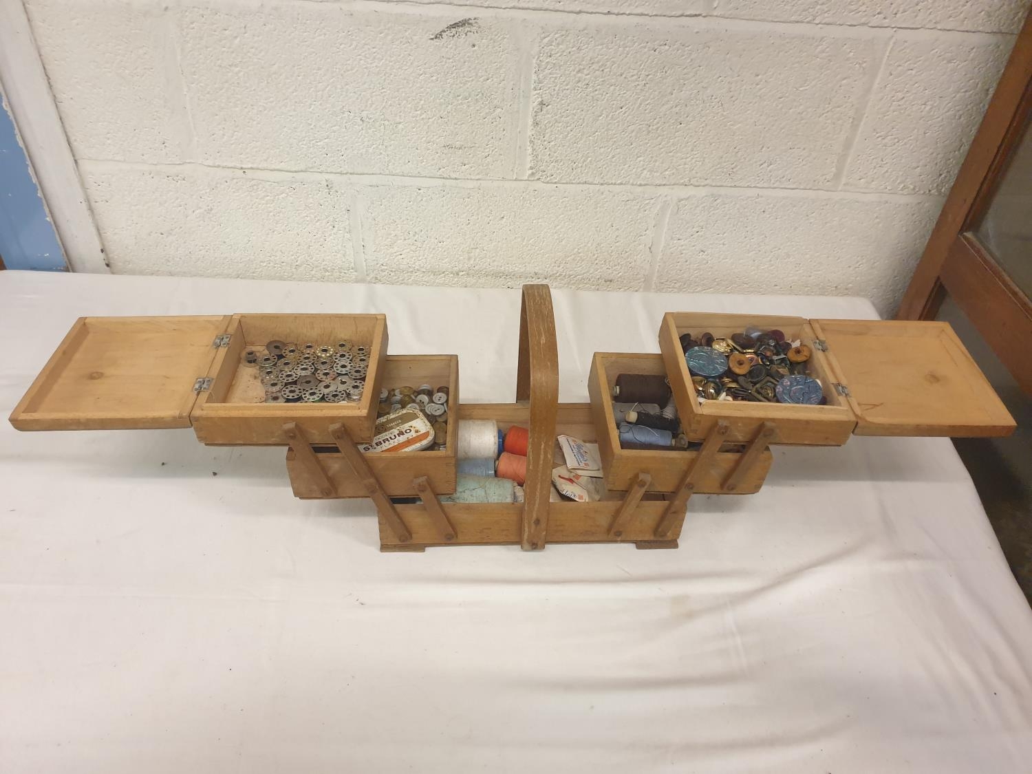 Small Concertina Sewing Box & Contents.