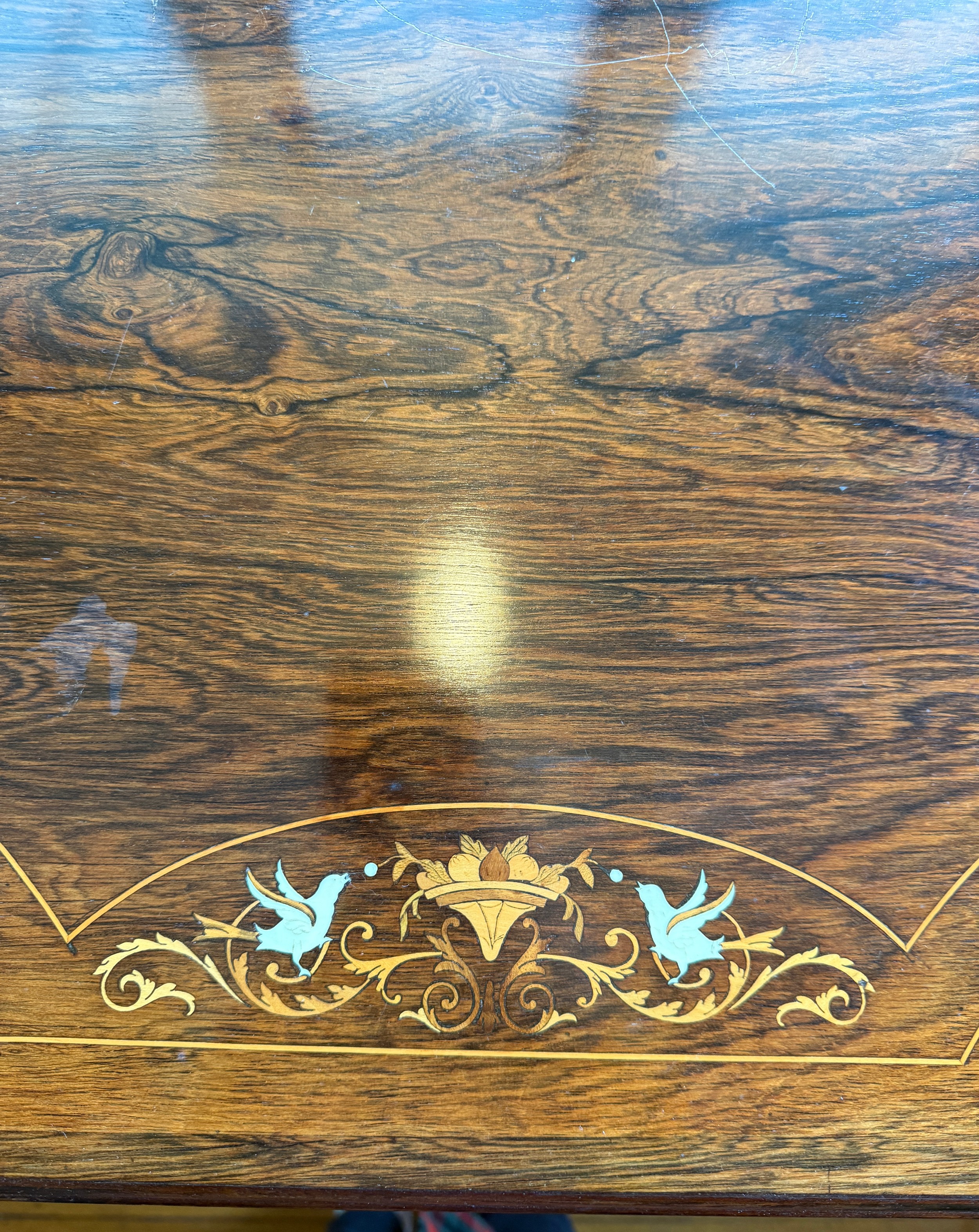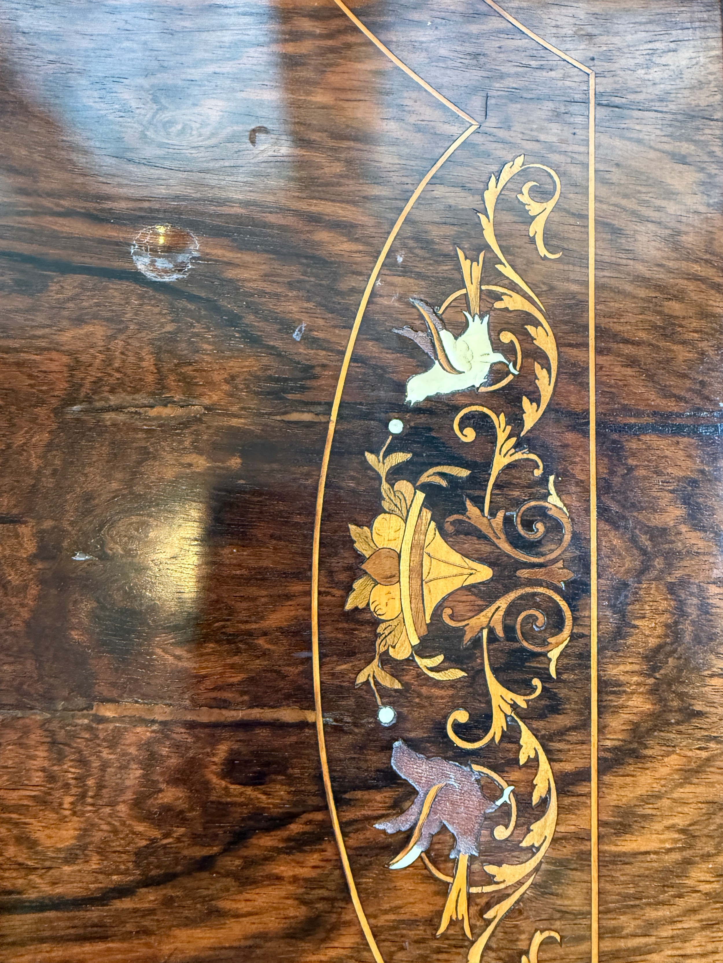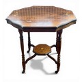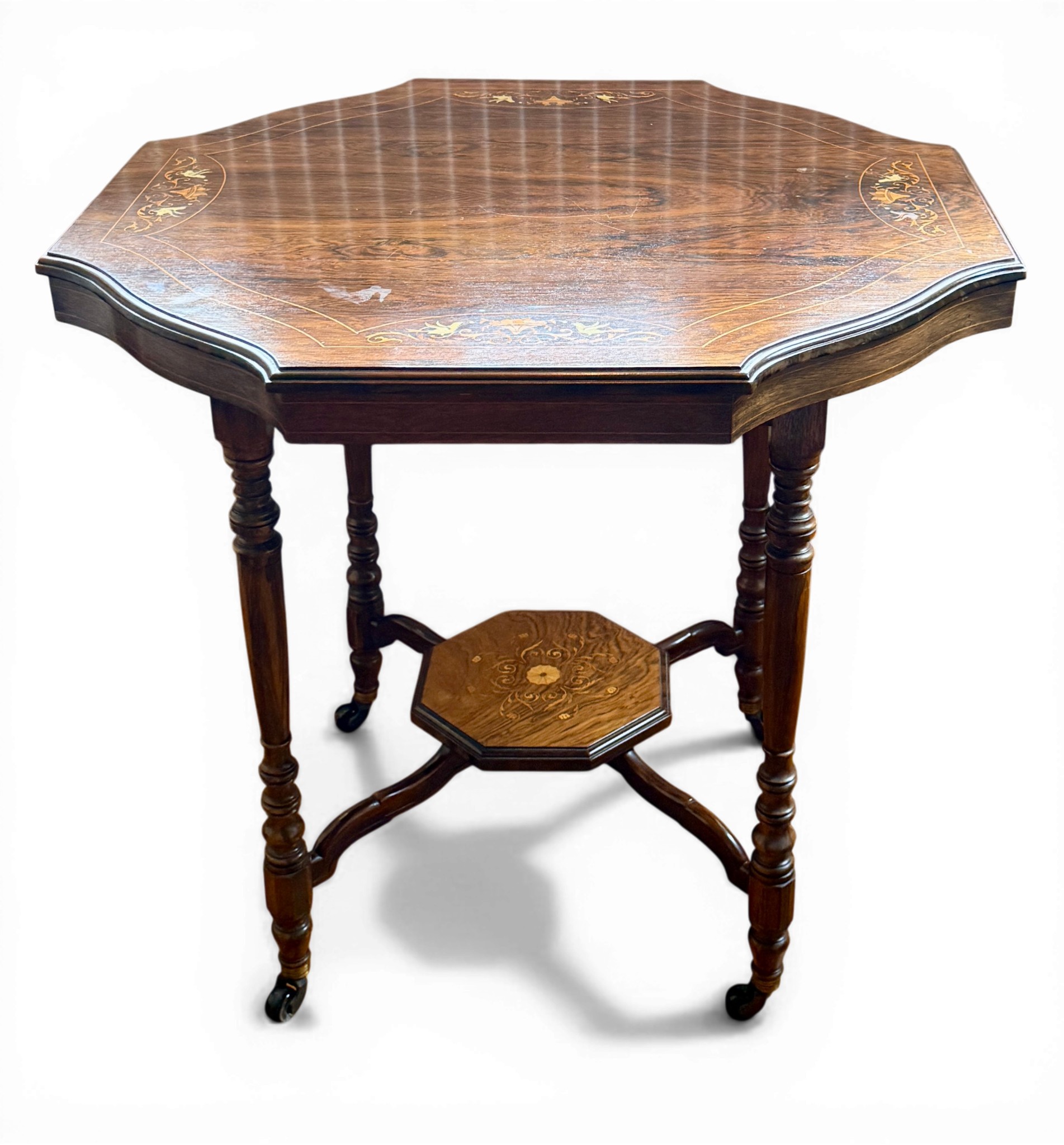 An Edwardian inlaid rosewood hexagonal table with ivory inlay. 76 d x 72cm h. Submission reference FY3CDD5Y