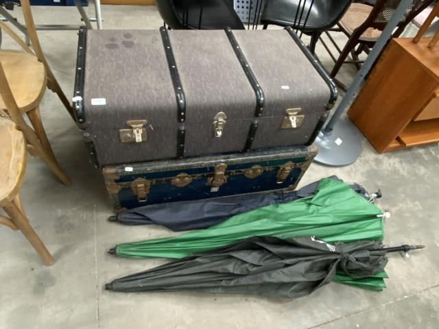 2 vintage travelling trunks 33H 92W 52D & 32H 90W 50D etc