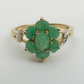 9ct gold emerald and diamond ring, 3 grams, Size R, 13.2mm wide, UK Postage £12.