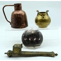 A small group of South East Asian bronze/copper items including an Islamic ink well , jugs etc 26cm (4)