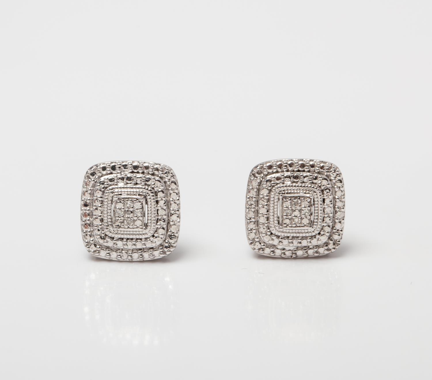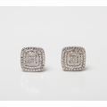 A 9CT GOLD AND SILVER MULTISTONE DIAMOND CUSHION SHAPED STUD EARRINGS Crafted in Sterling Silver and 9ct gold set with 20 Round Diamonds weighing 0.05ct,