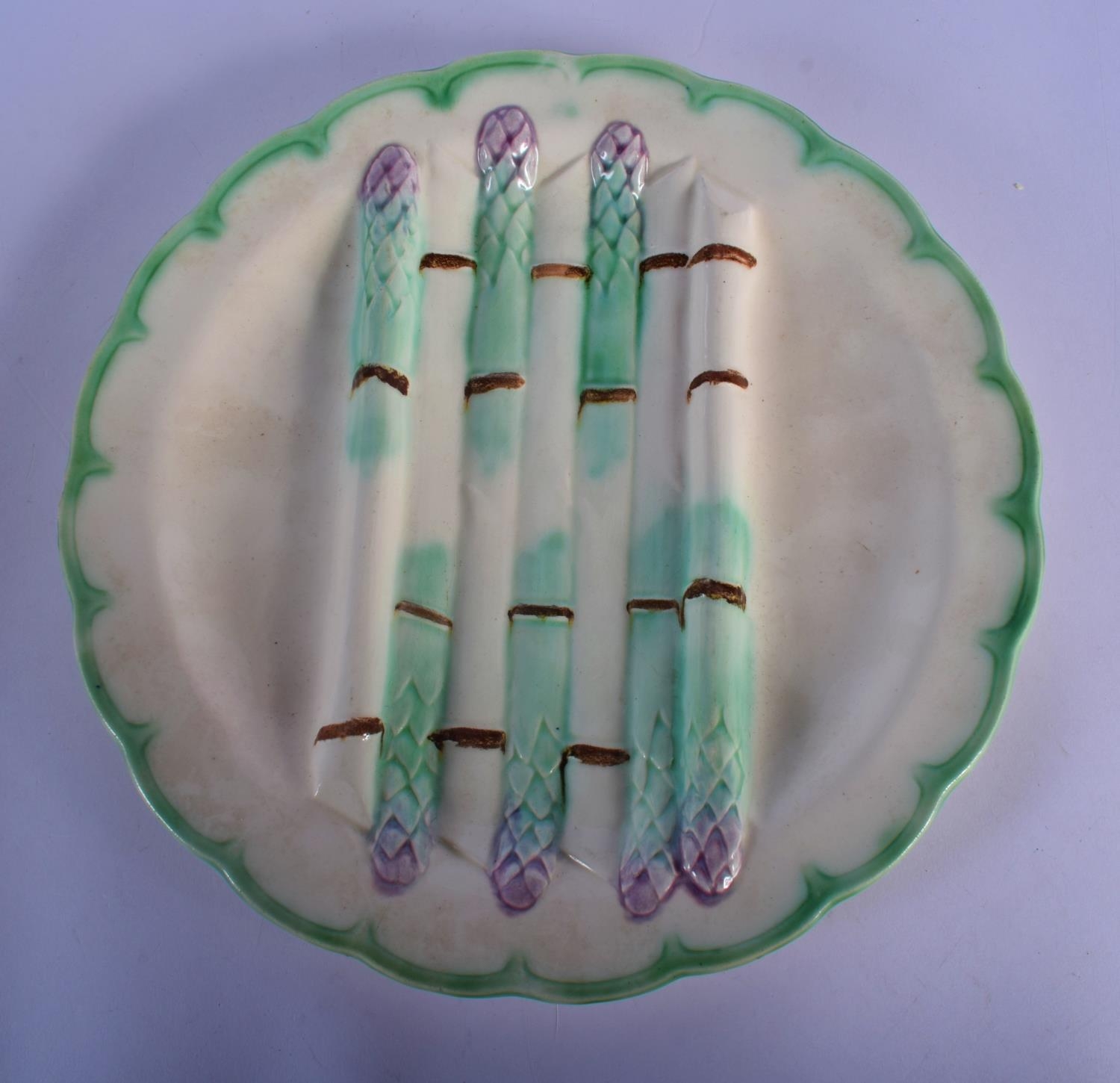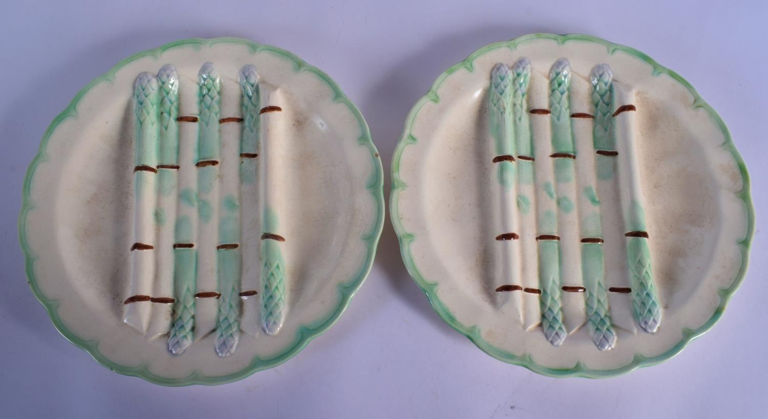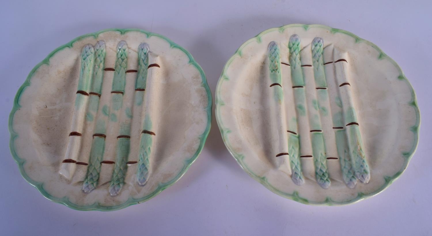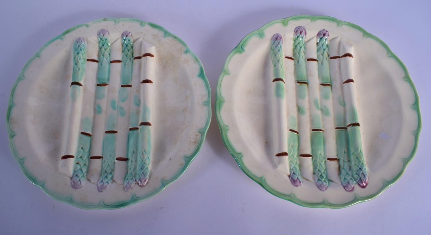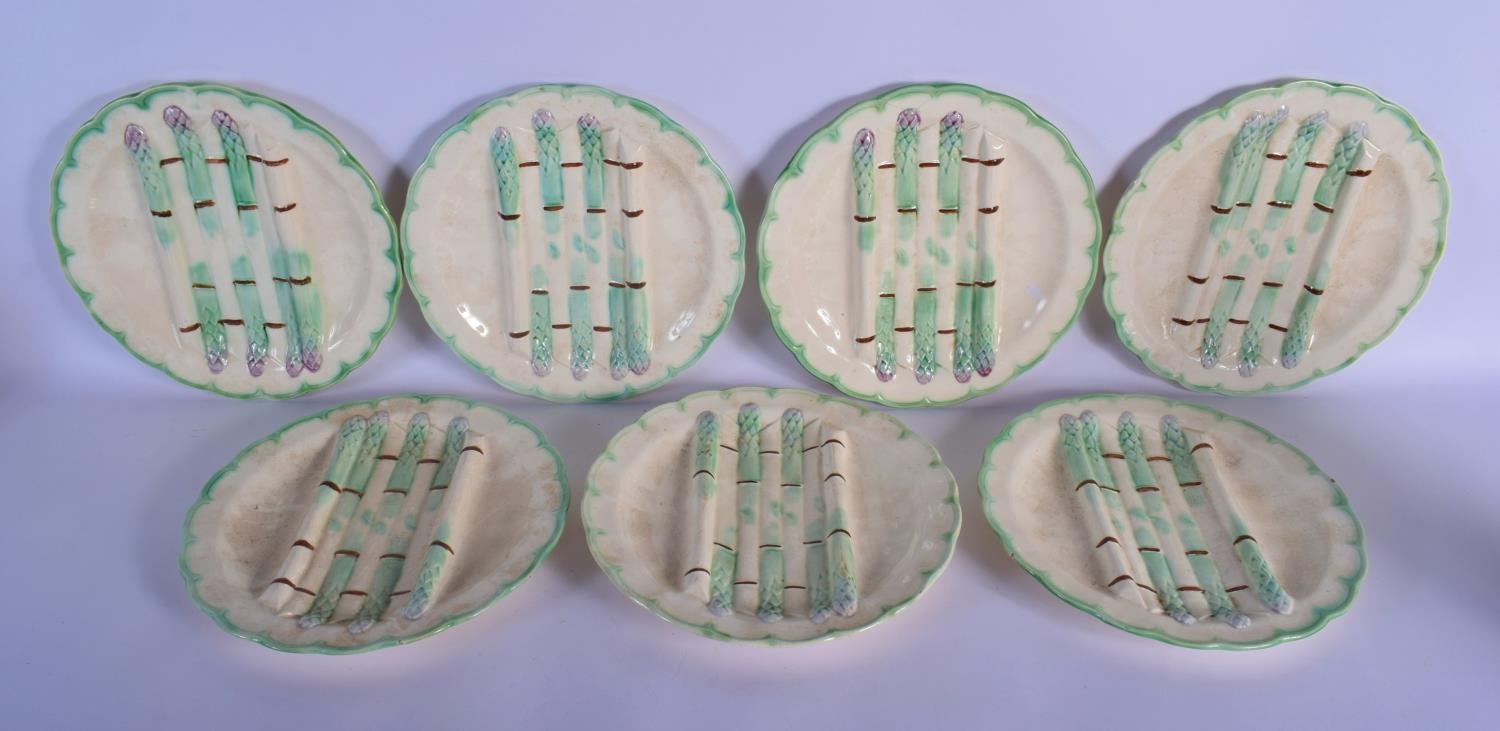 SEVEN ANTIQUE FRENCH MAJOLICA ASPARAGUS PLATES. 24 cm wide. (7)
