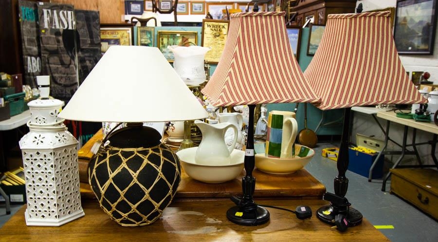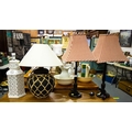 PAIR OF TABLE LAMPS + SHADES, PORCELAIN LAMP + LAMP