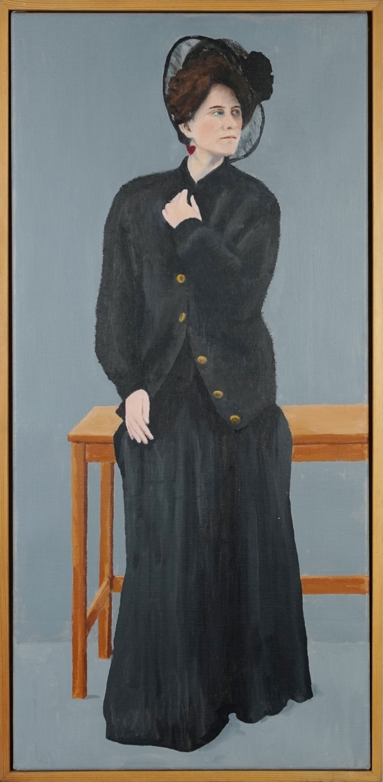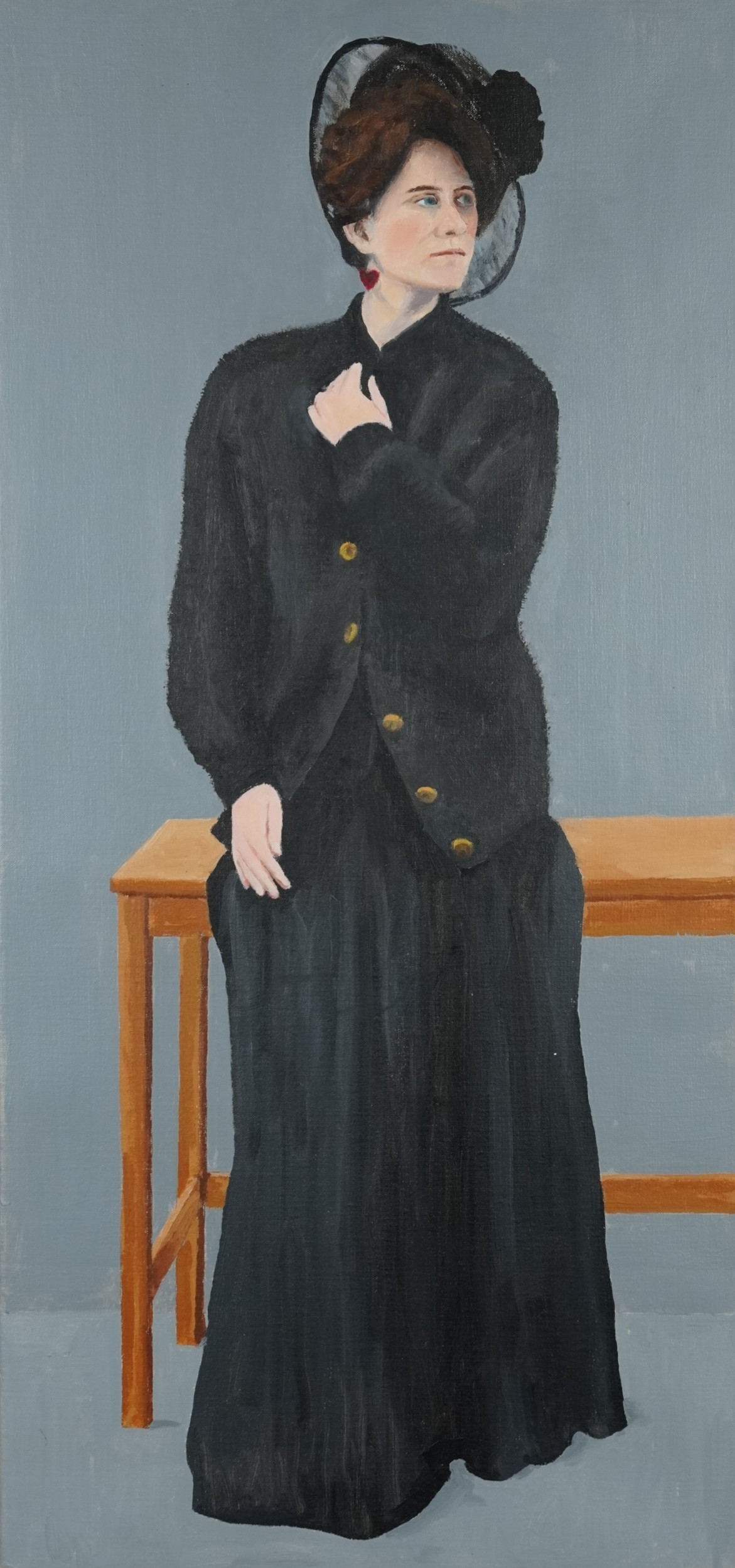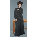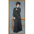 Seated female wearing a black dress, Modern British school oil on canvas, framed, 86.5cm x 41cm.
