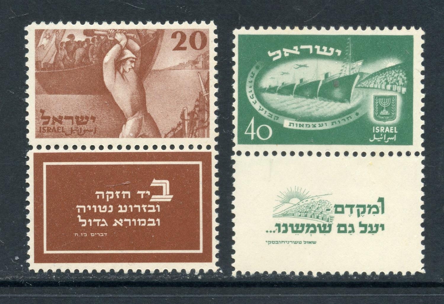 ISRAEL 1950 second Anniversary of Independence set with tabs um. SG 29 - 30. Cat £750.