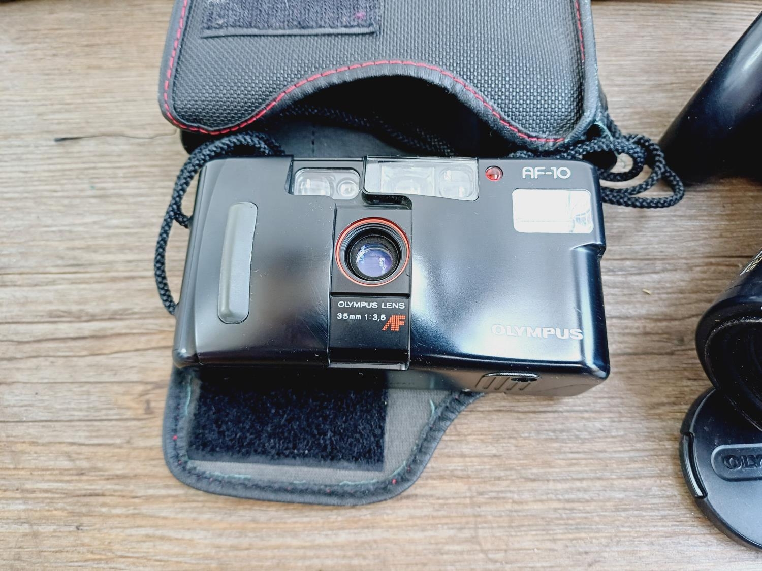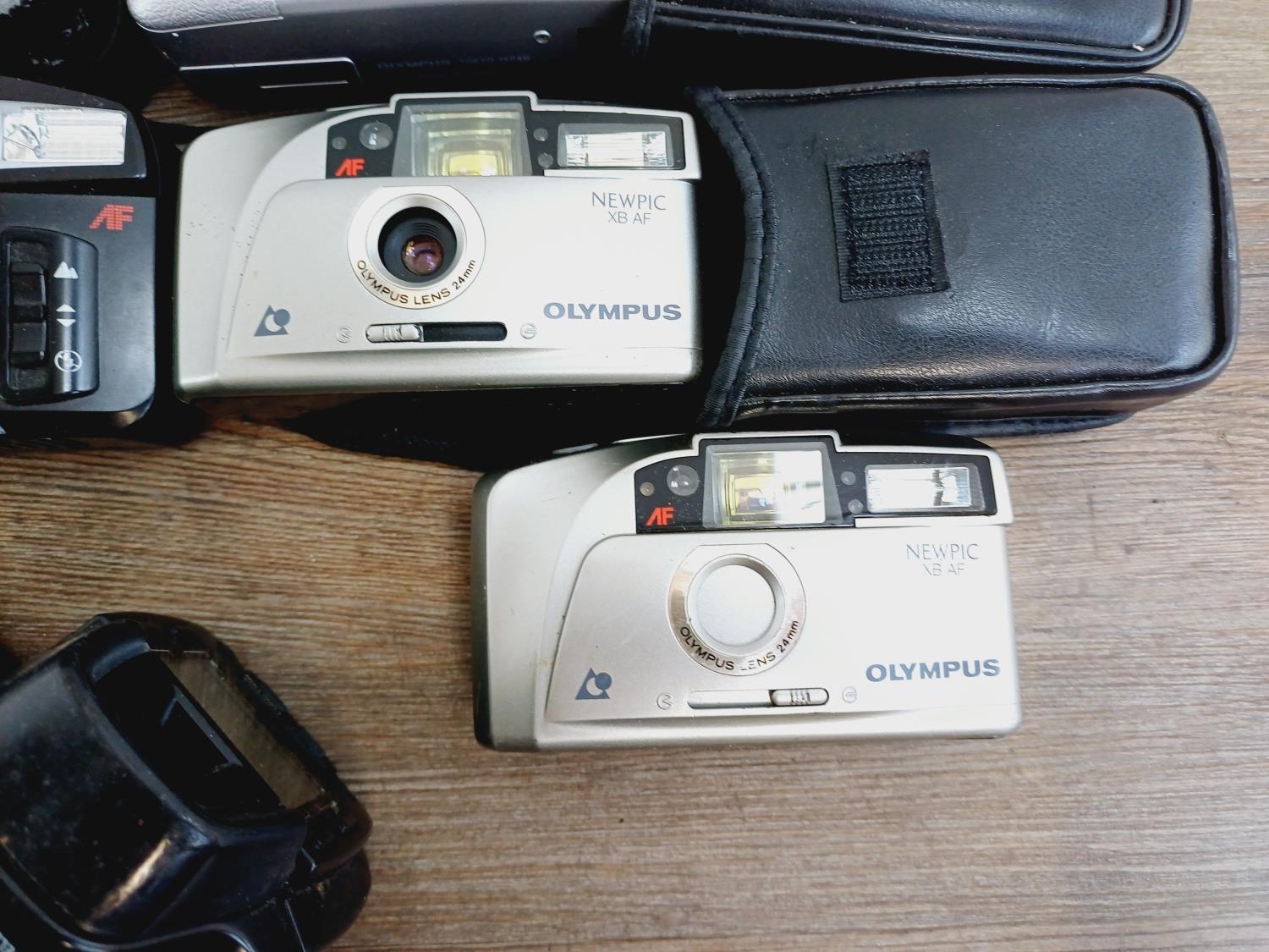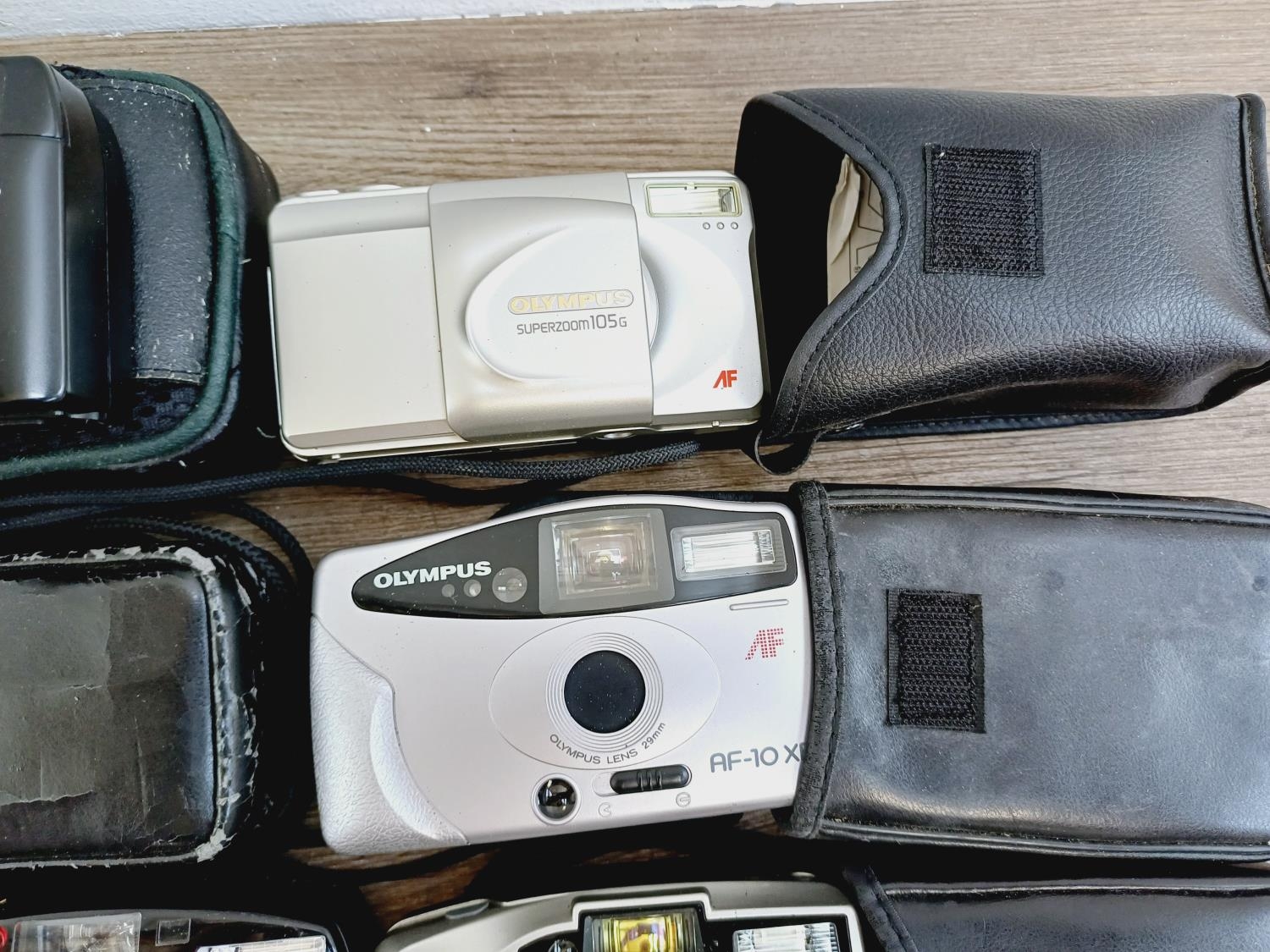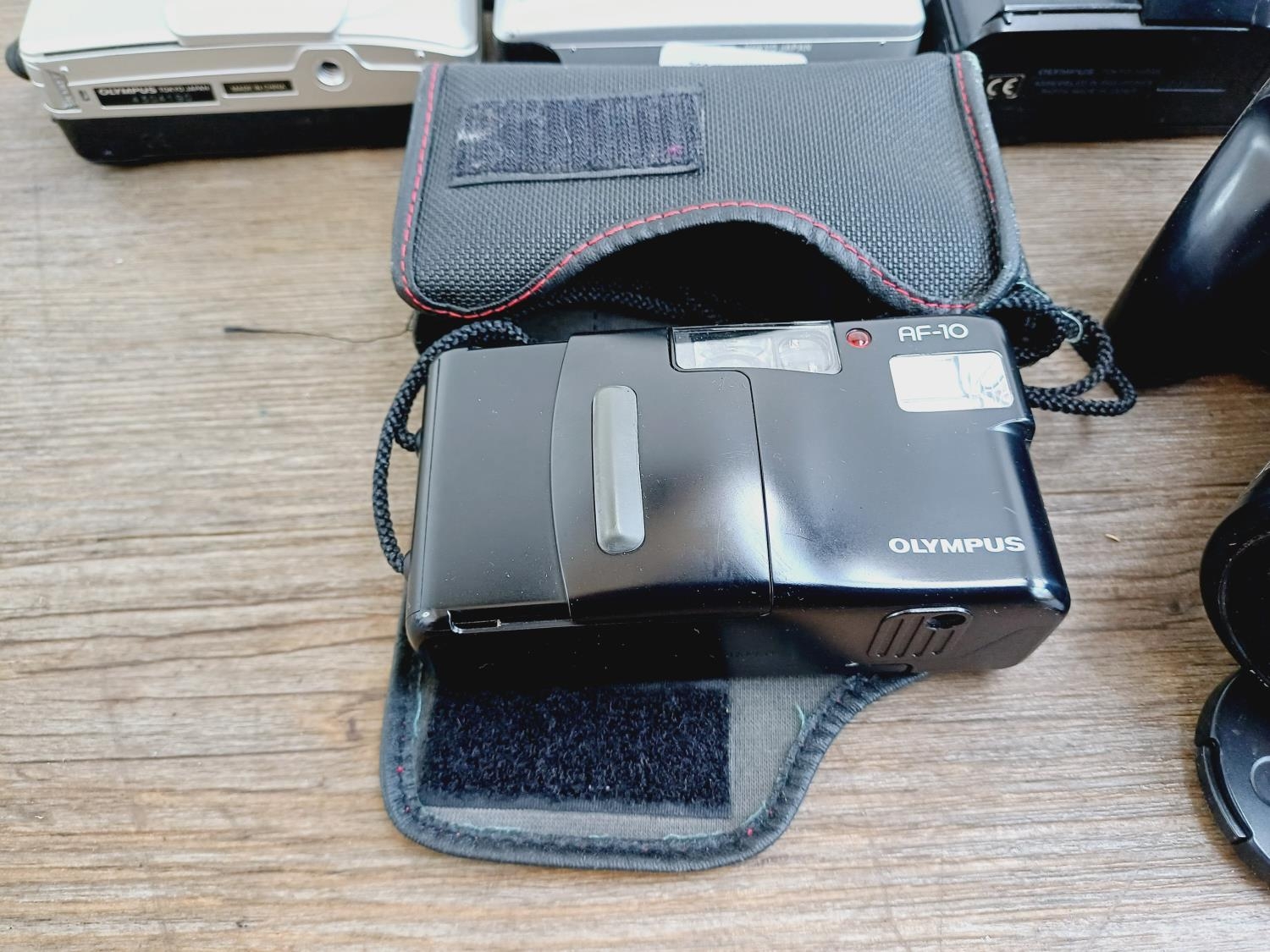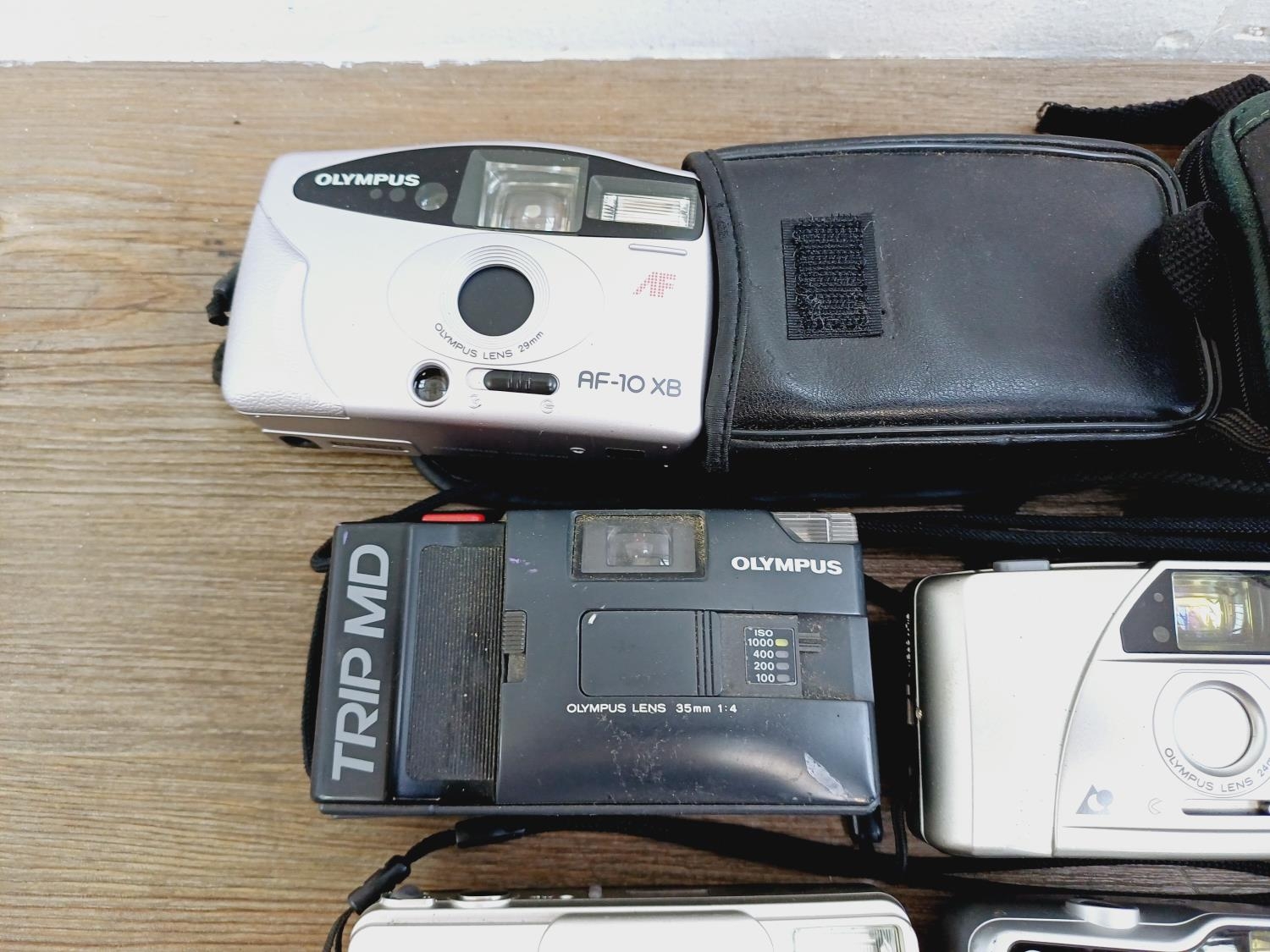 Thirteen Olympus 35mm cameras to include cased AF-10, iS-2000 fixed lens autofocus SLR, Trip MD, Superzoom 700XB, 105G and 76G, Trip AF S-2 etc.