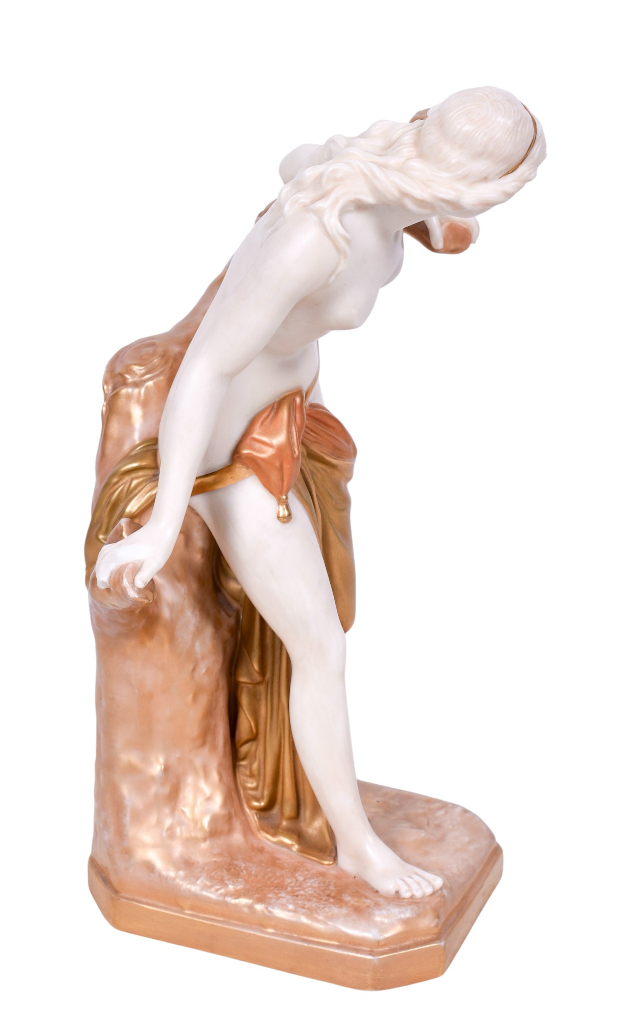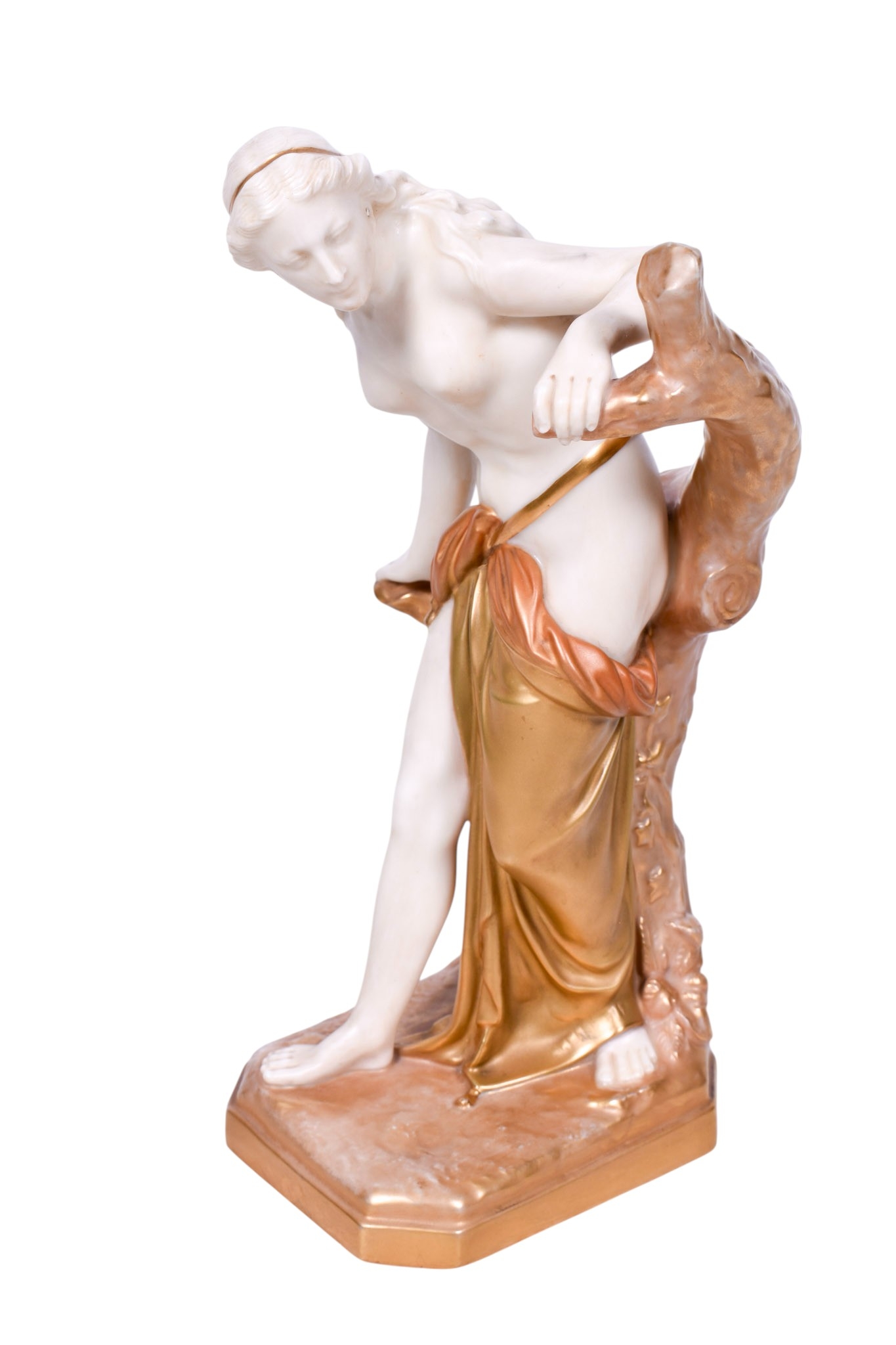 A Royal Worcester figure. No.486, modelled as a female classical figure beside a tree, mounted on an octagonal base, H27cm.