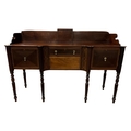 A 19TH CENTURY MAHOGANY AND SATINWOOD STRING INLAID SIDEBOARD of rectangular concaved outline the moulded three quarter gallery above a frieze drawer and cupboard flanked on each side by cupboards on spiral twist and ring turned legs 112cm (h) x 168cm (w) x 51cm (d)