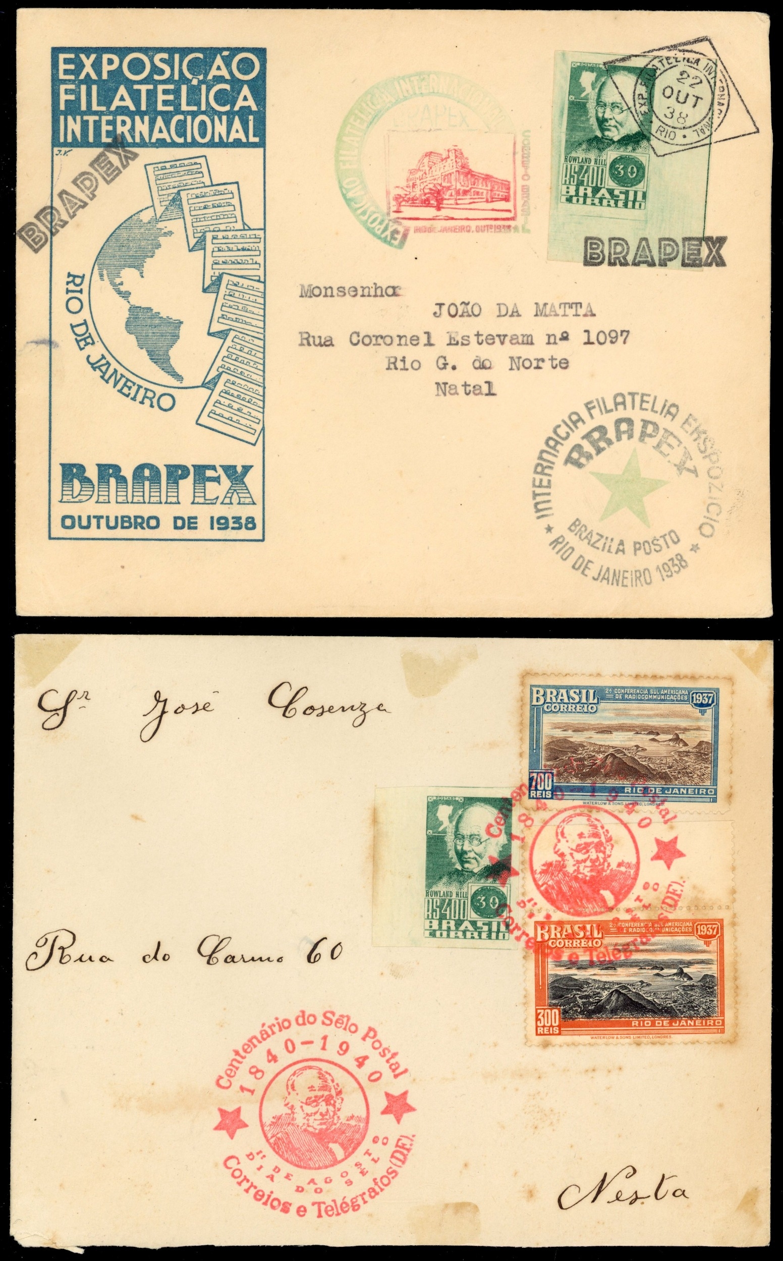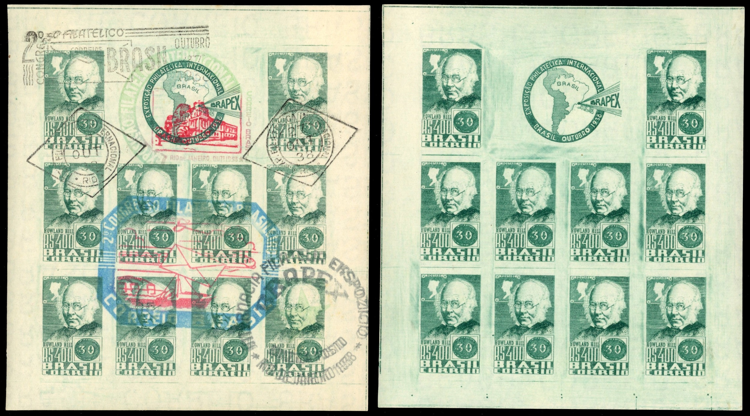 Brazil 1938 Rowland Hill 400r sheetlet of 10 unused and used plus 4 covers