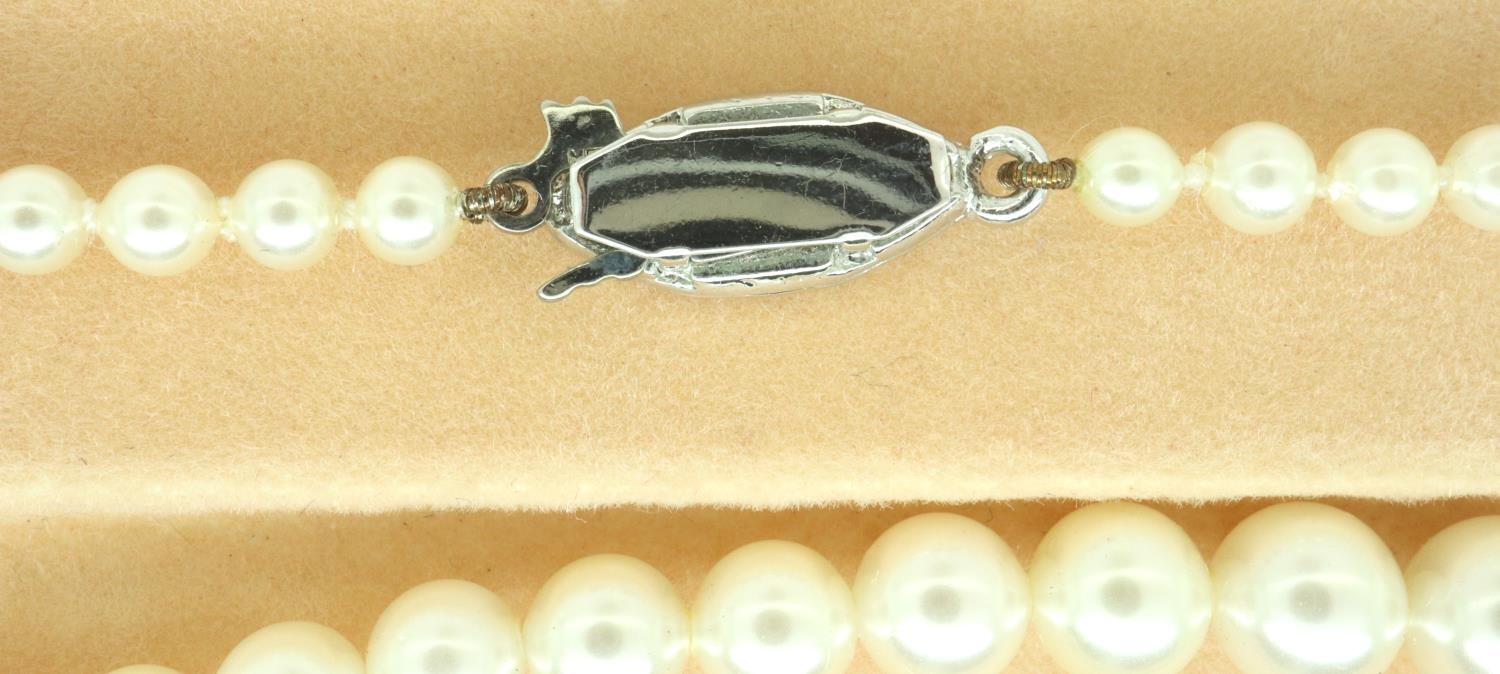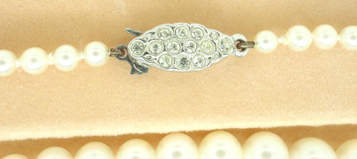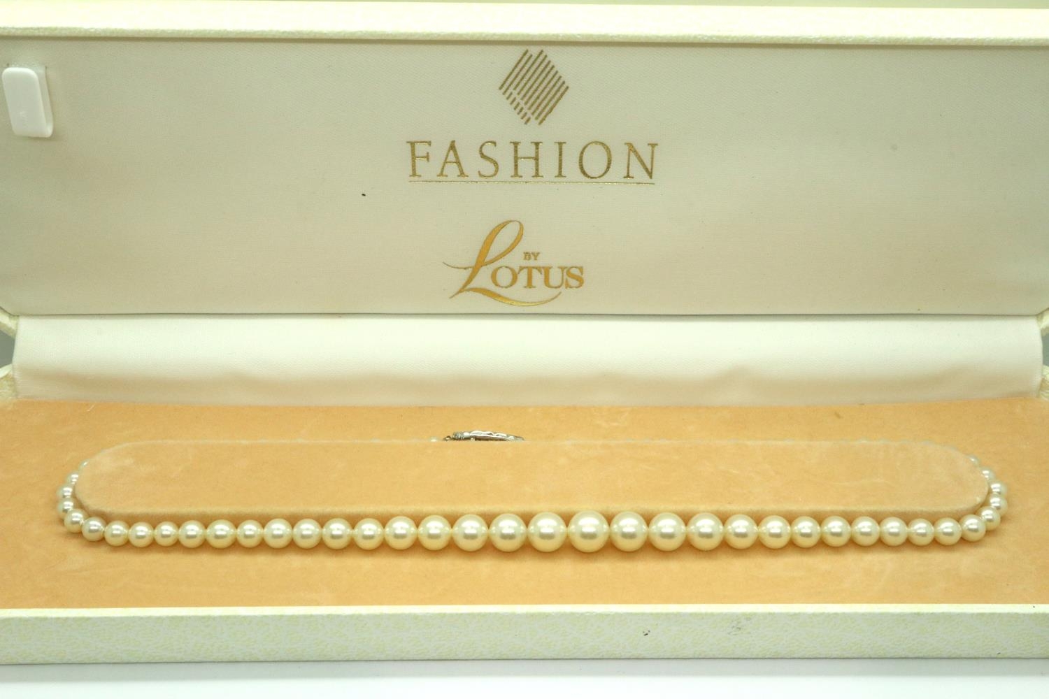 Boxed string of Lotus pearls, L: 19 cm. P&P Group 1 (£14+VAT for the first lot and £1+VAT for subsequent lots)