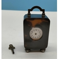 Silver Hallmarked and Tortoise Shell Hinged 8 Day Clock with Key (1932). 7cm x 4cm. Needs Attention.