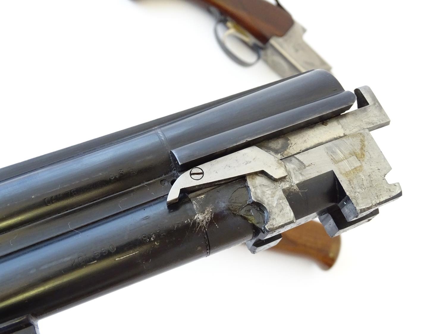 Shotgun: a Bettinsoli 12 gauge over and under ejector shotgun, single selective trigger, walnut pistolgrip stock with 14 1/2" LOP, 27 1/4" multichoke barrels with ventilated ribs and 3" chambers, serial number 84864