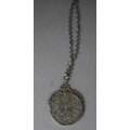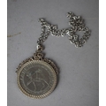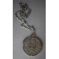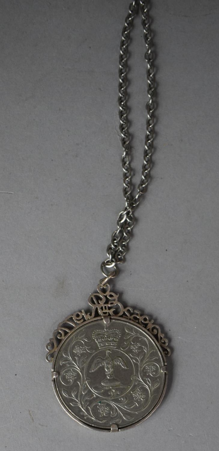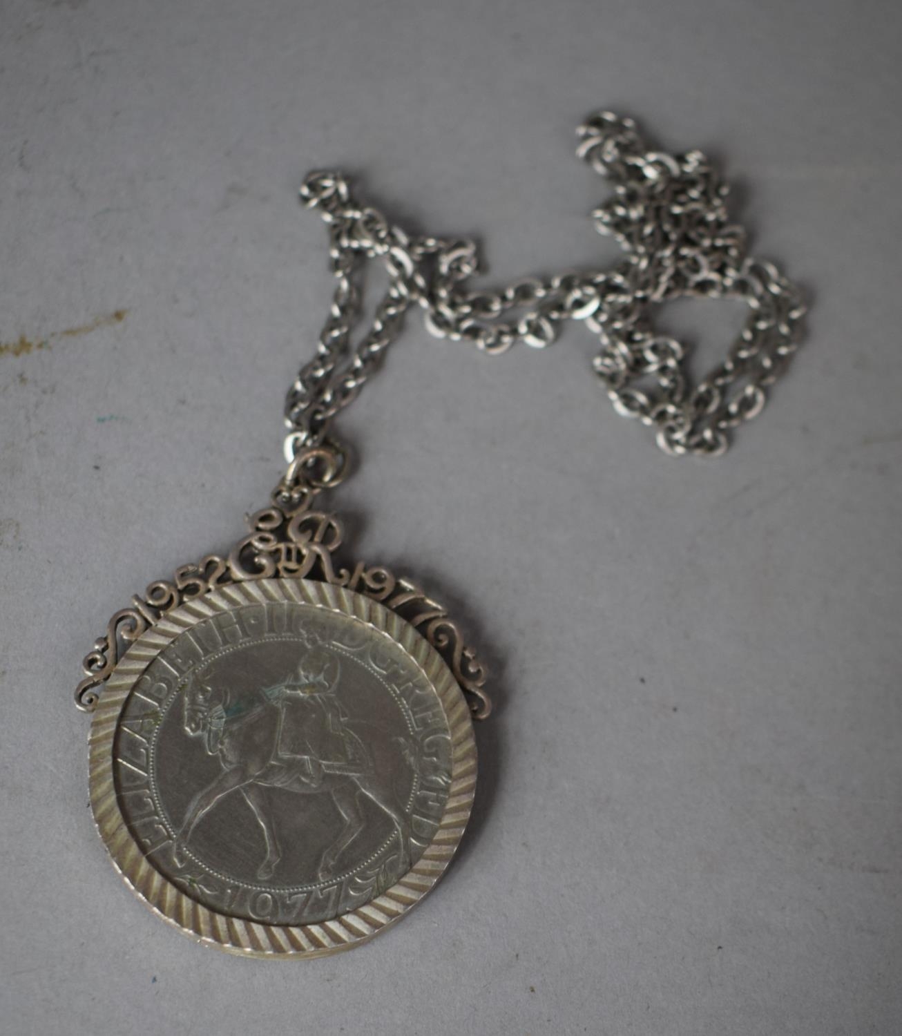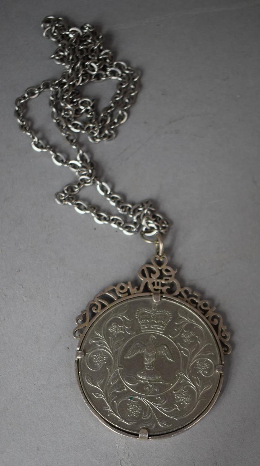 A Silver QEII Silver Jubilee Crown Mounted in Silver Mount with Stylised Decoration and with Chain