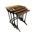 A REGENCY STYLE MAHOGANY NEST OF THREE TABLES each of rectangular outline on dual ring turned supports on platform base with splayed legs 57cm (h) x 48cm (w) x 50cm (d)