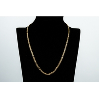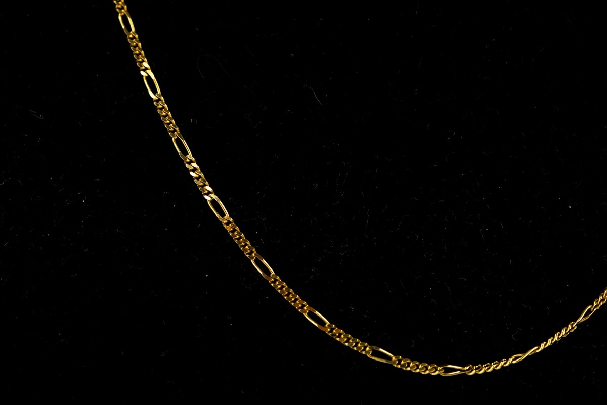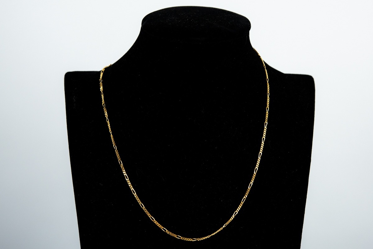 9ct GOLD FINE CHAIN NECKLACE with long and short flattened links and ring clasp, 17 ½” long (44.5cm), 1.5gms