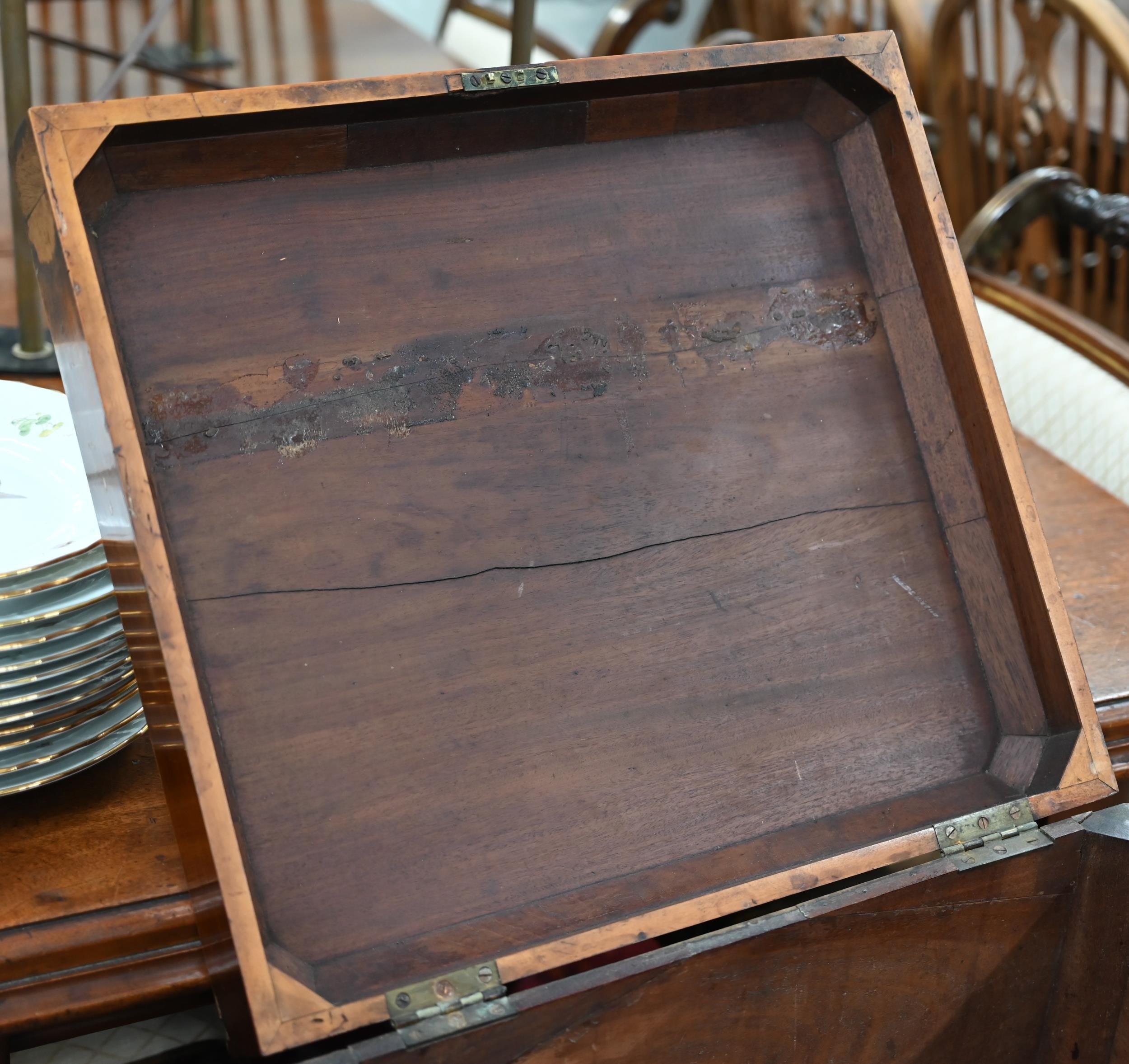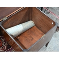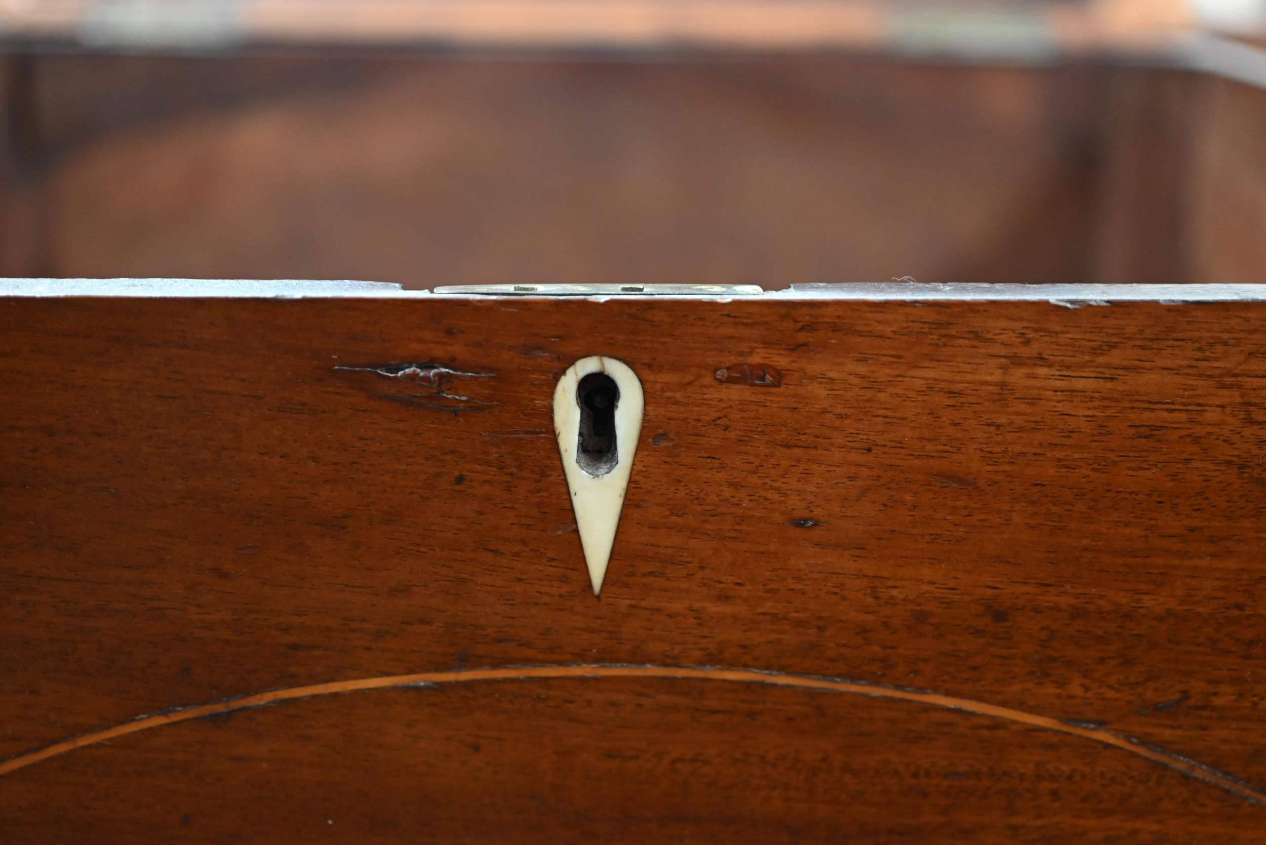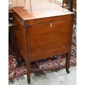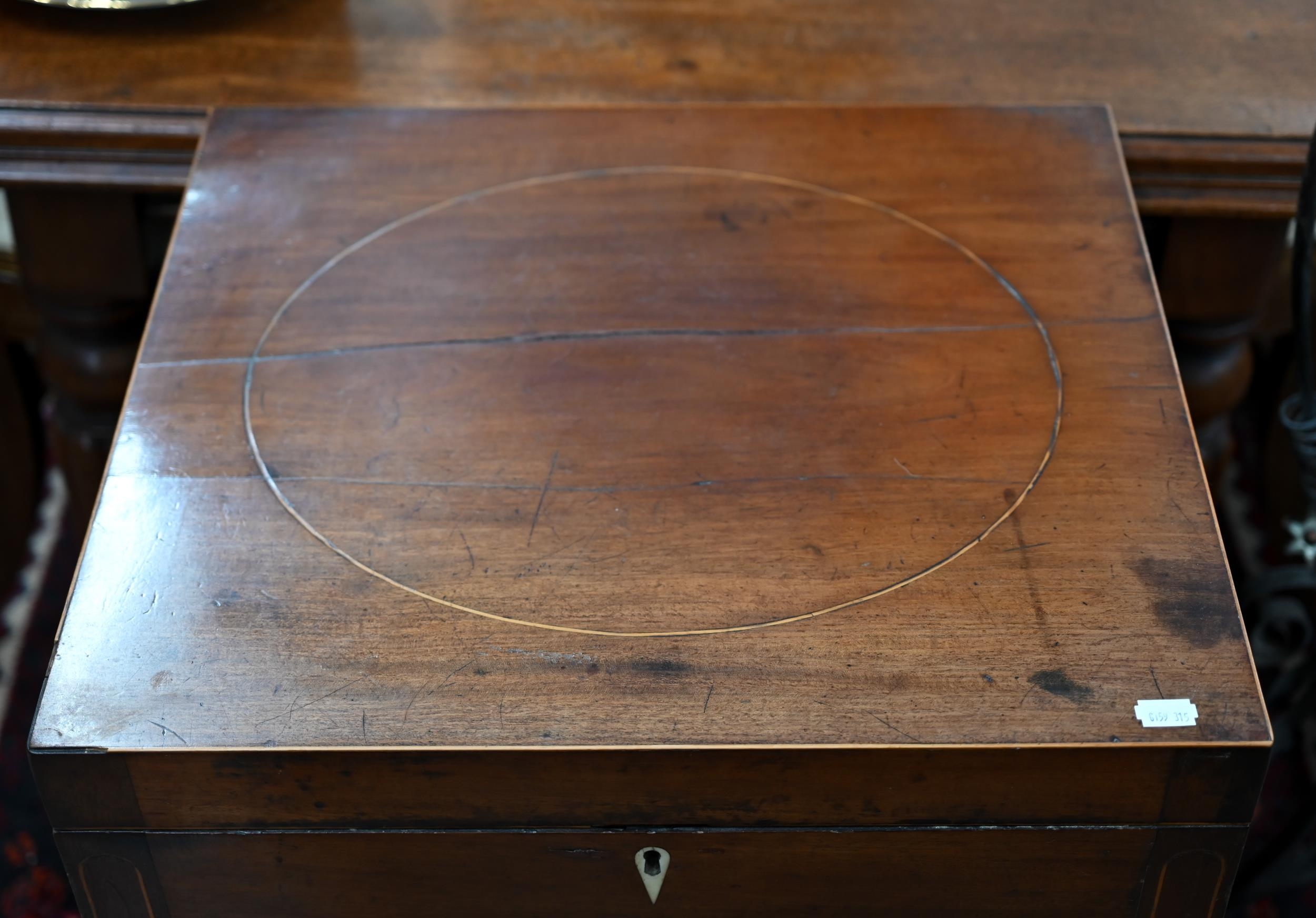 #A 19th century mahogany and boxwood strung cellarette on square tapering supports with brass casters (one missing) 50 cm w x 45 cm d x 72 cm h