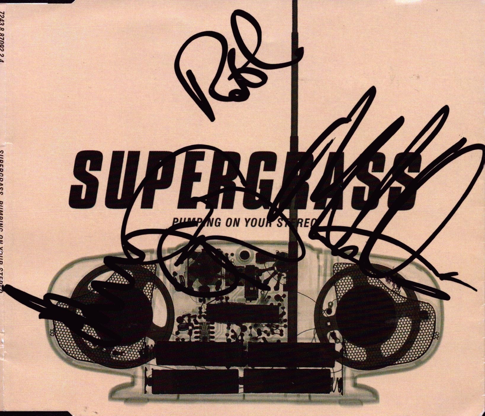 Supergrass ( English Rock Band) multi signed Pumping on your Stereo CD sleeve.