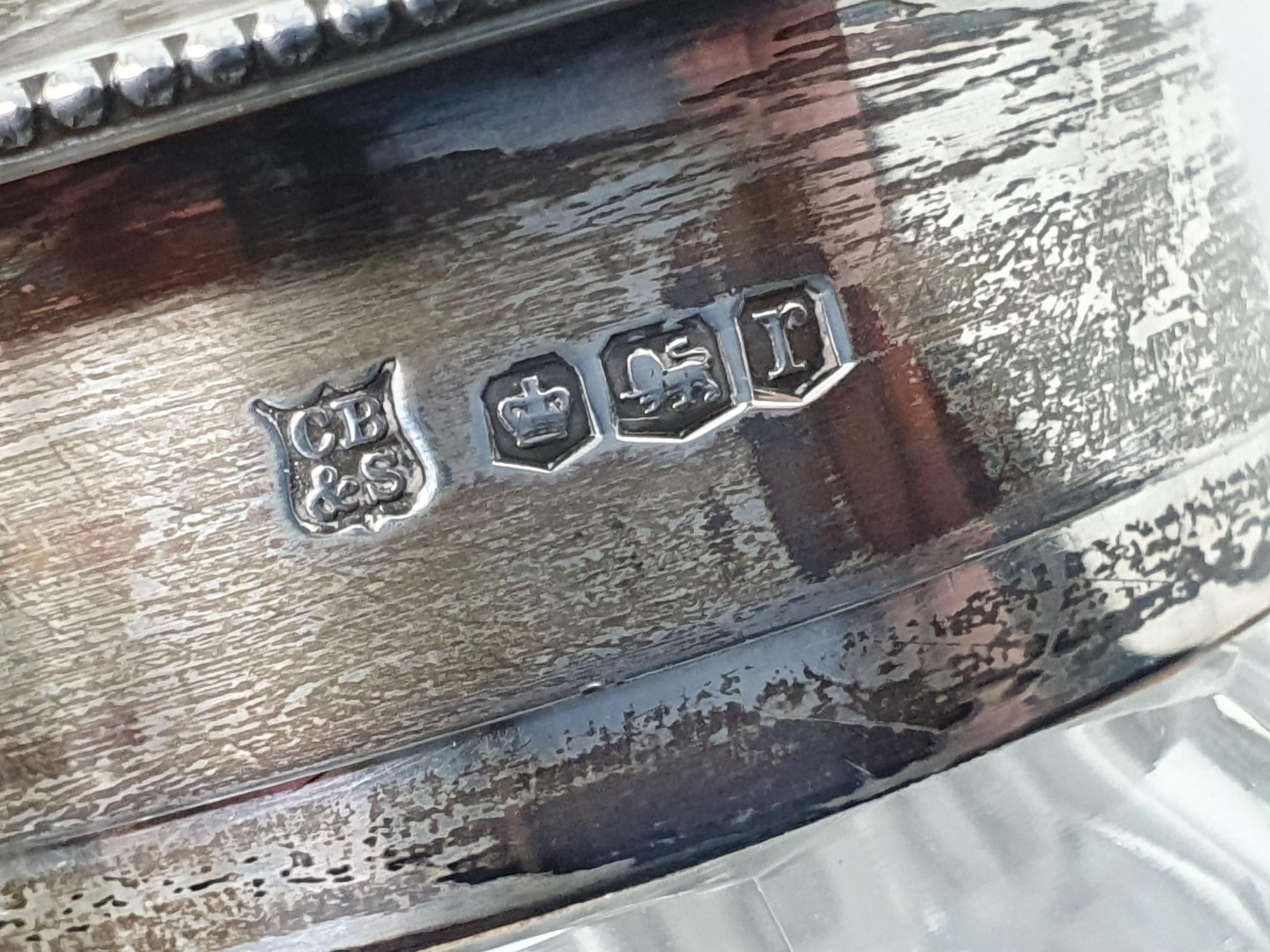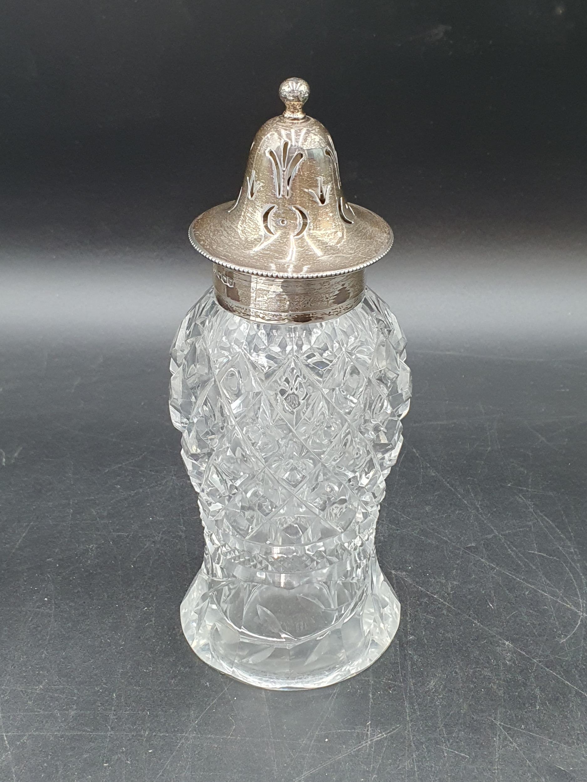 A George V silver lidded cut glass Sugar Sifter, Sheffield 1934