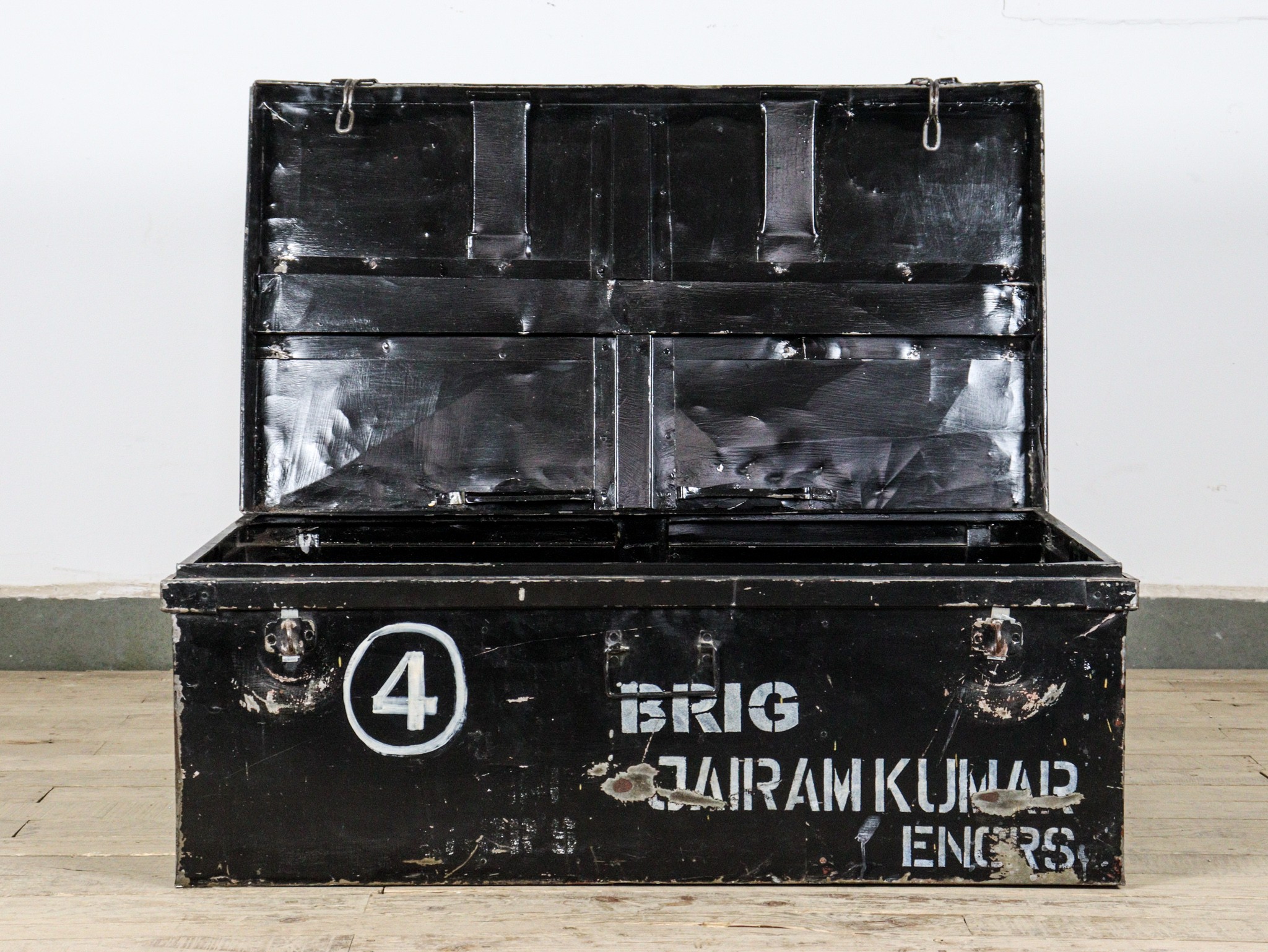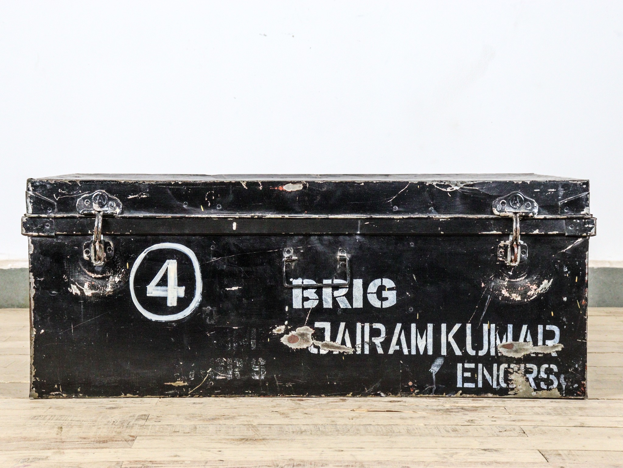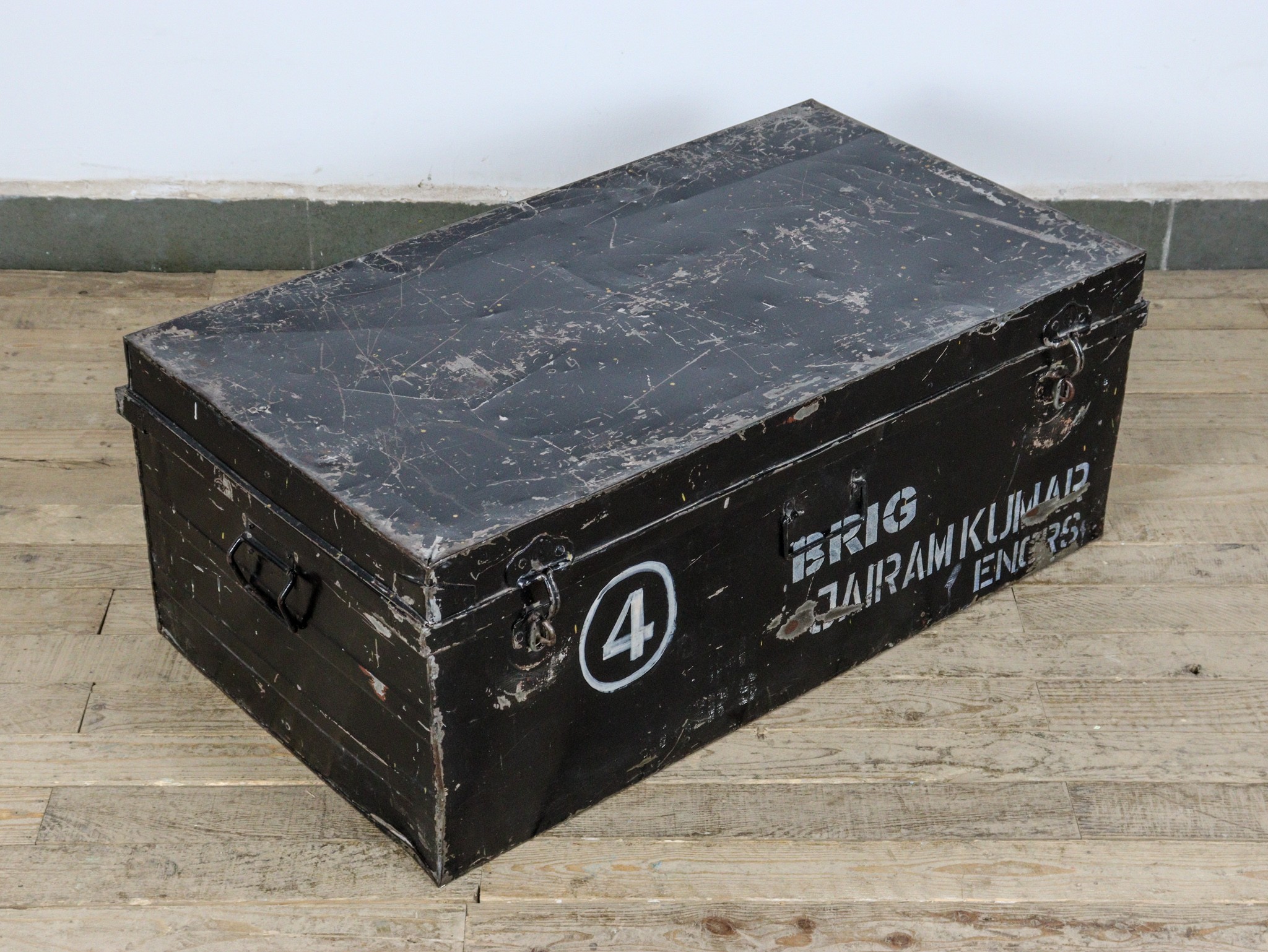 Vintage Indian army military metal travel trunk.