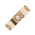 Cartier, an 18ct rose gold Love ring, with brilliant-cut diamond trio highlights and screw head motif spacers, signed Cartier, serial OTF567, estimated total diamond weight 0.30ct, G-H colour, VS+ clarity, Swiss convention marks, Cartier size 52, ring size L1/2, with maker's case, 8.6g