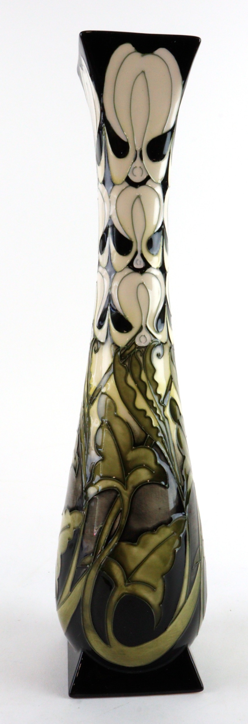 Moorcroft slender vase with a square base, dated 2009, makers marks to base, height 35cm approx.