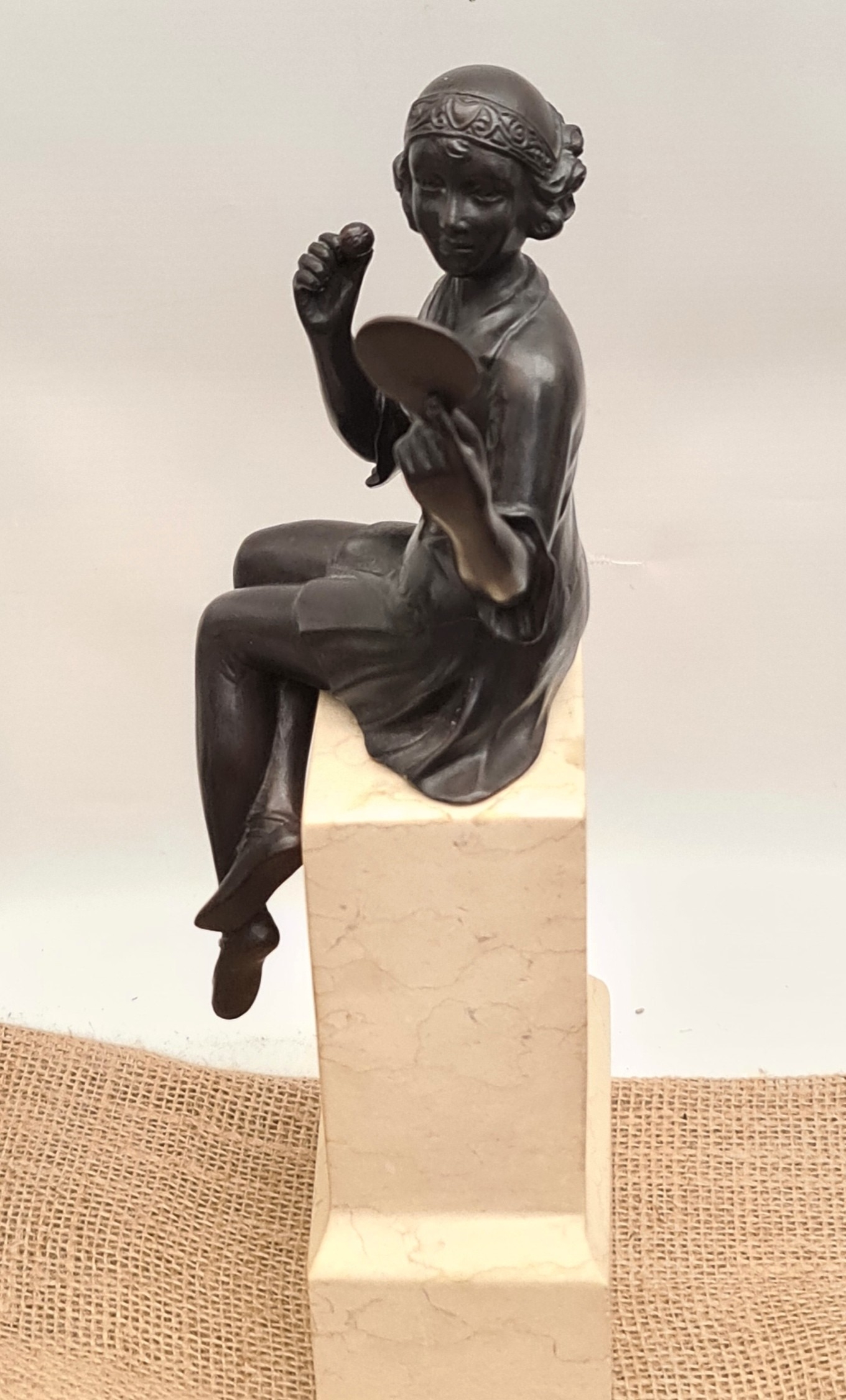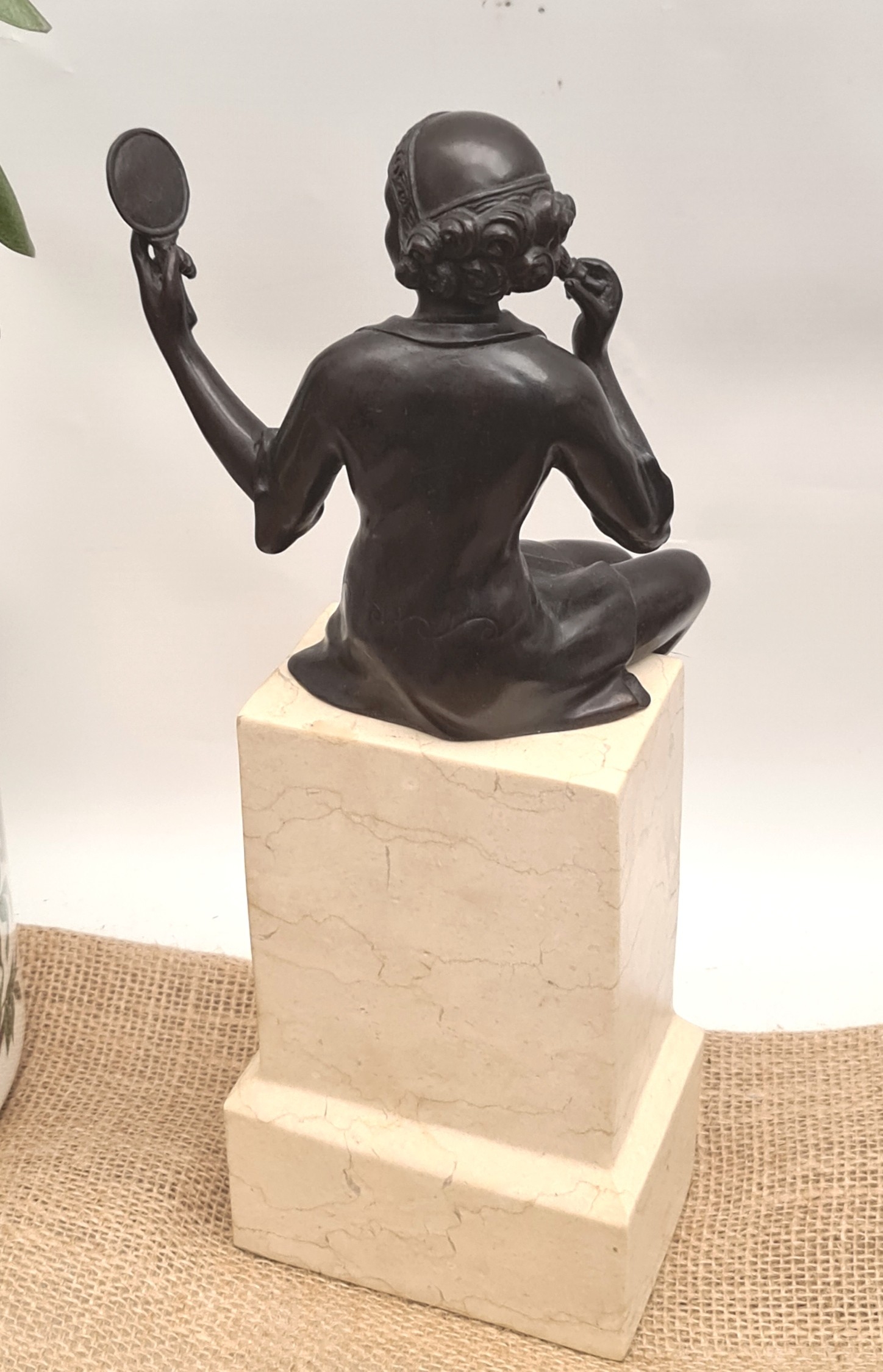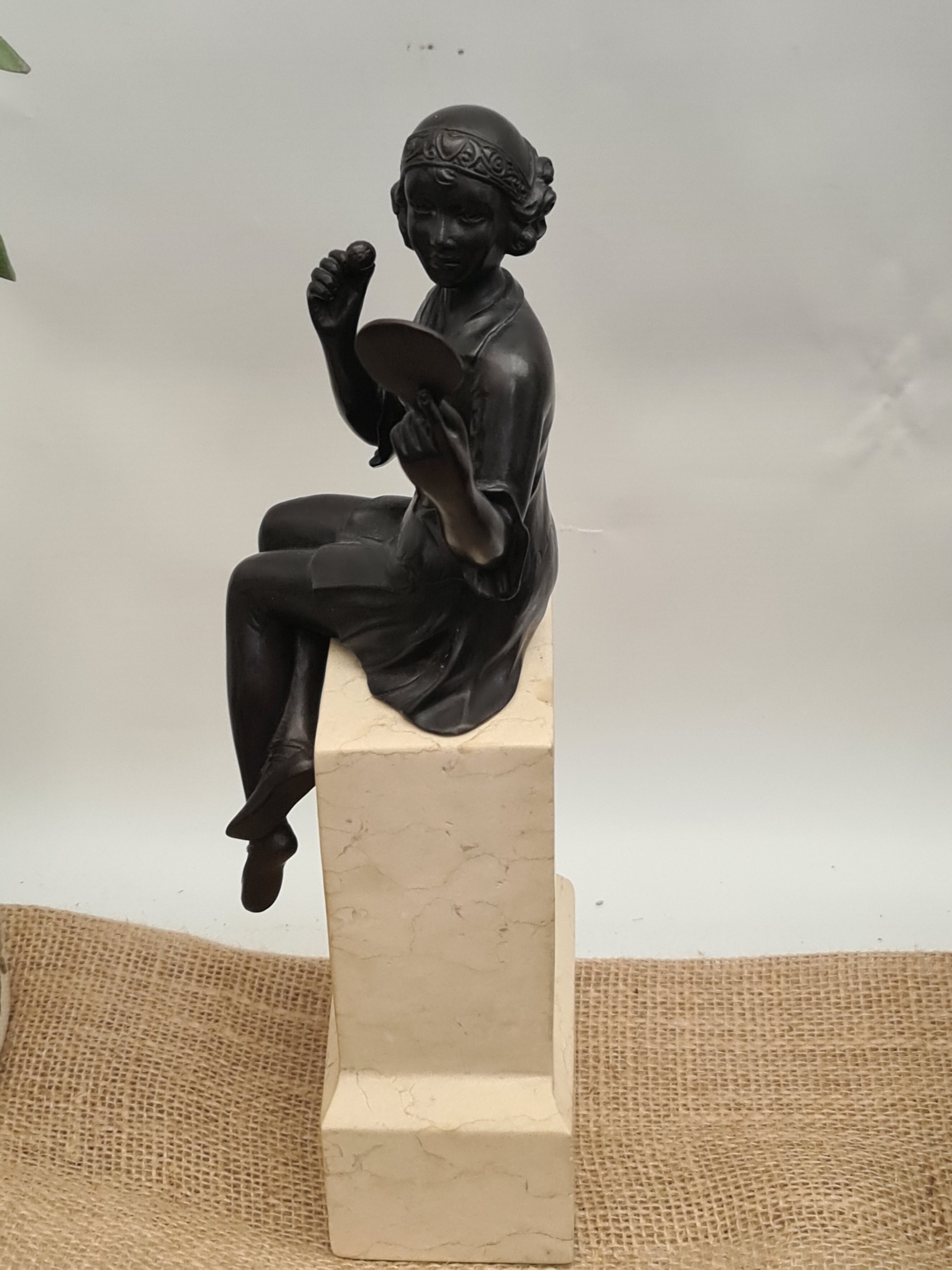 Vintage Bronze Figure Art Deco Style, Depicting A Seated Maiden Holding A Mirror, Raised On Marble Base. Measures 32cm tall. Shipping is available. Please ask for a quote before bidding. Where possible we combine shipping costs. Remember, if you are the highest bidder above reserve on this Lot you have bought the item and are legally responsible for the item. Viewing is recommended in either person or via video link. Contact us to arrange.