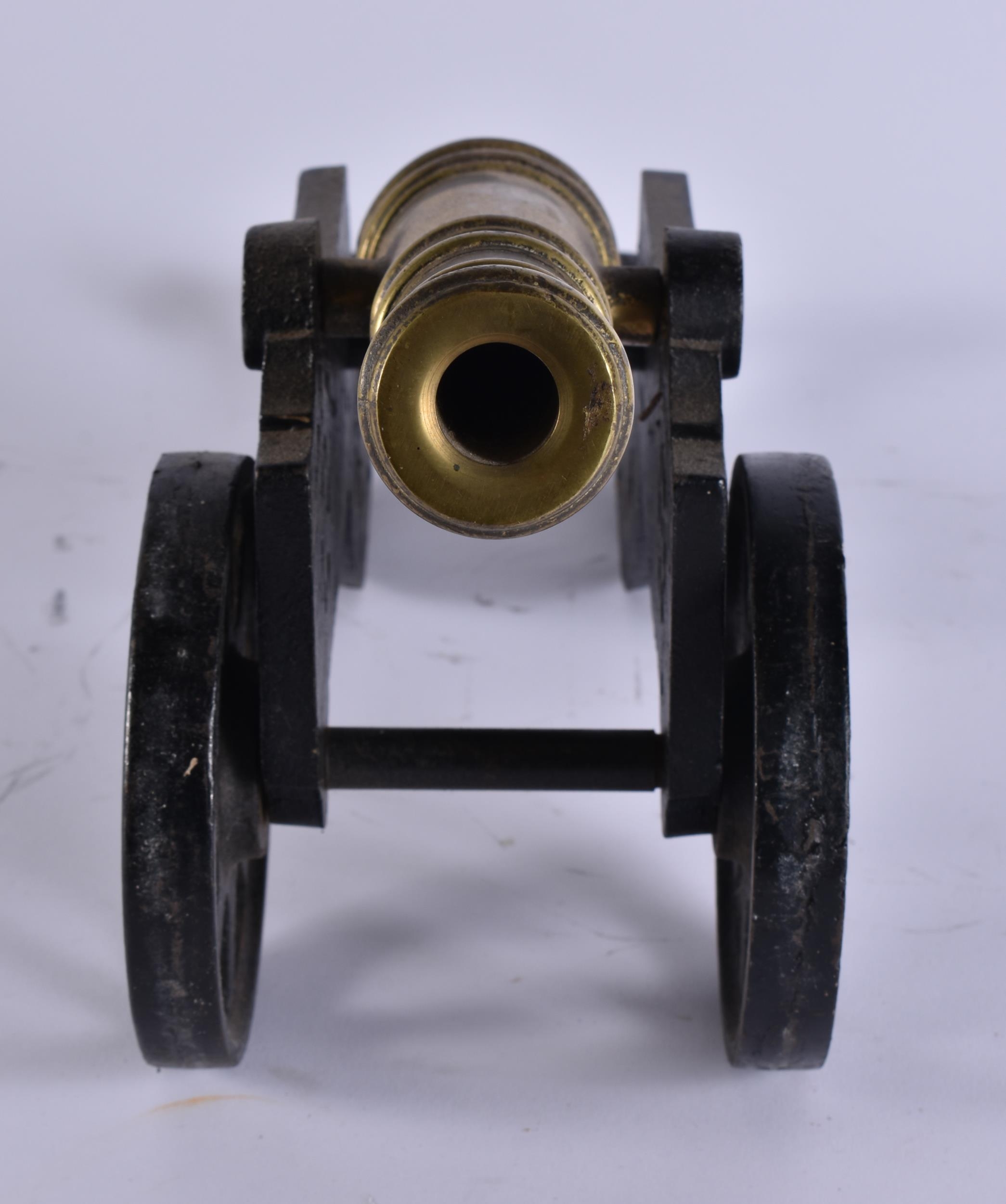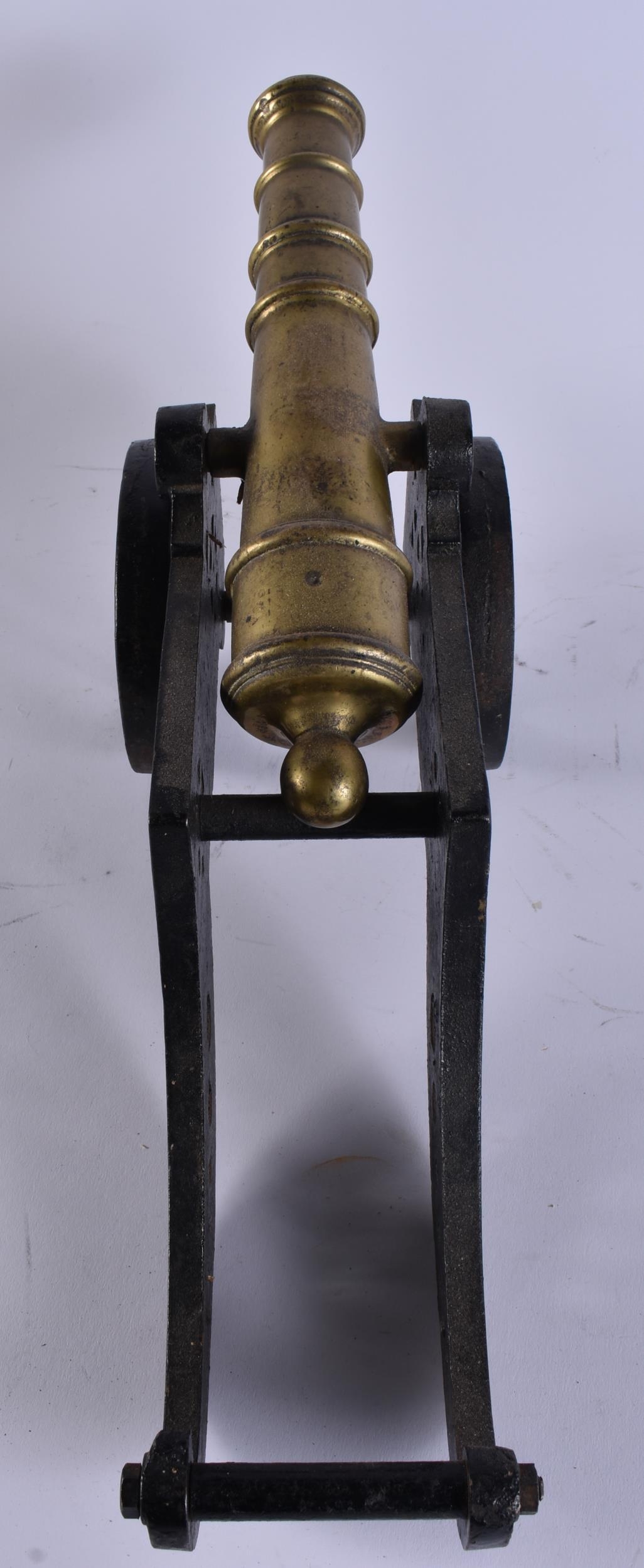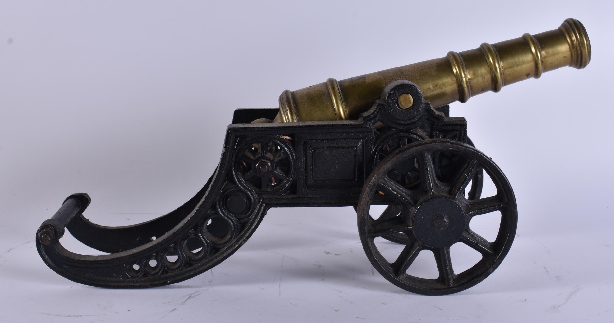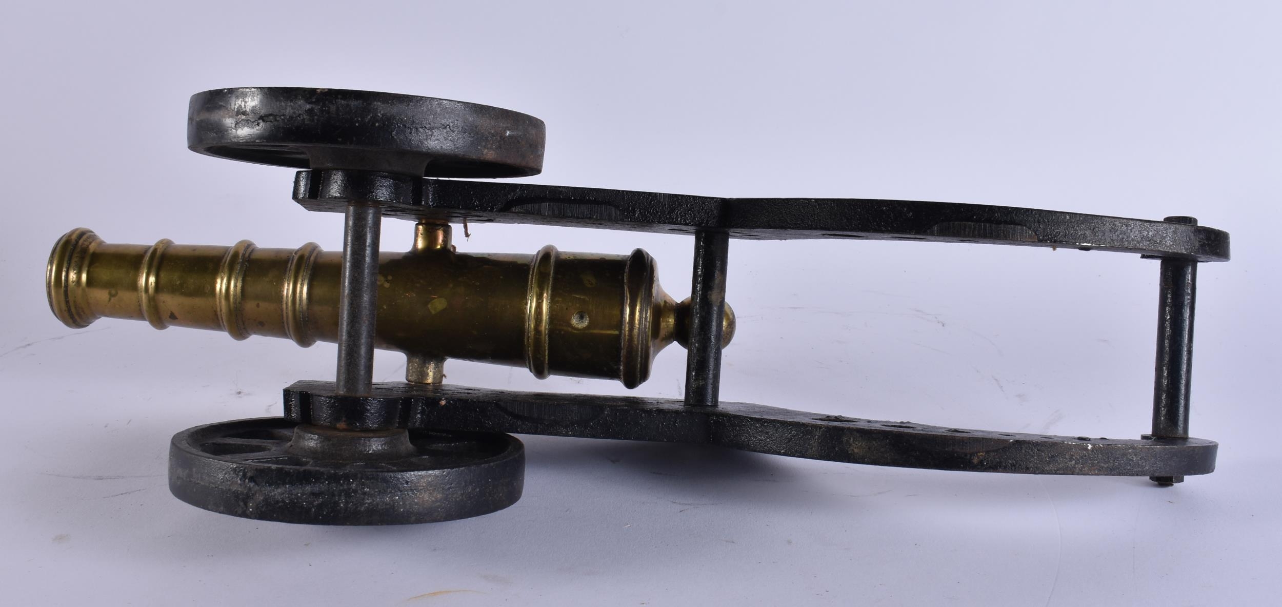 AN ANTIQUE BRONZE AND CAST IRON CANNON. 45 cm wide.