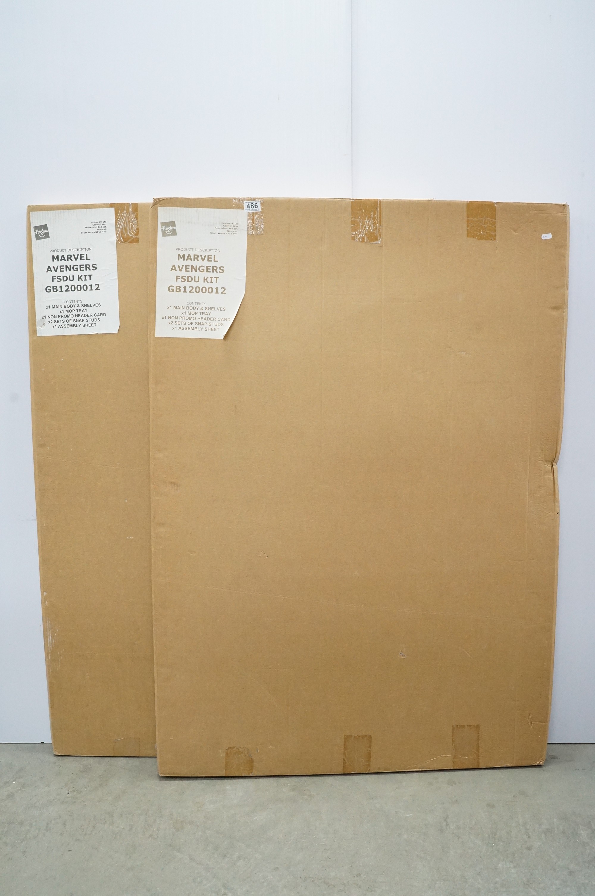 Shop Display - Two large boxed Hasbro Avengers cardboard trade display kits (boxes 56" in height)