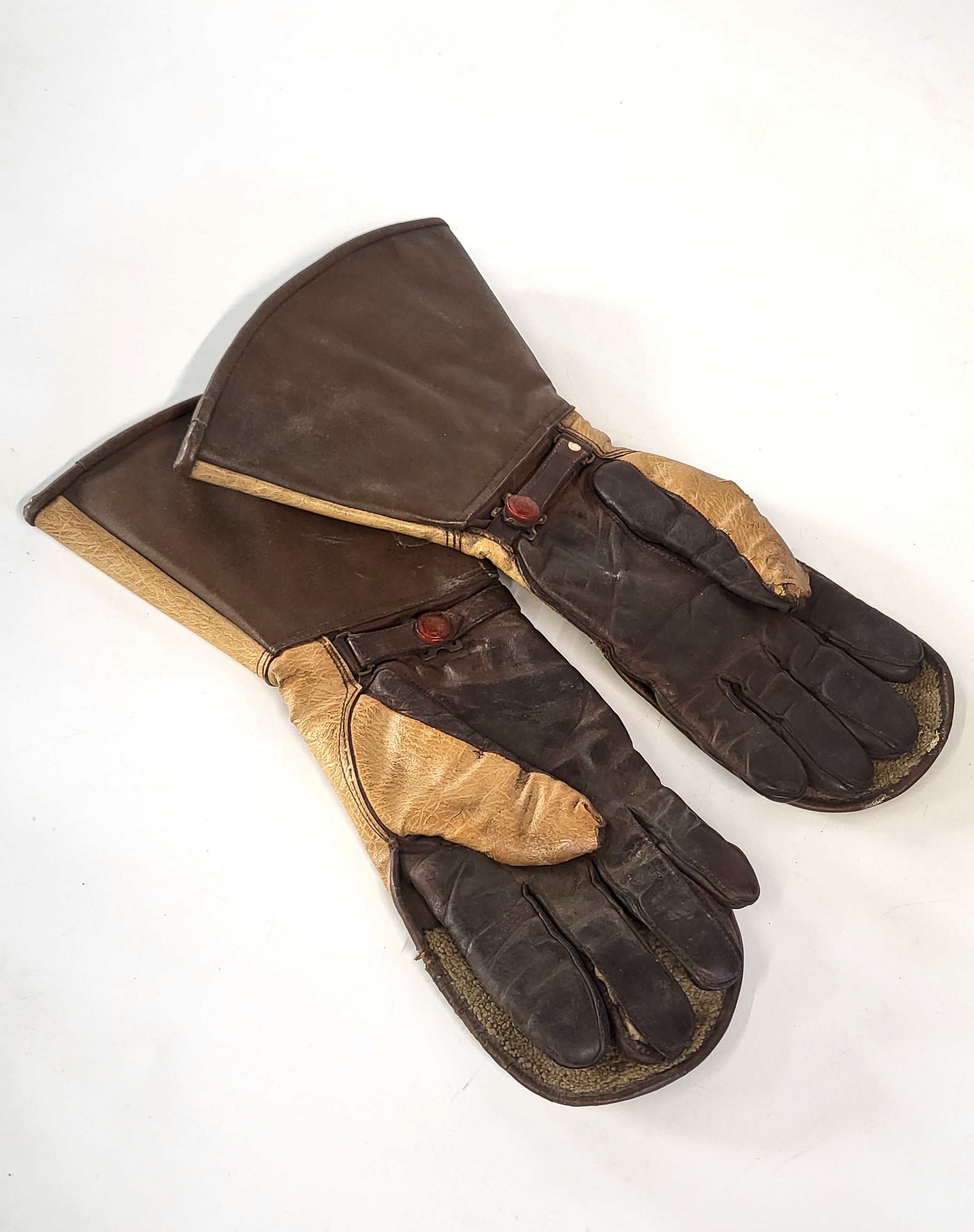 A pair of vintage leather motorcycle gauntlet/ gloves.
