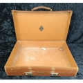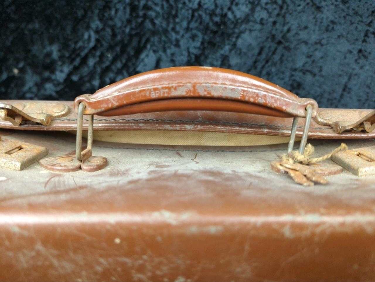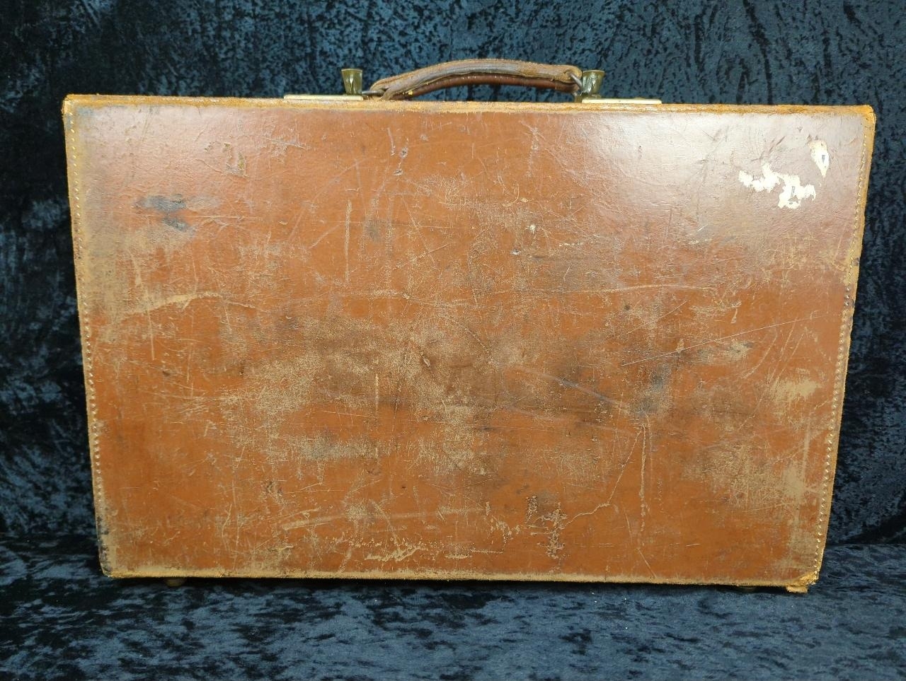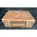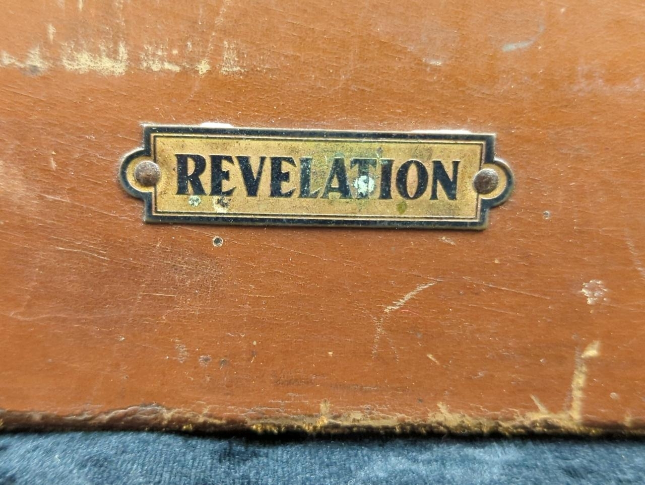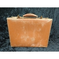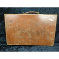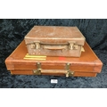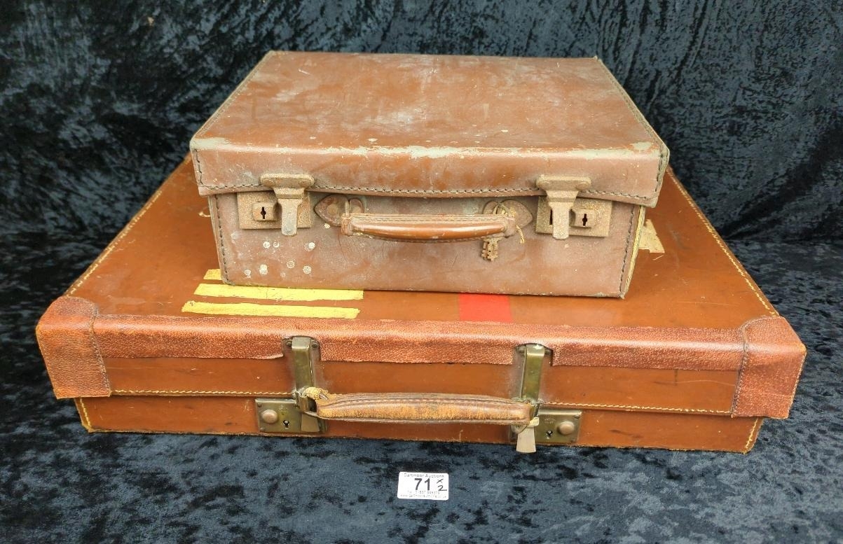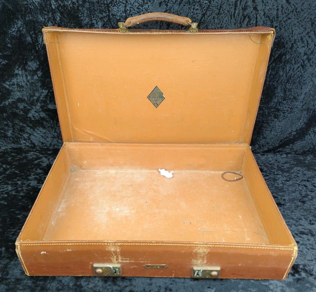 Two vintage brown leather suitcases - largest by Revelation with remains of address labels to top, approx W56 x D37cm.