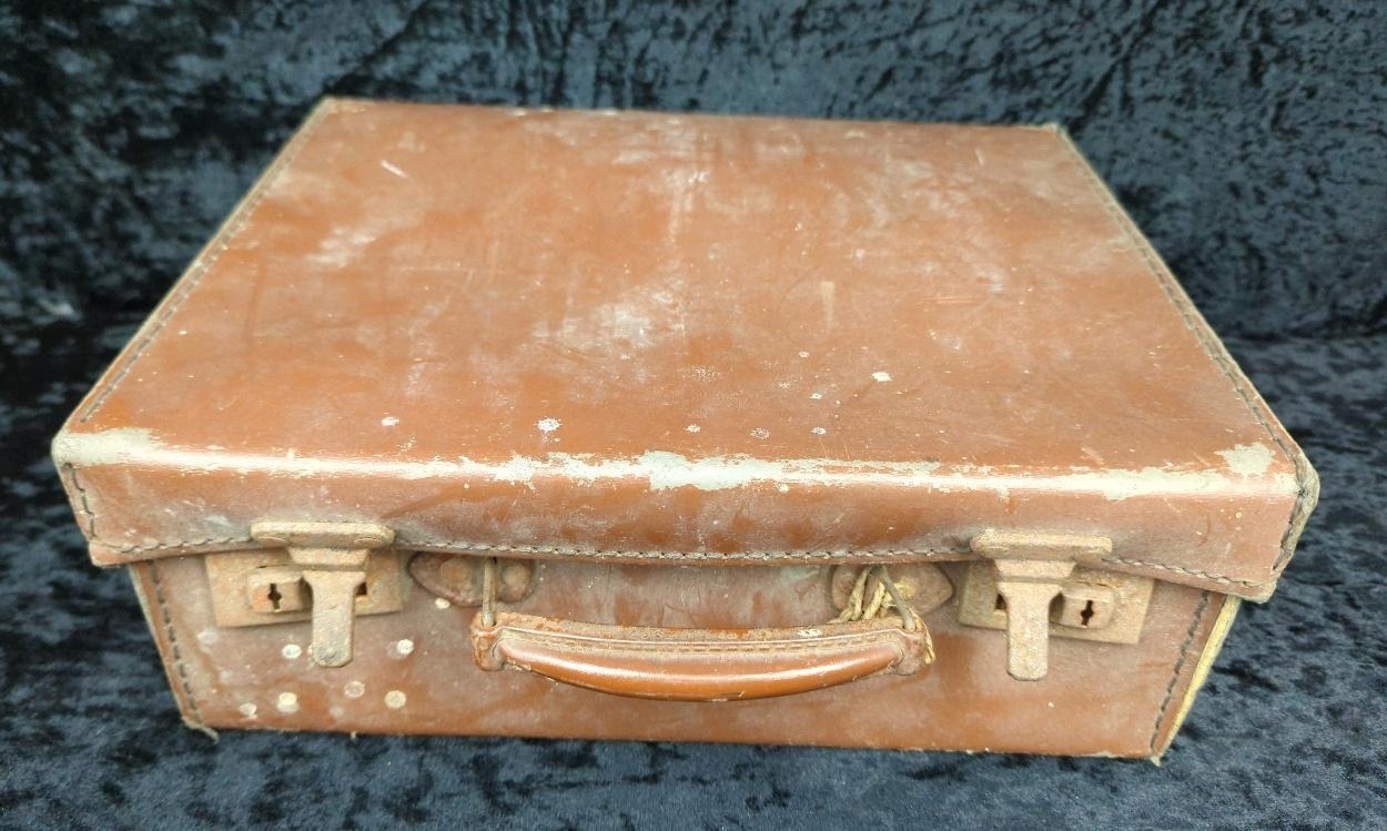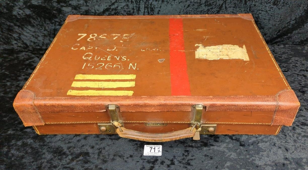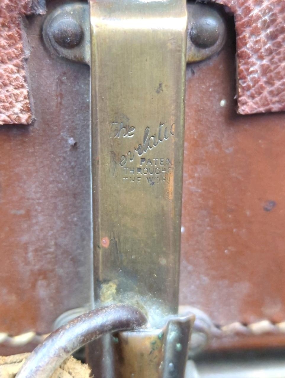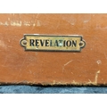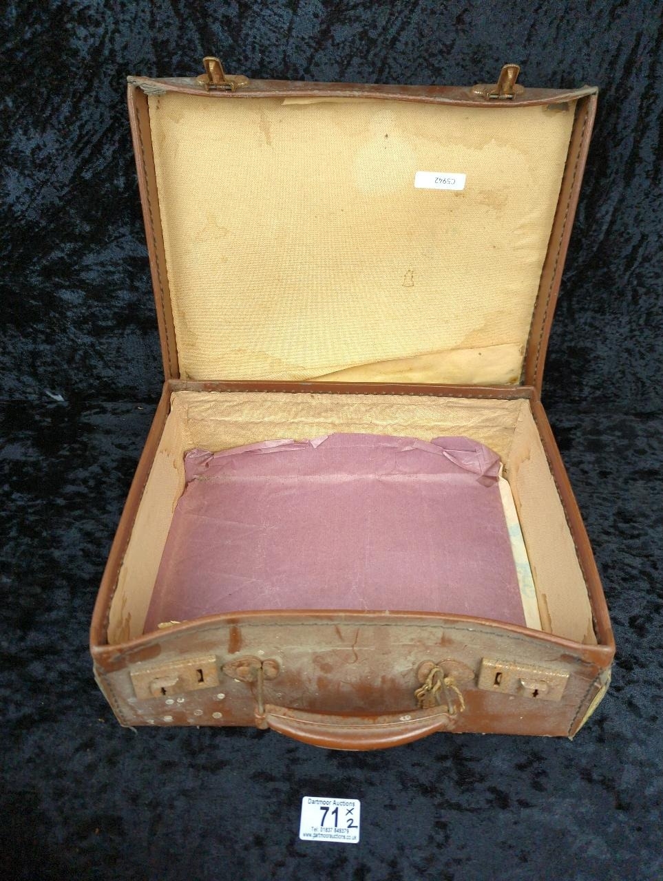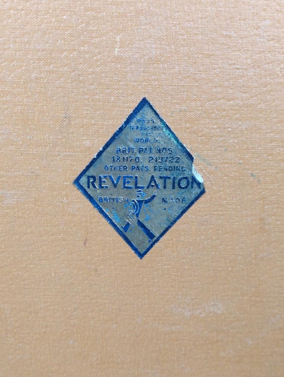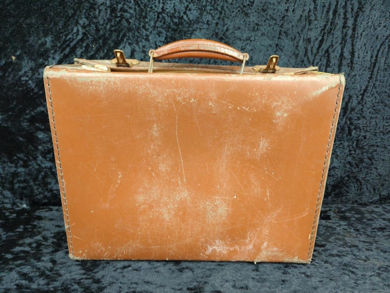 Two vintage brown leather suitcases - largest by Revelation with remains of address labels to top, approx W56 x D37cm.
