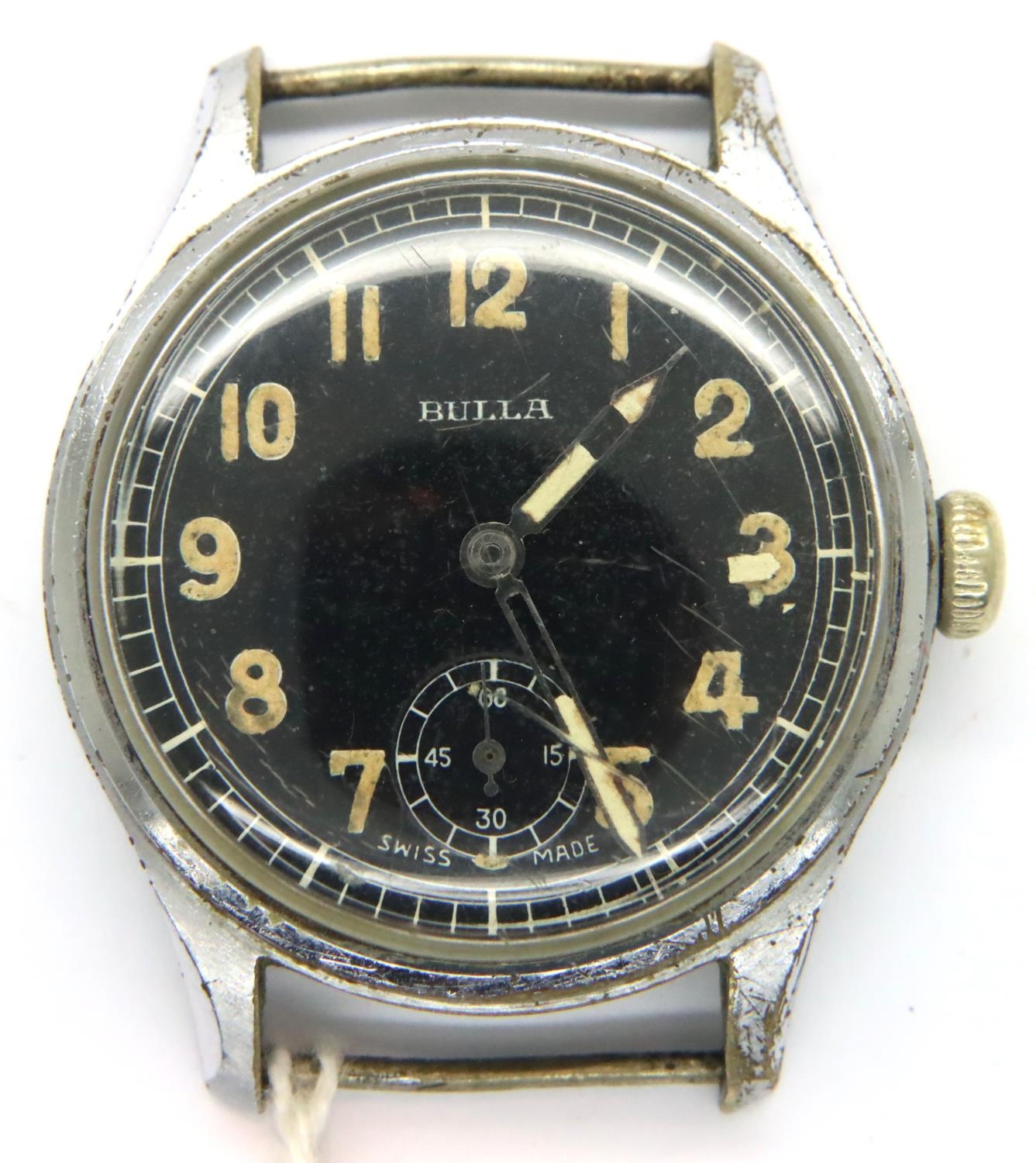 WWII German Army Bulla wristwatch, marked DH for Deutsche Heer. Working at lotting. P&P Group 1 (£14+VAT for the first lot and £1+VAT for subsequent lots)