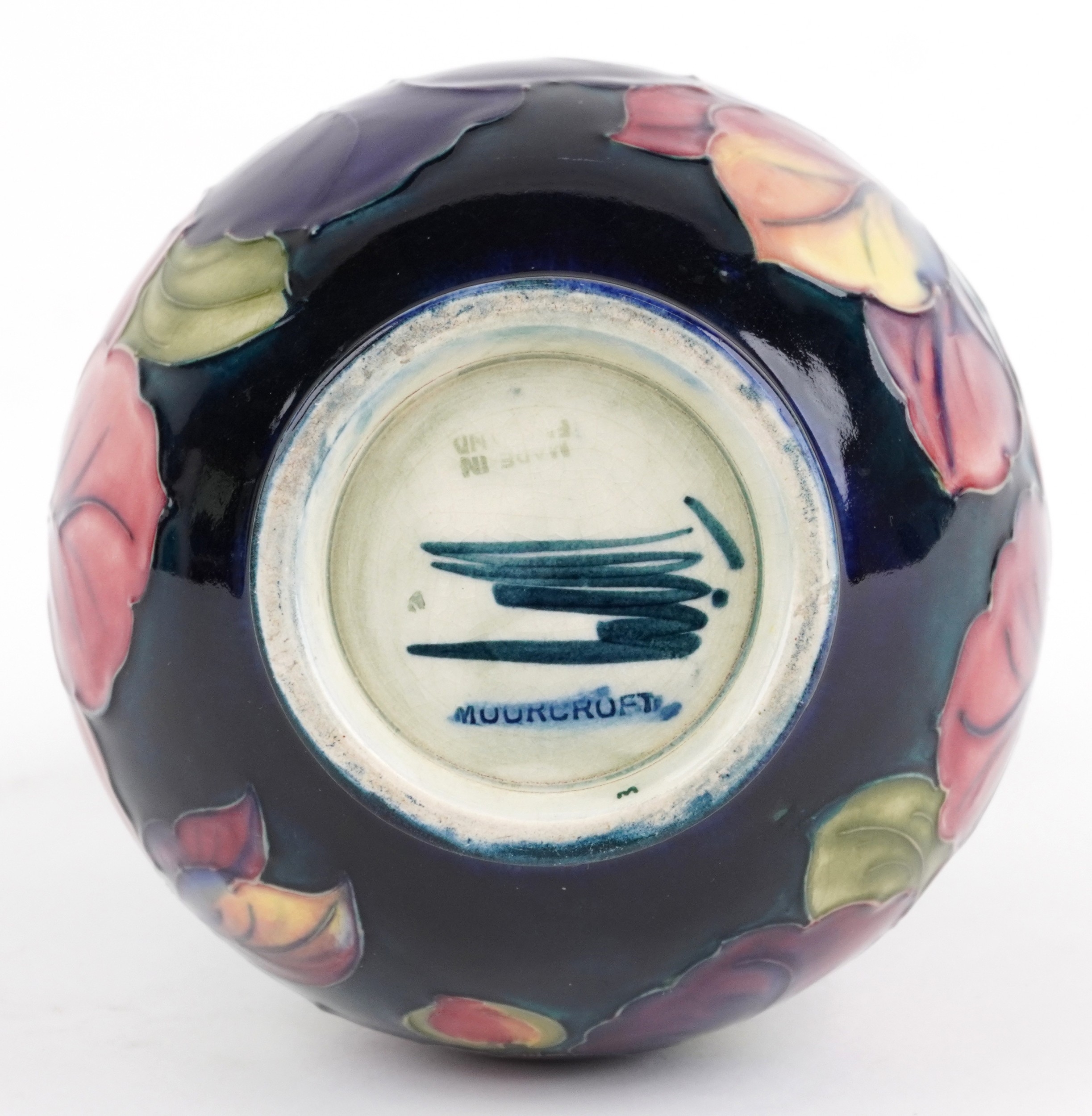 A William Moorcroft pottery vase hand painted in the Clematis pattern, 18cm high.