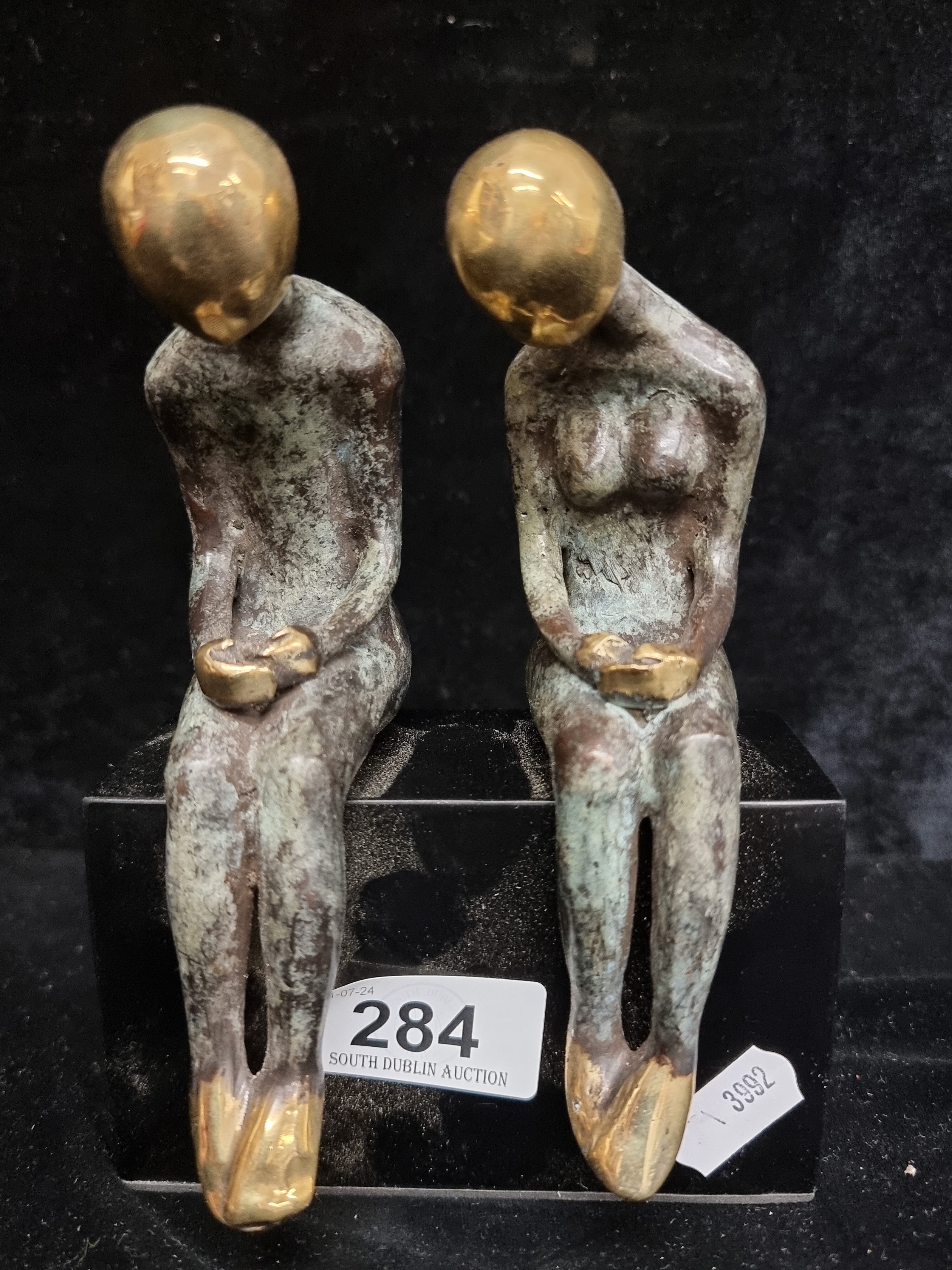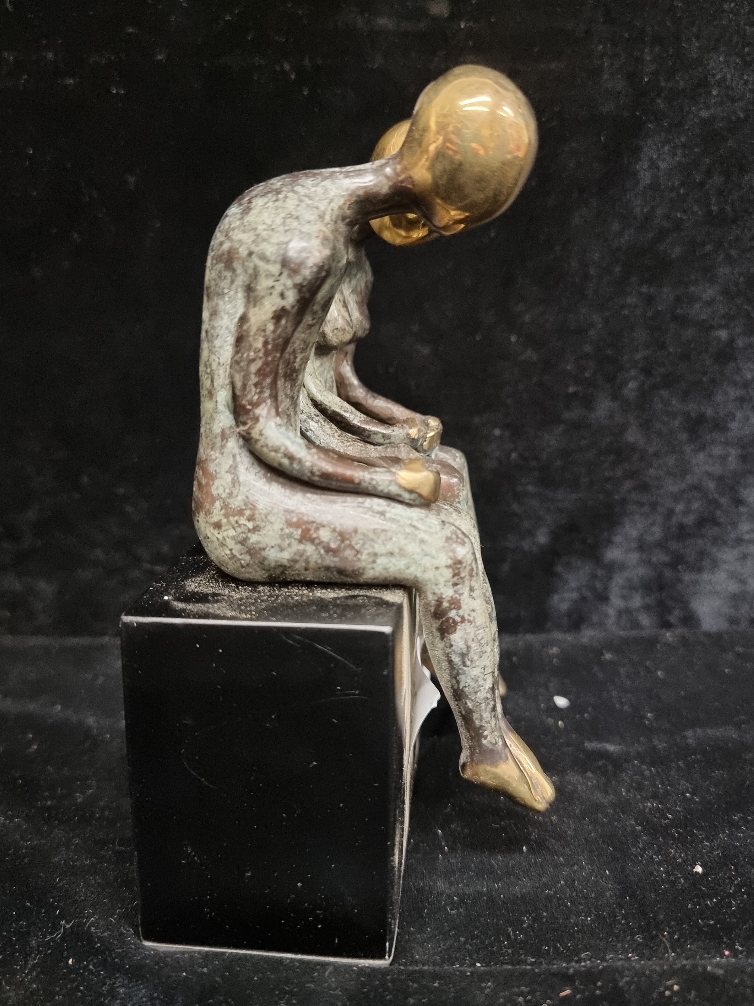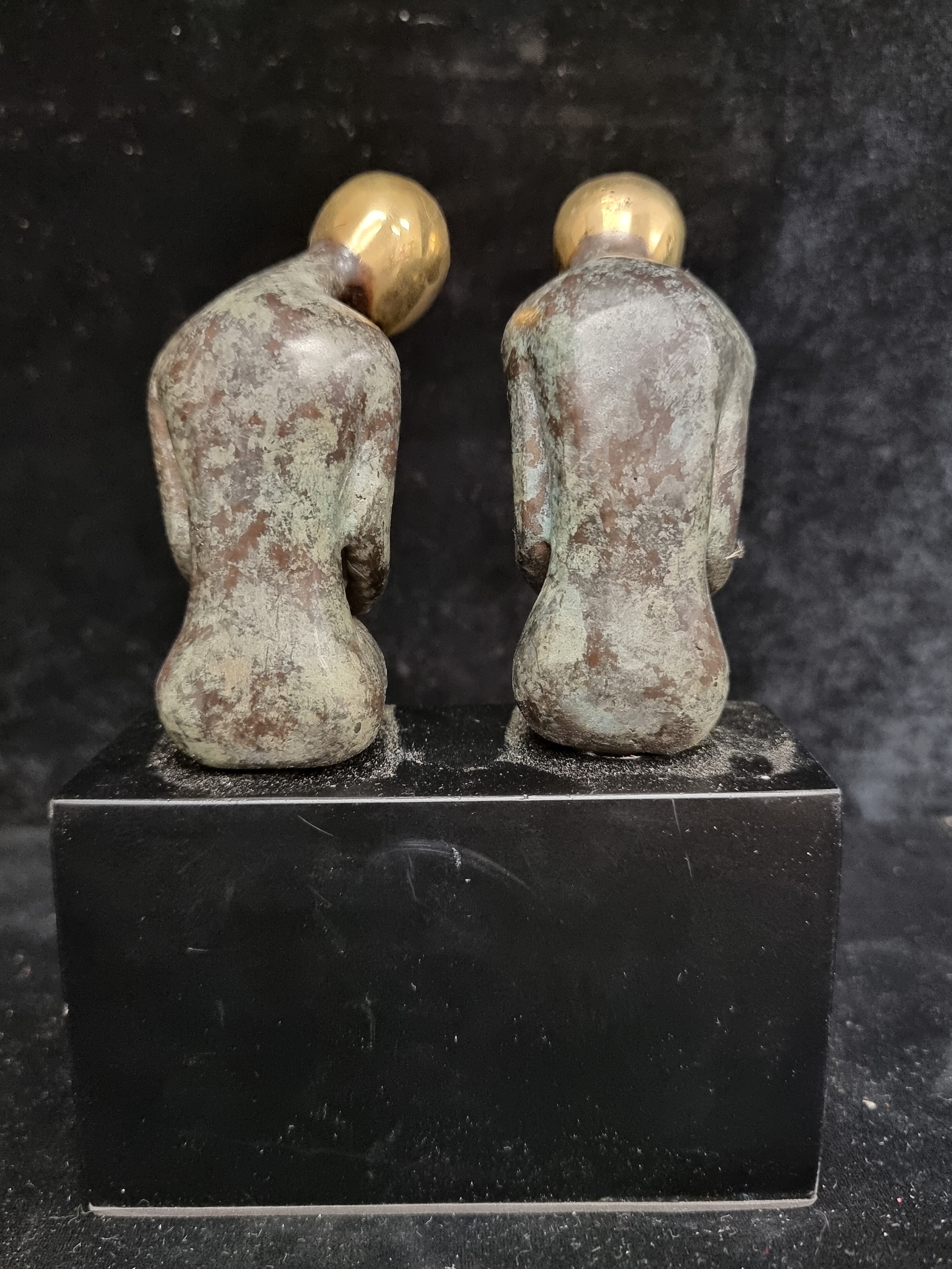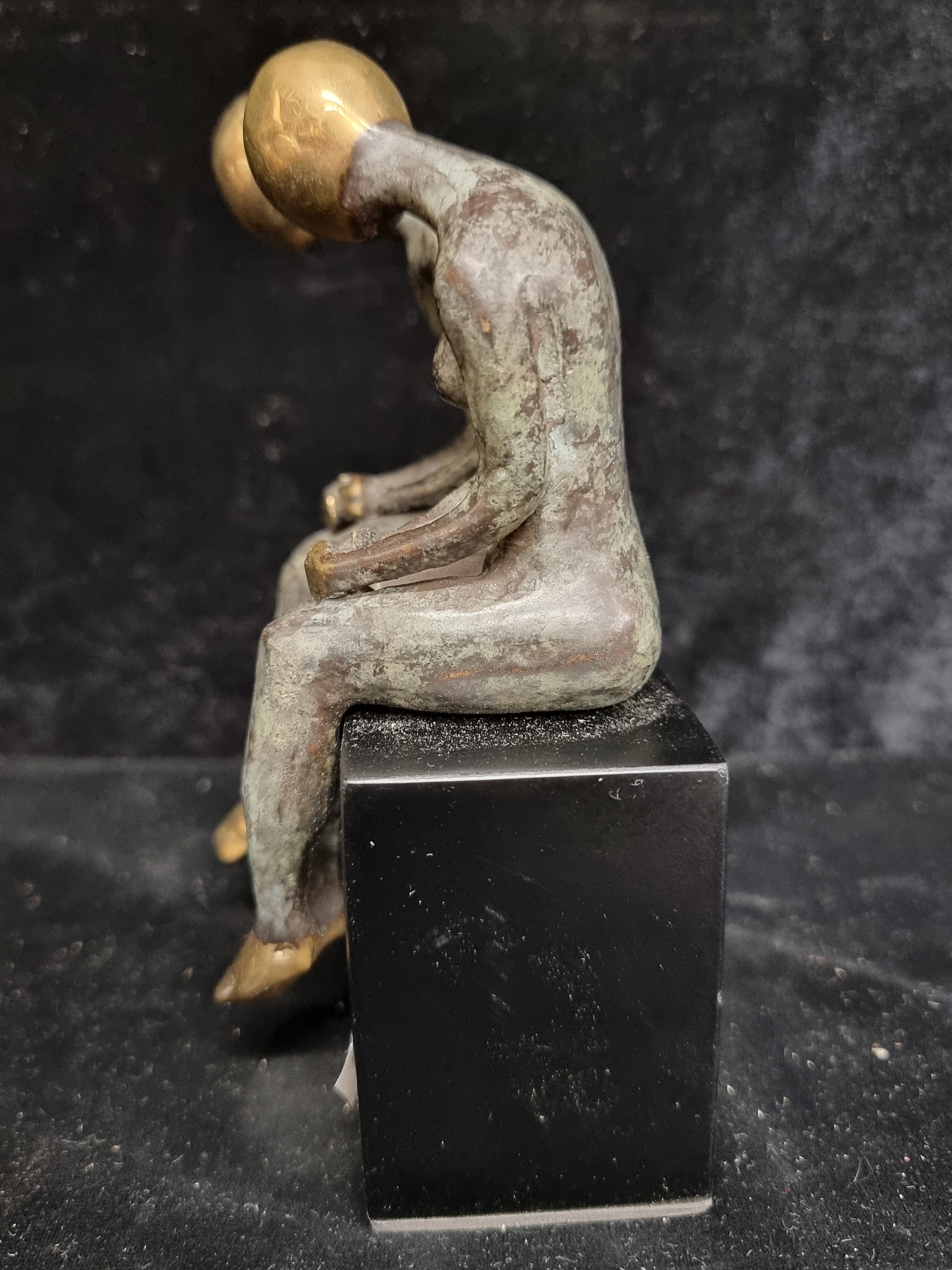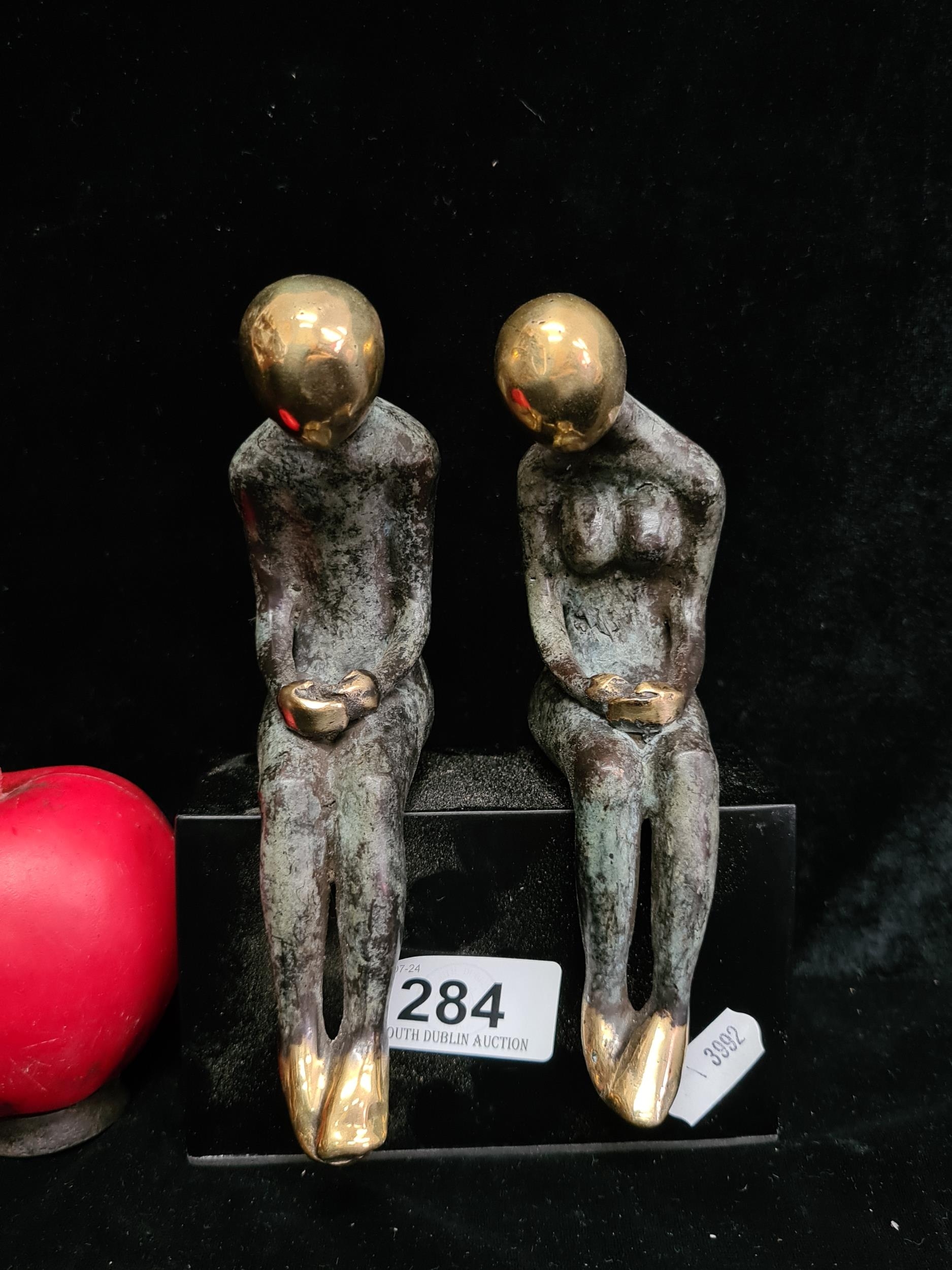Star lot : A thoughtful beautiful heavy cast bronze of two figures mounted on a marble plinth.