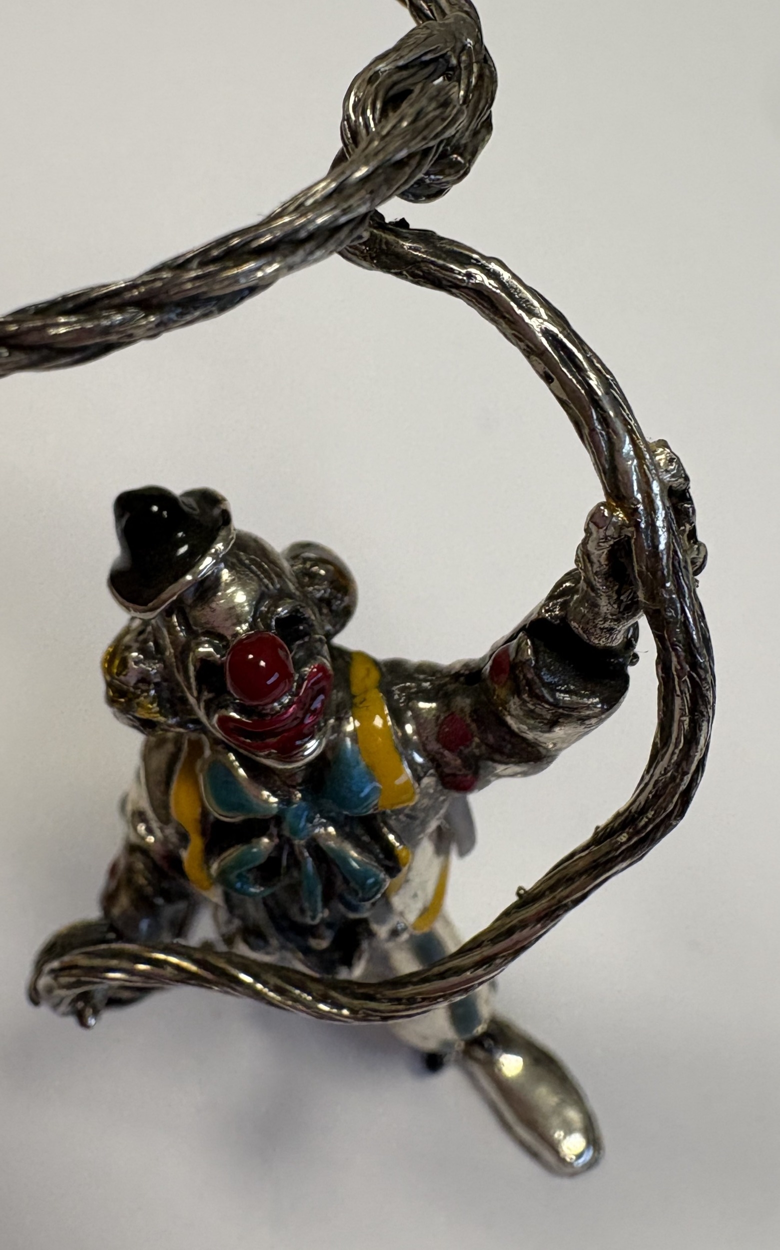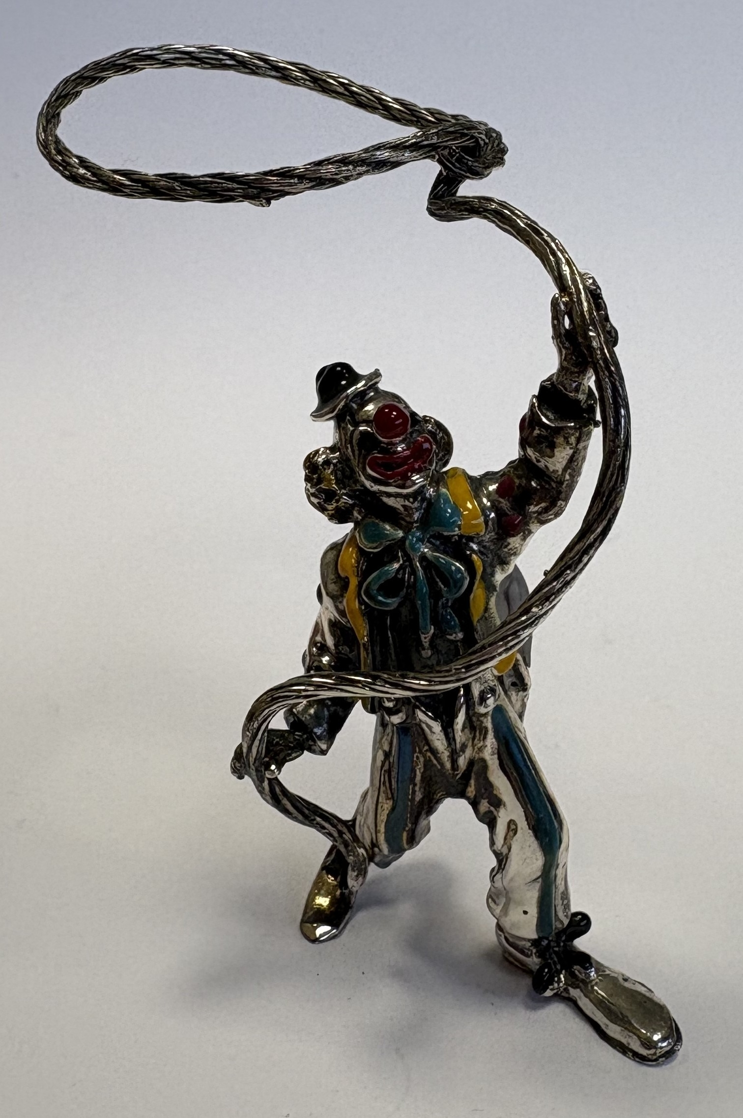 A novelty silver and enamelled figure of a clown. Approx. 41 grams. Est. £50 - £80.