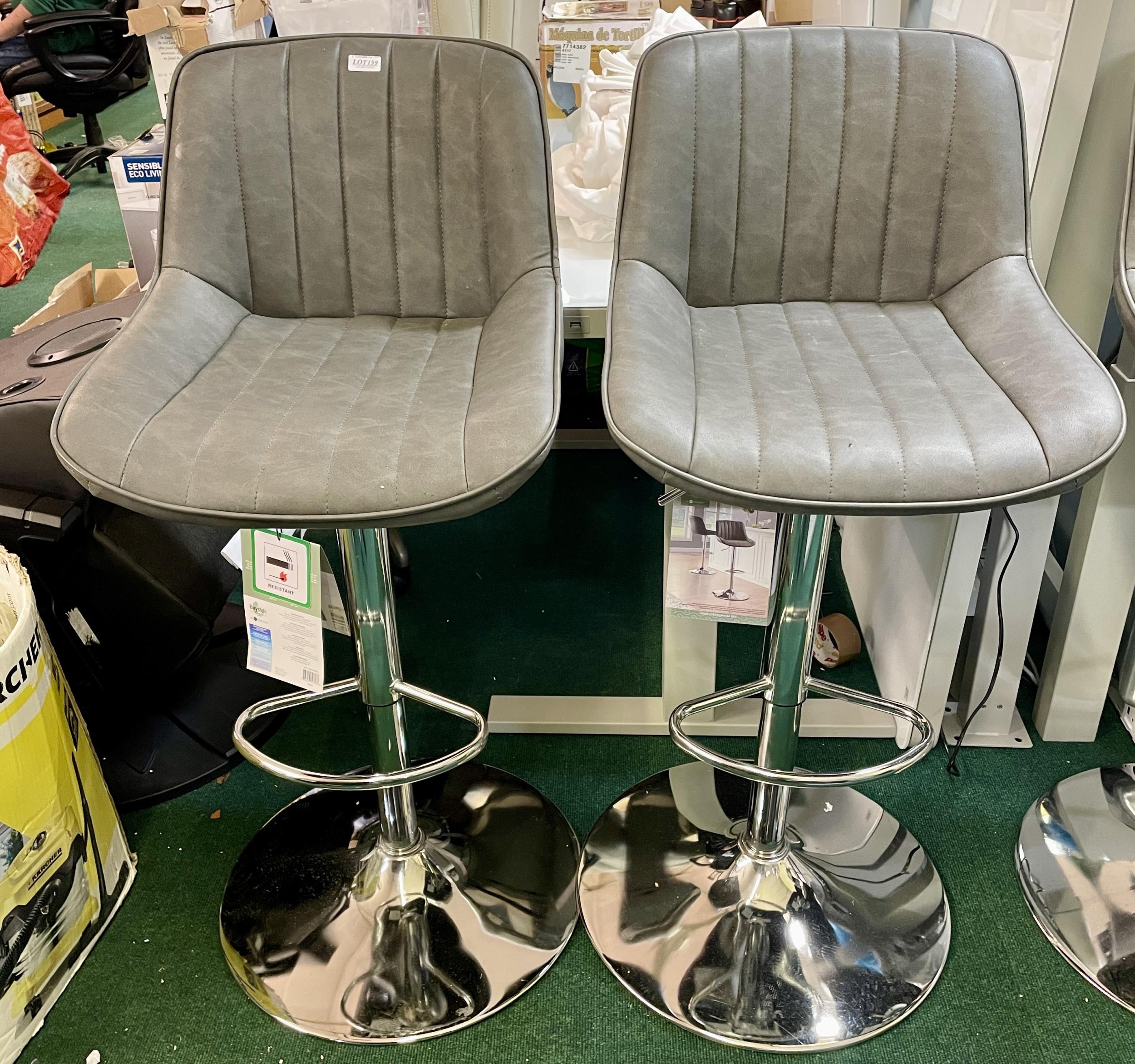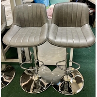 SET OF 2 GREY GAS LIFT RISE AND FALL BAR STOOLS WITH TAGS
