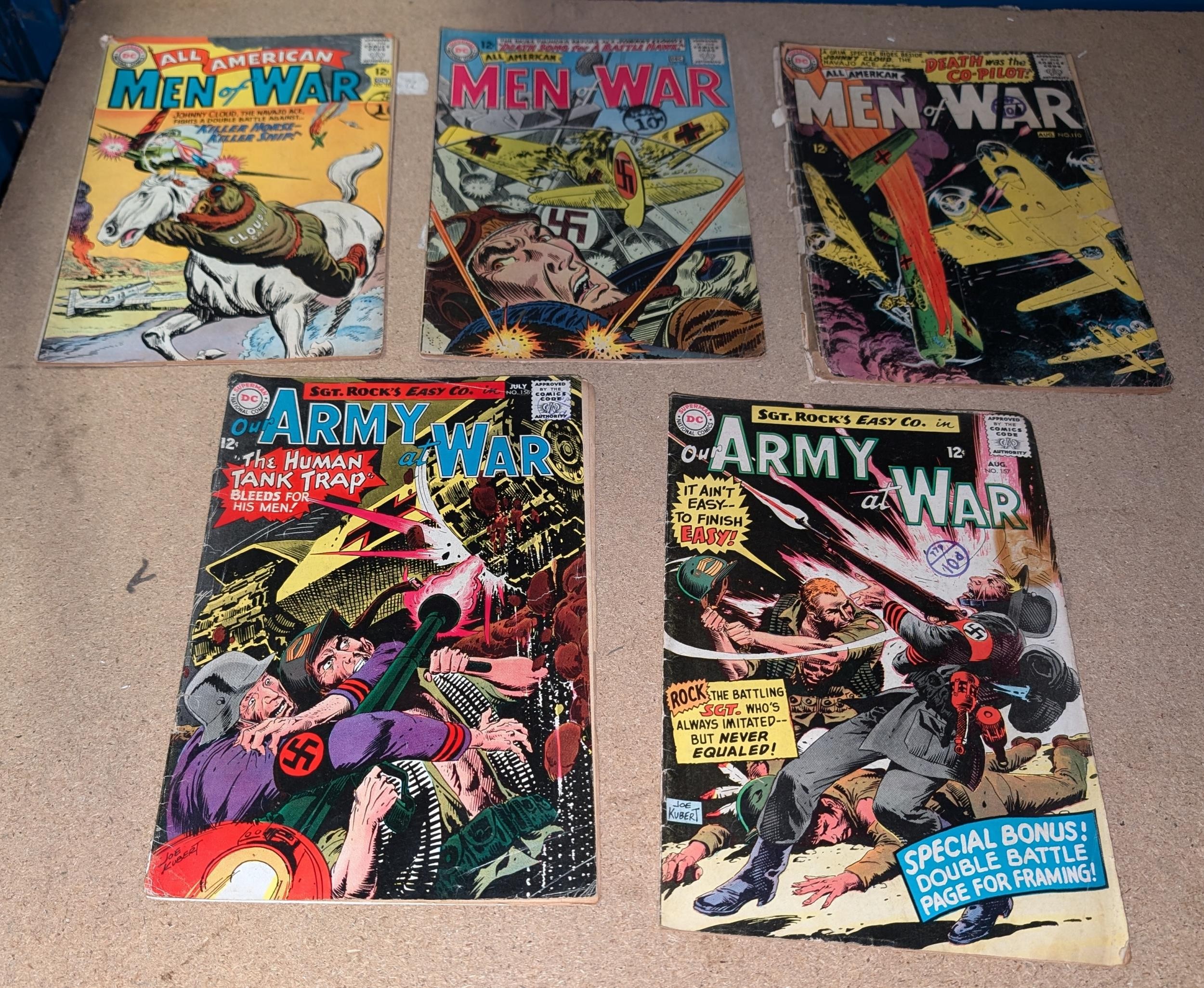 5 x original 1960s DC Comics Sgt. Rocks our army at war and All American men of war comics in varying condition