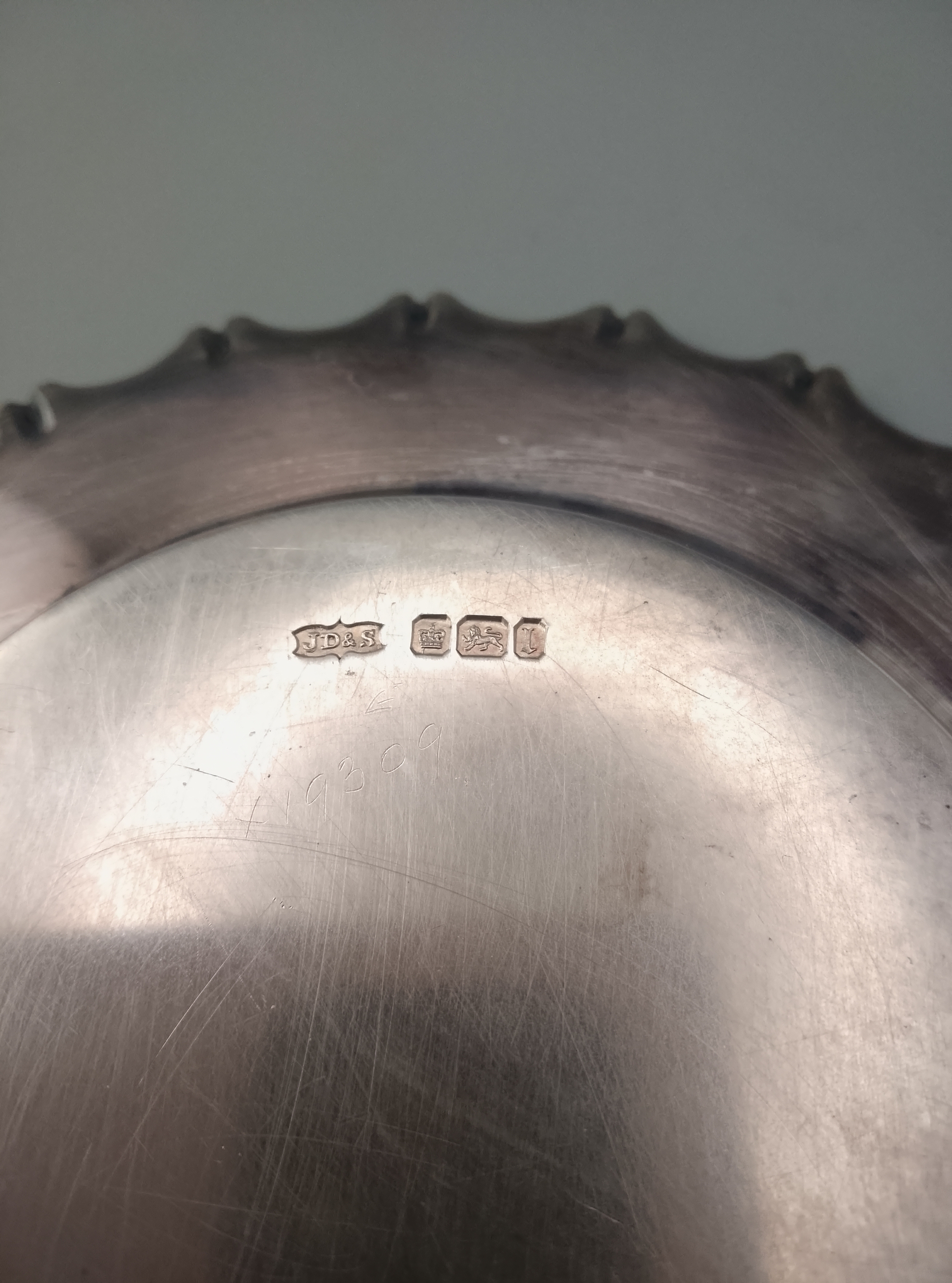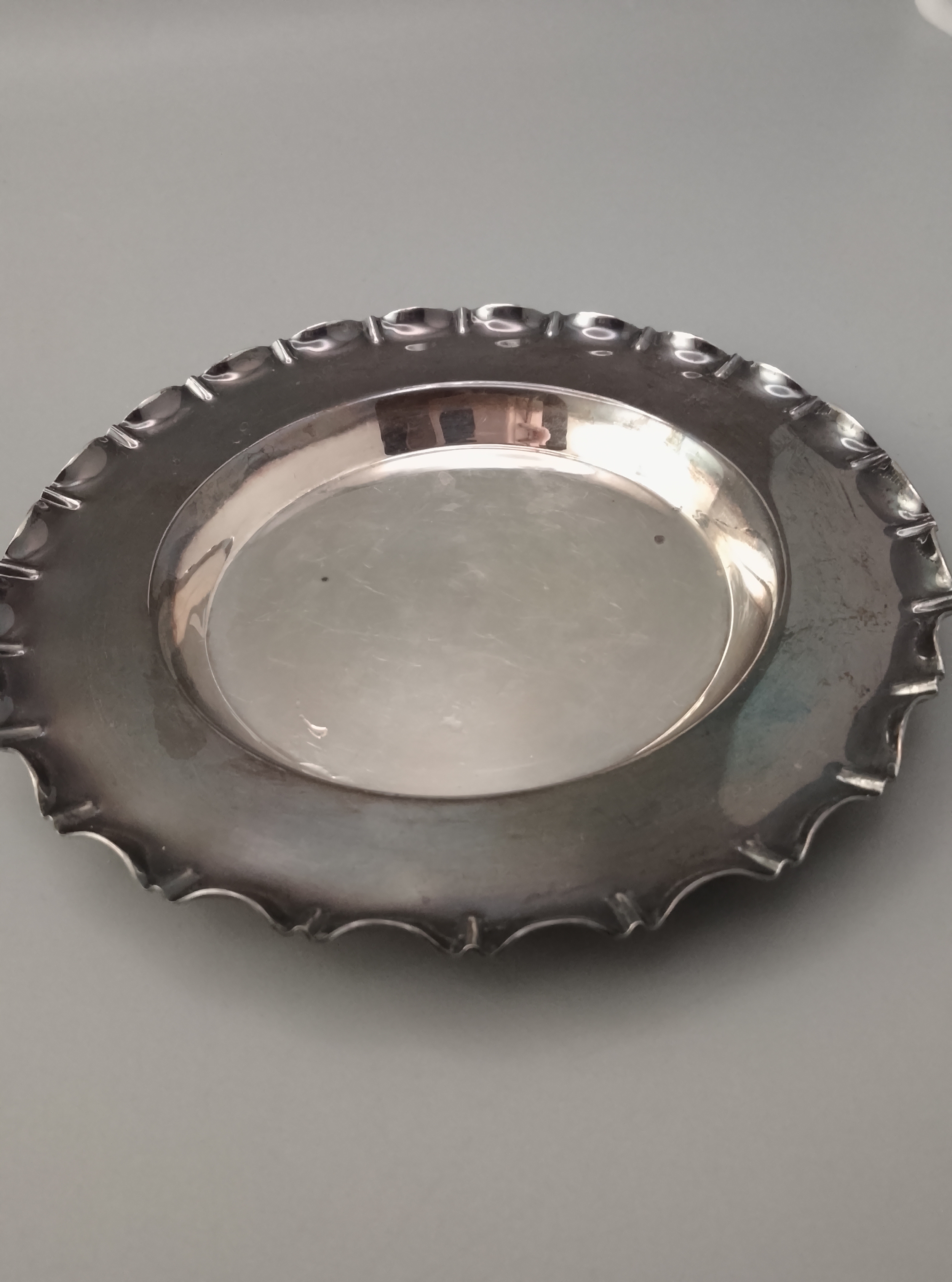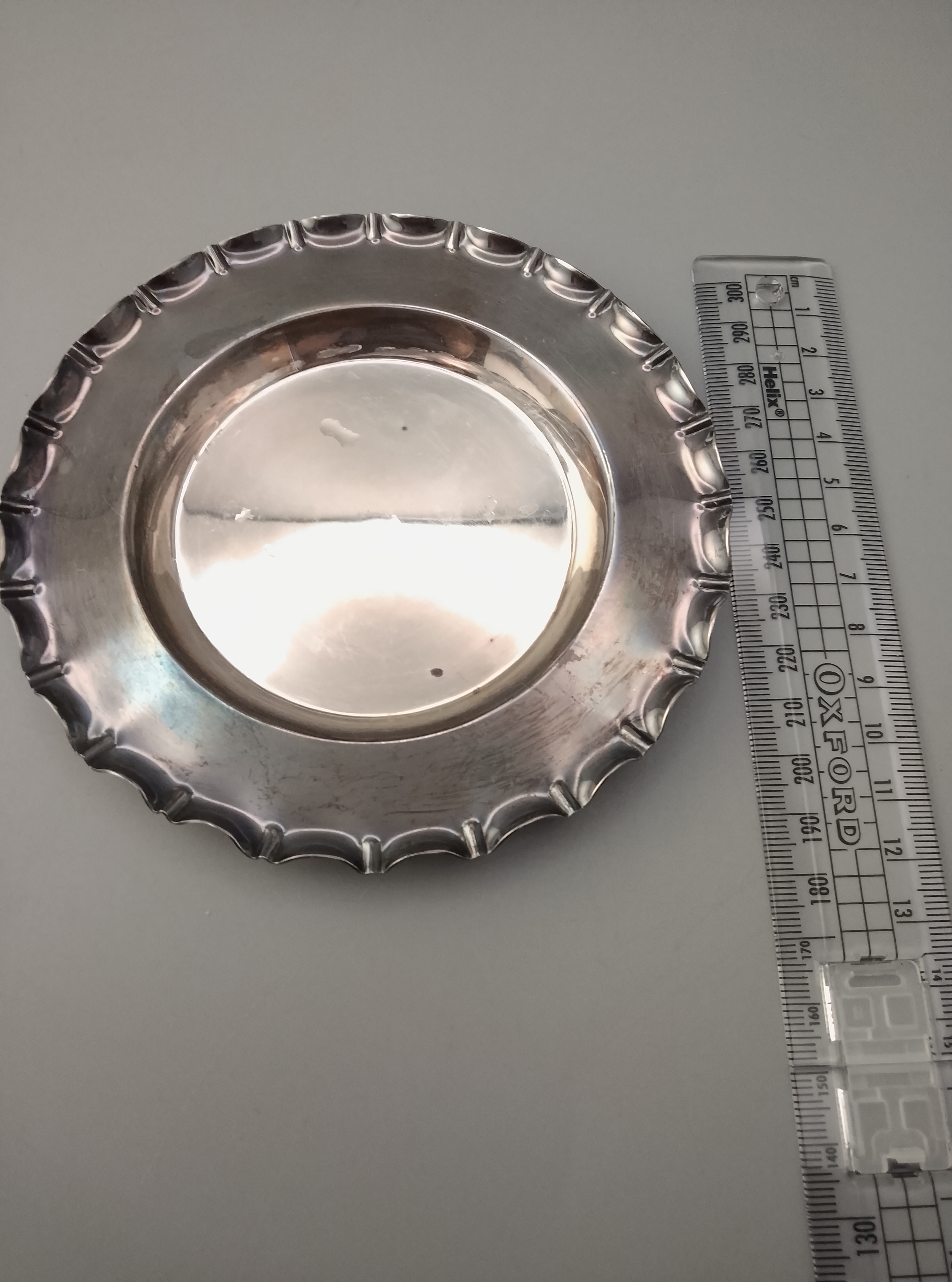 Sterling Silver Round Dish / shallow bowl with Shaped Edge - 76 grams