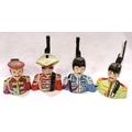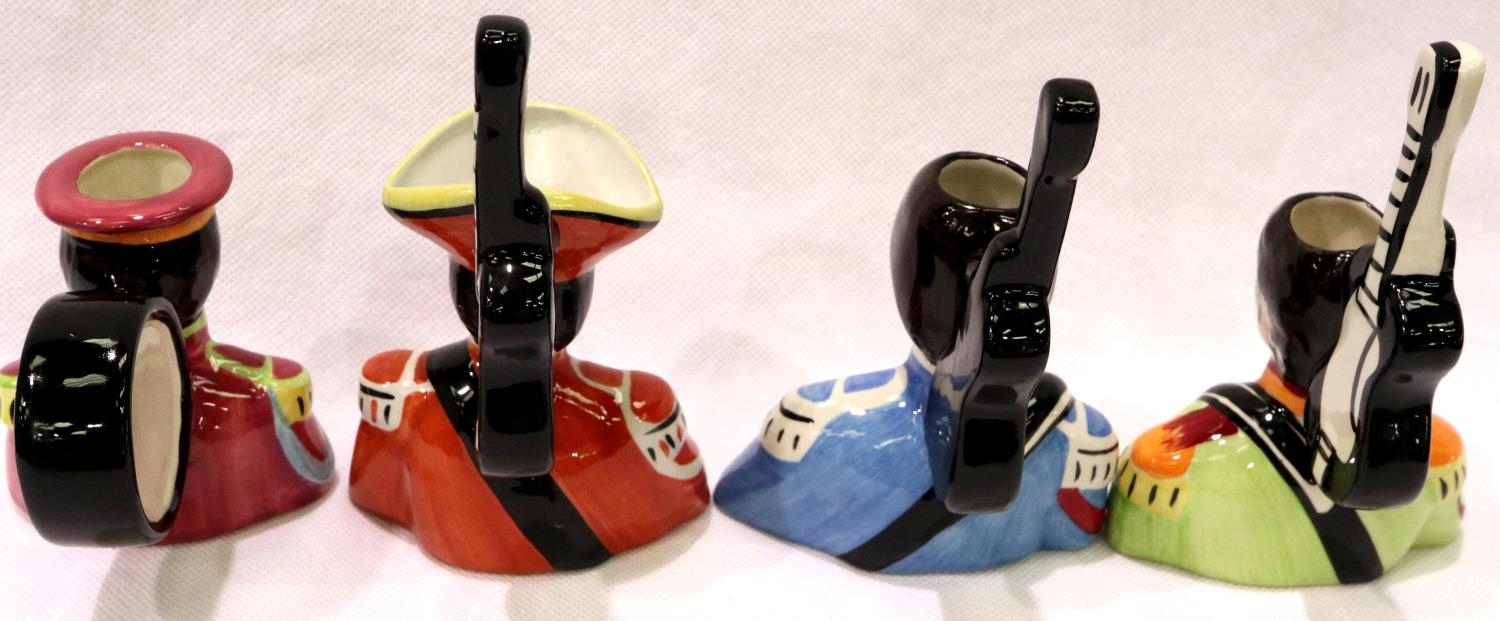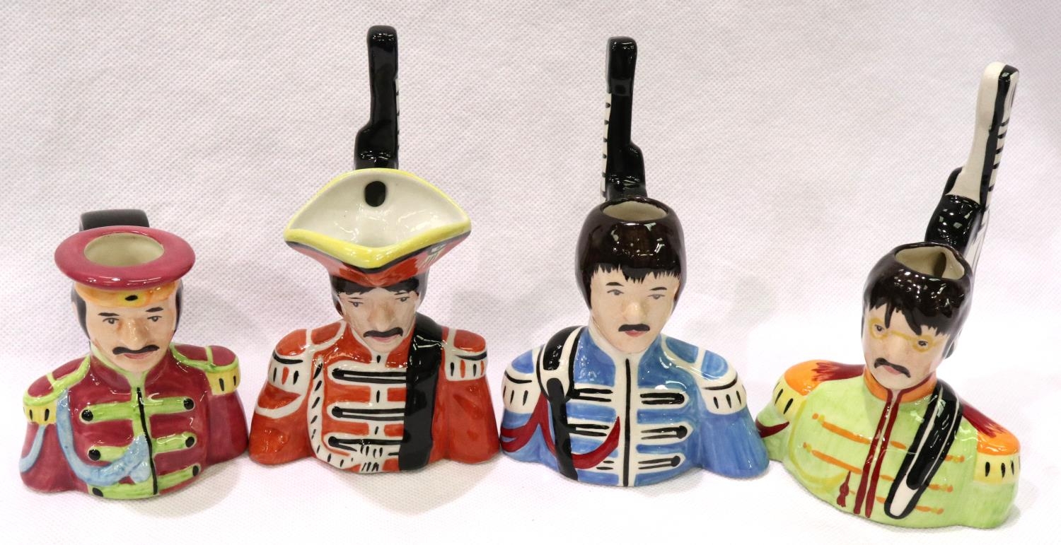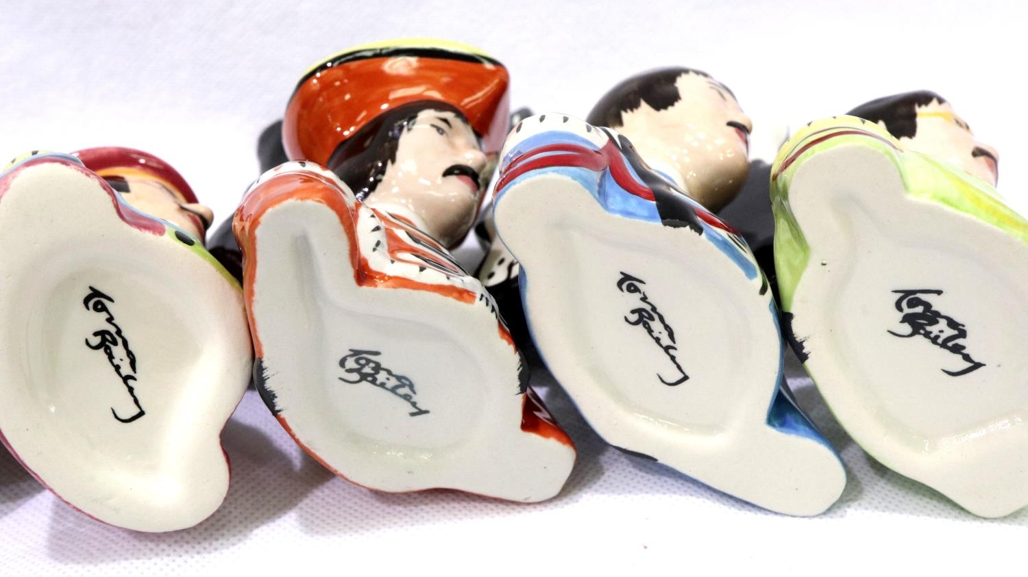 Set of Four Lorna Bailey Beatle head toby jugs, largest H: 13 cm. No cracks, chips or visible restoration. P&P Group 2 (£18+VAT for the first lot and £3+VAT for subsequent lots)