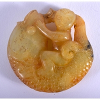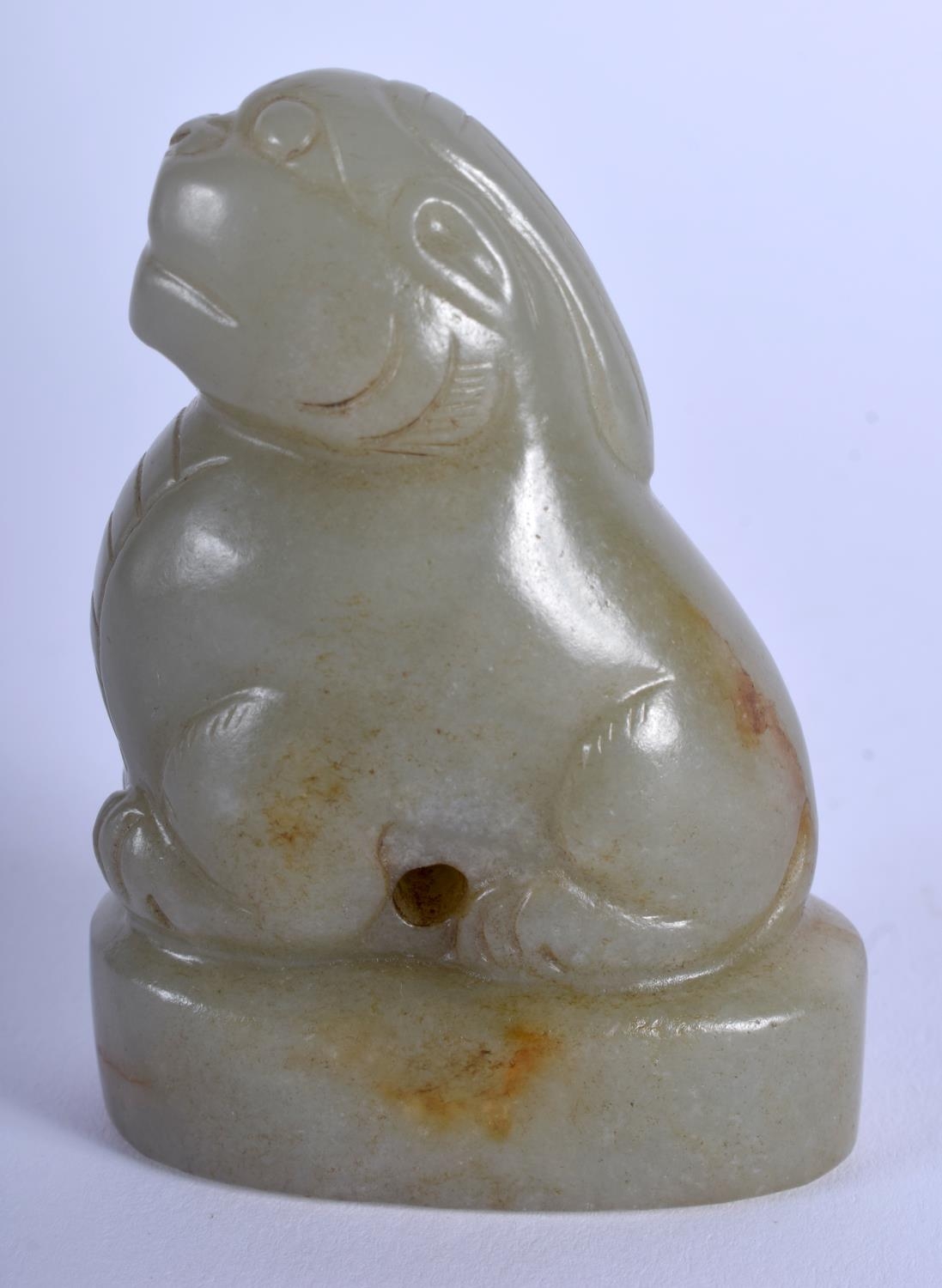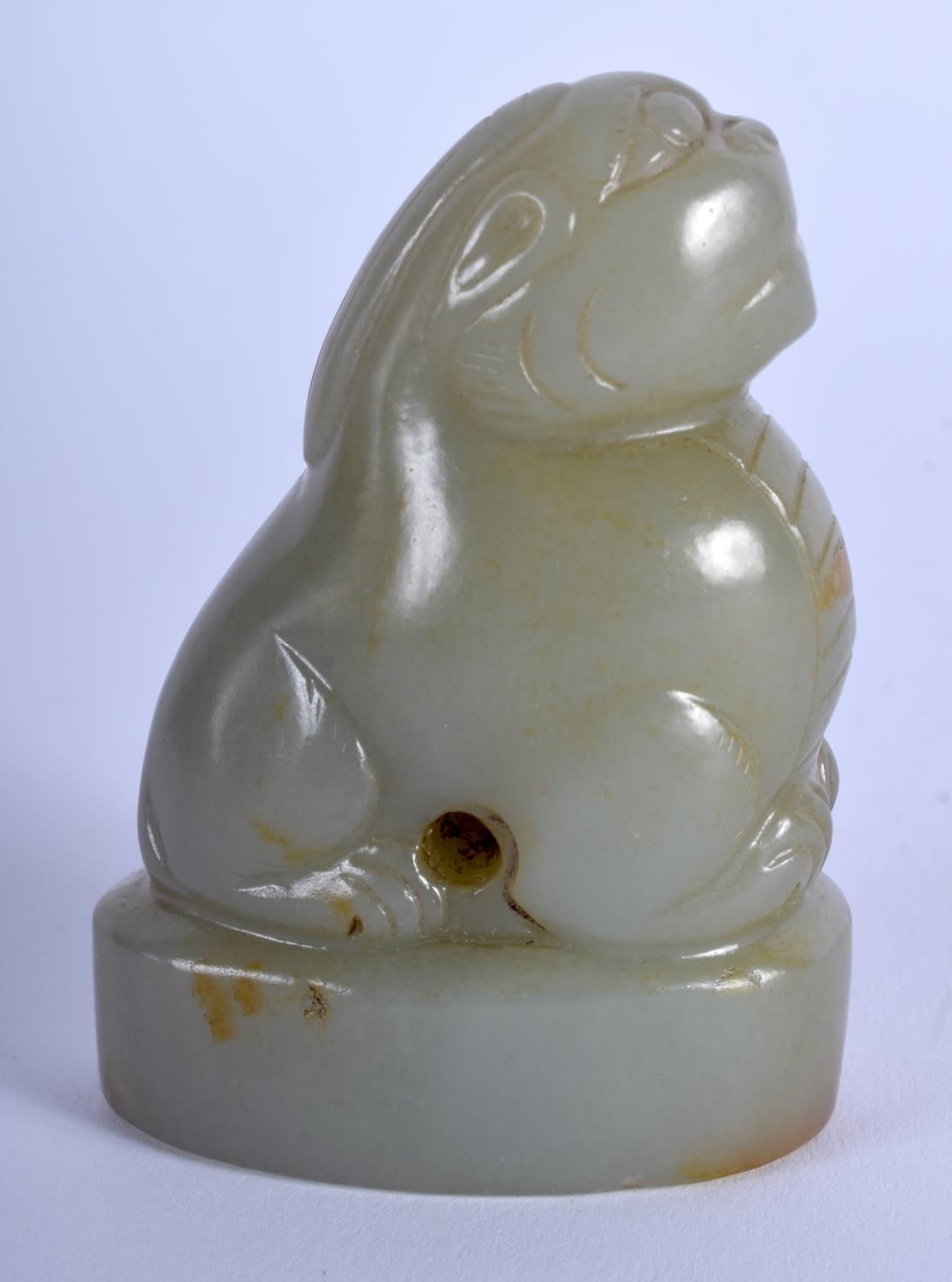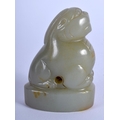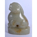 A 19TH CENTURY CHINESE CARVED GREEN JADE SEAL Qing, modelled as a beast looking upwards. 6.5 cm x 4.5 cm.
