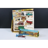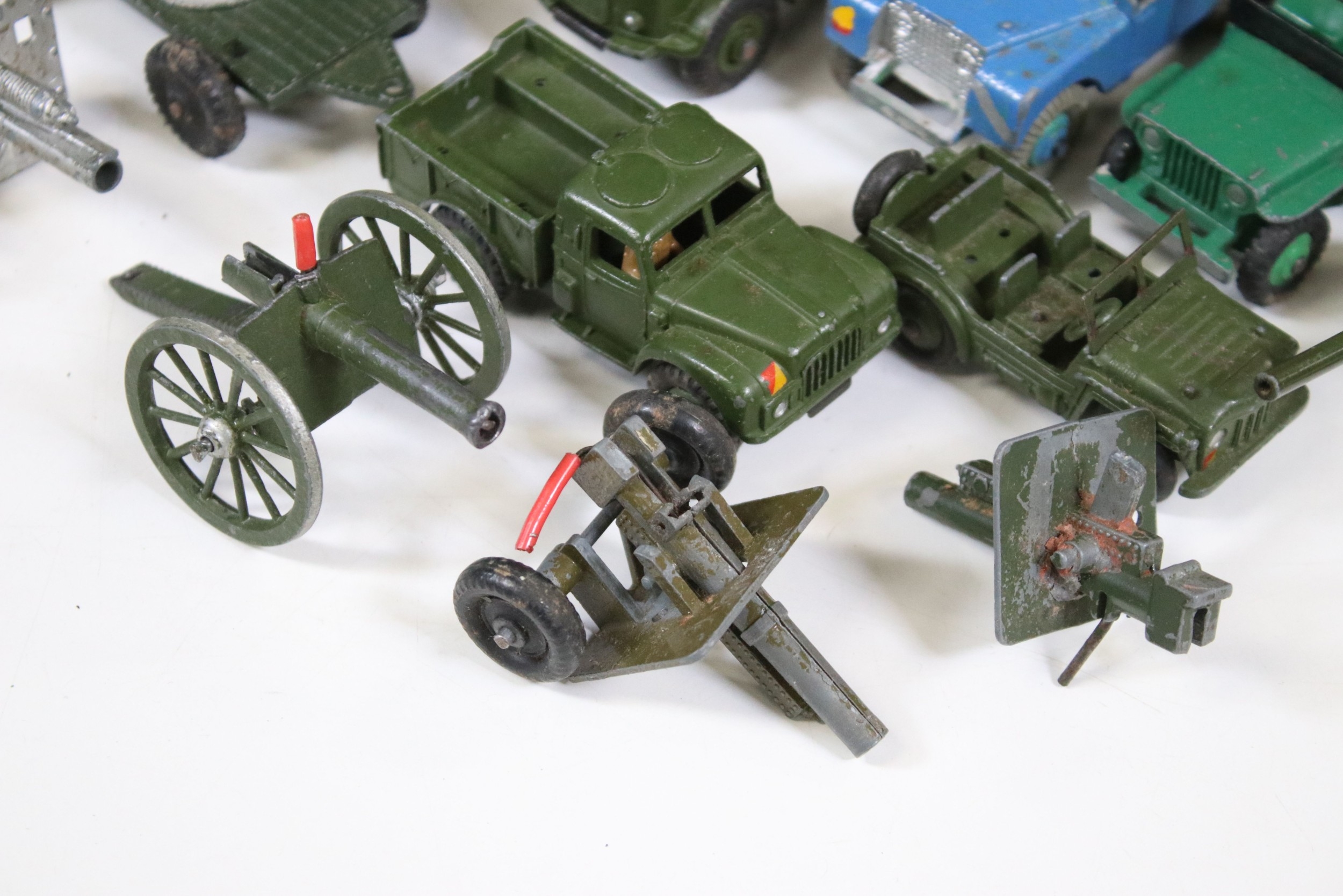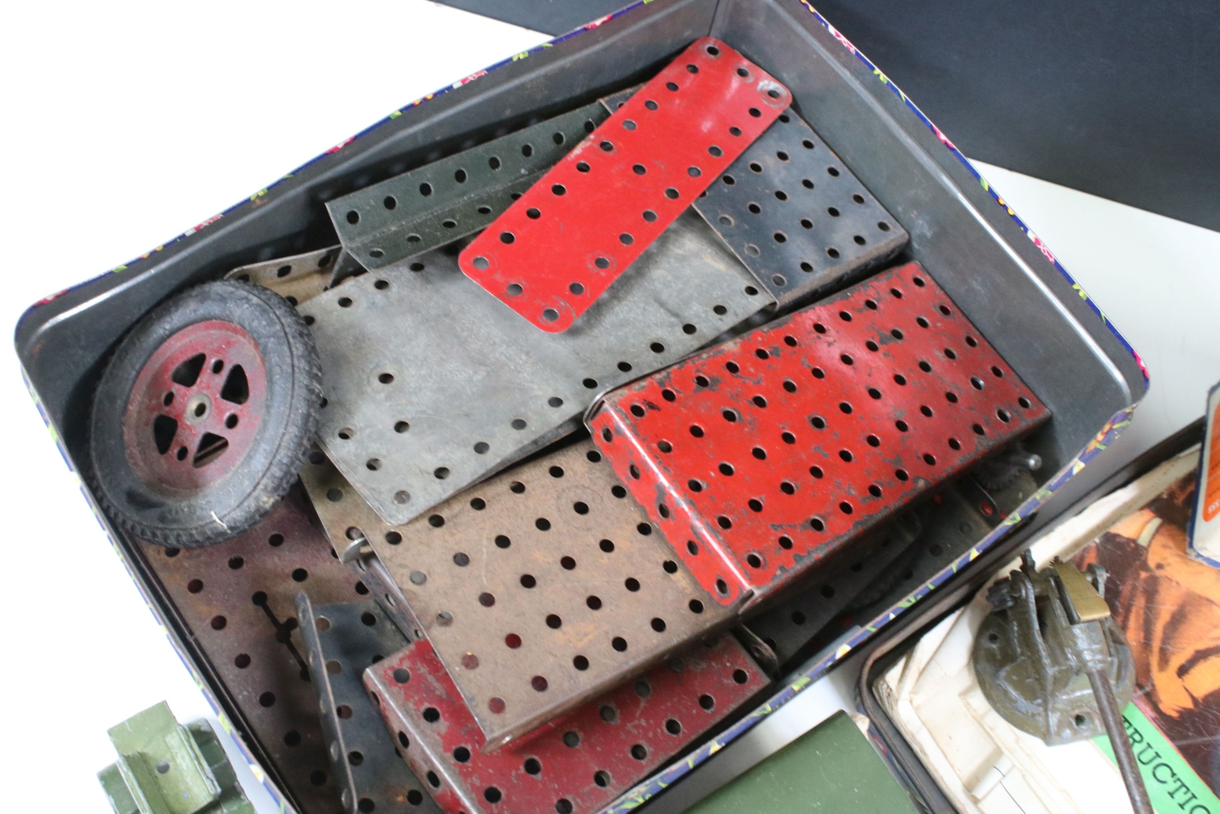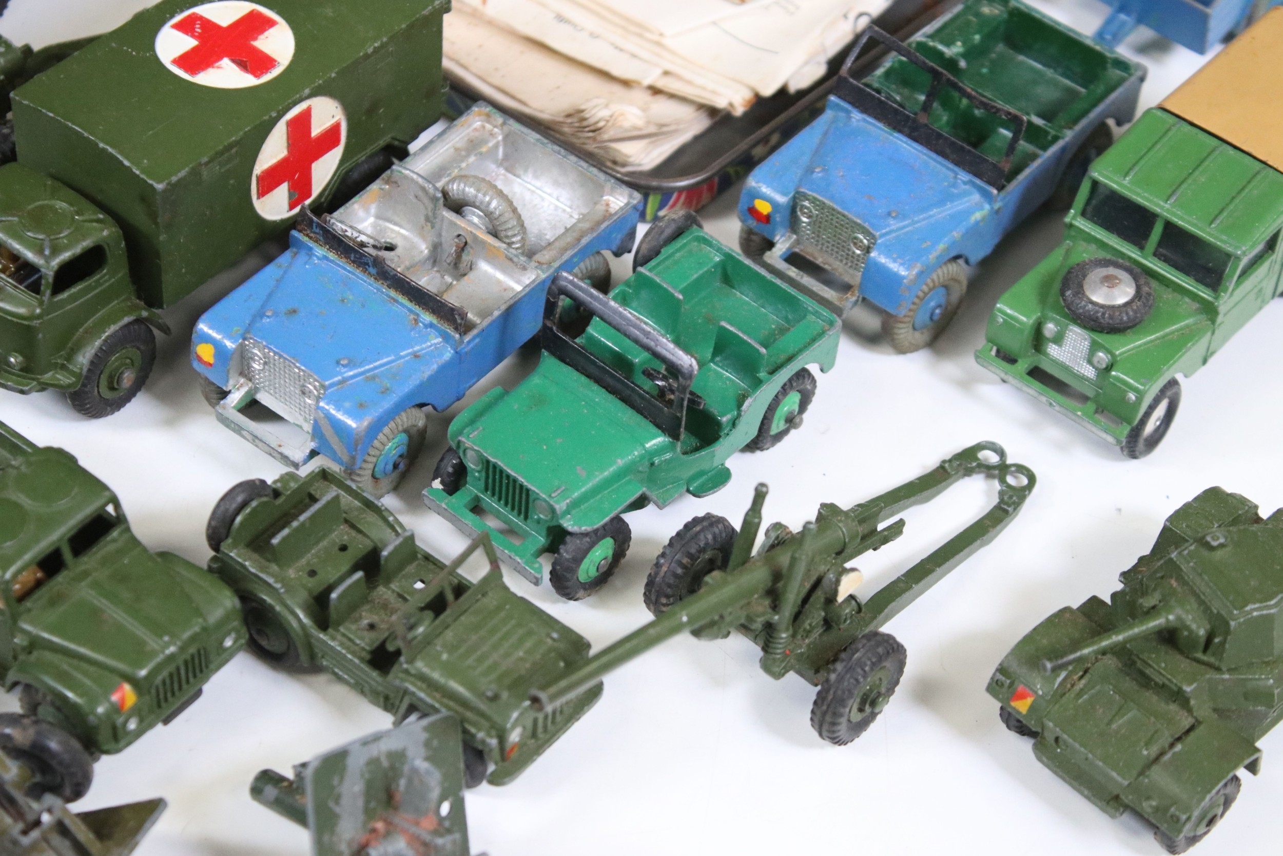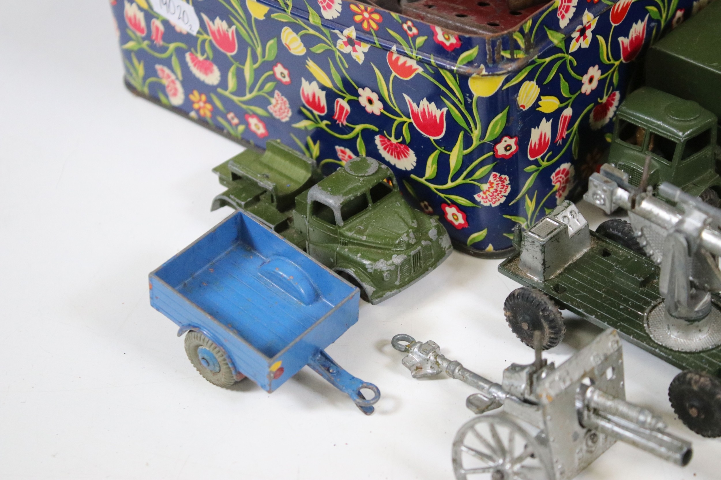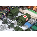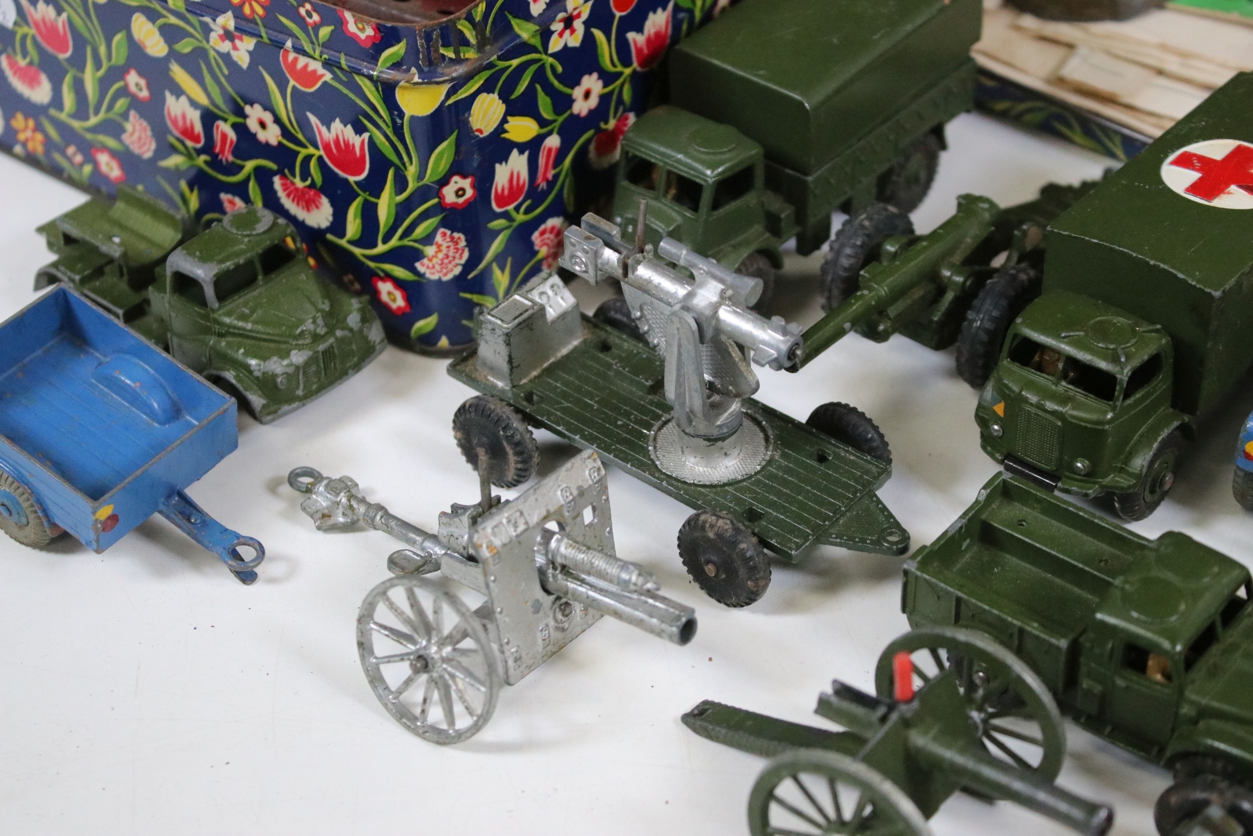 Collection of diecast models to include boxed Dinky 555 Fire Engine With Extending Ladder, quantity of military diecast models including Dinky 623 Army Wagon, Dinky 641 Army 1 Ton Cargo Truck, Dinky Land Rover, Dinky 7.2 Howitzer, etc, together with a small quantity of Meccano including parts, accessories and wheels, etc (2 Boxes)
