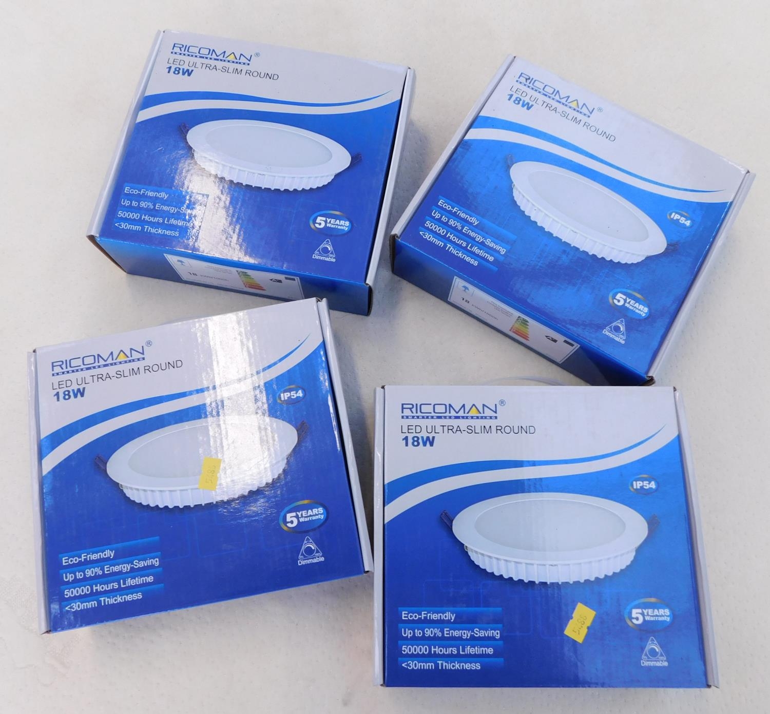 4x New & boxed Ricoman LED ultra slim round 18w lights